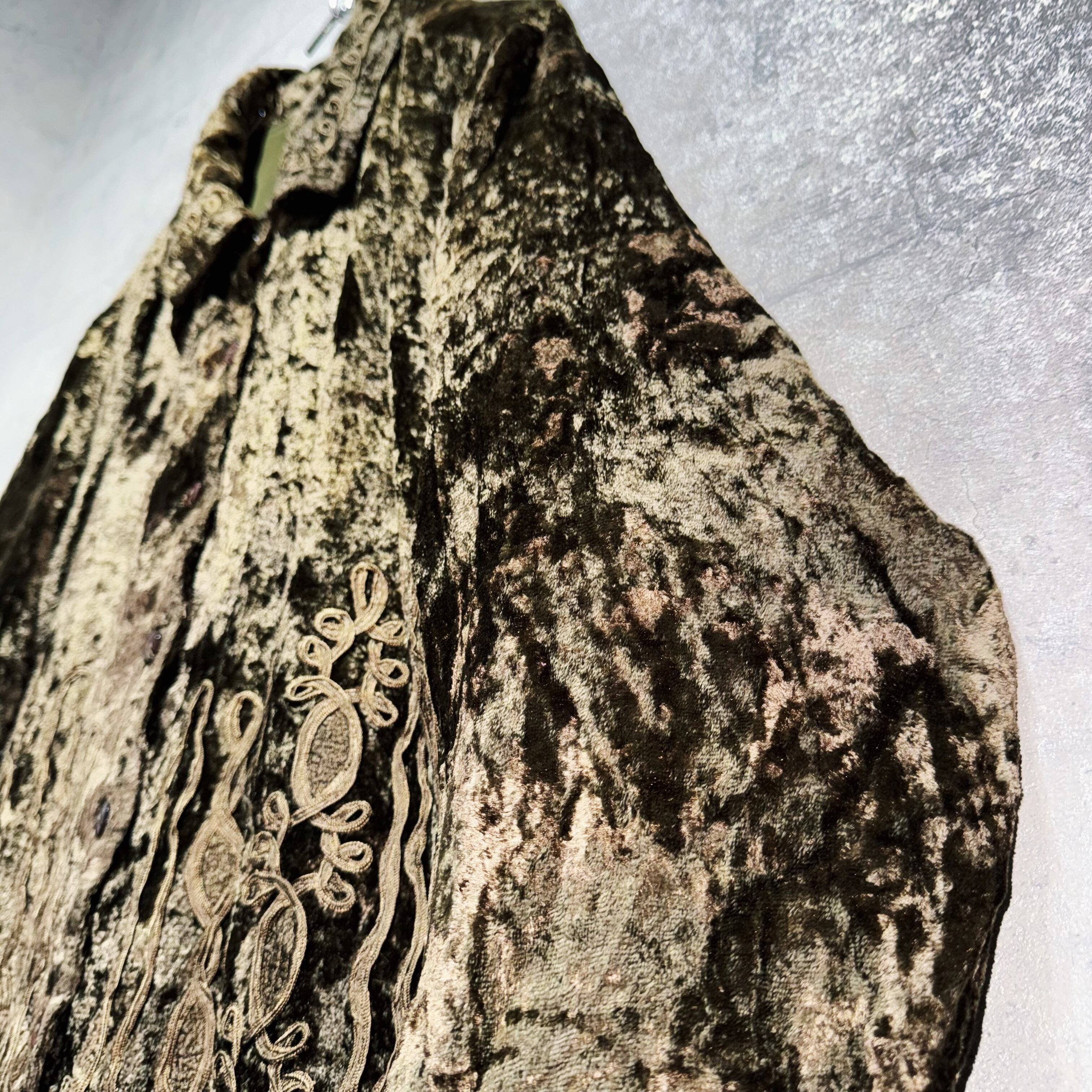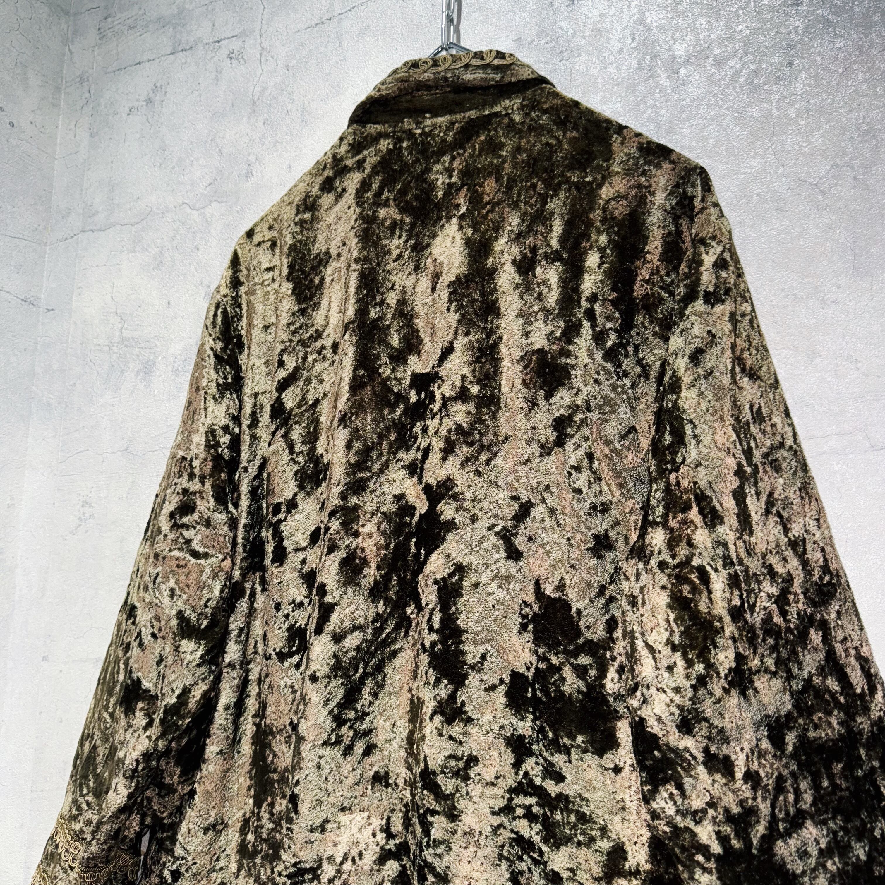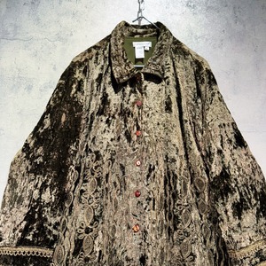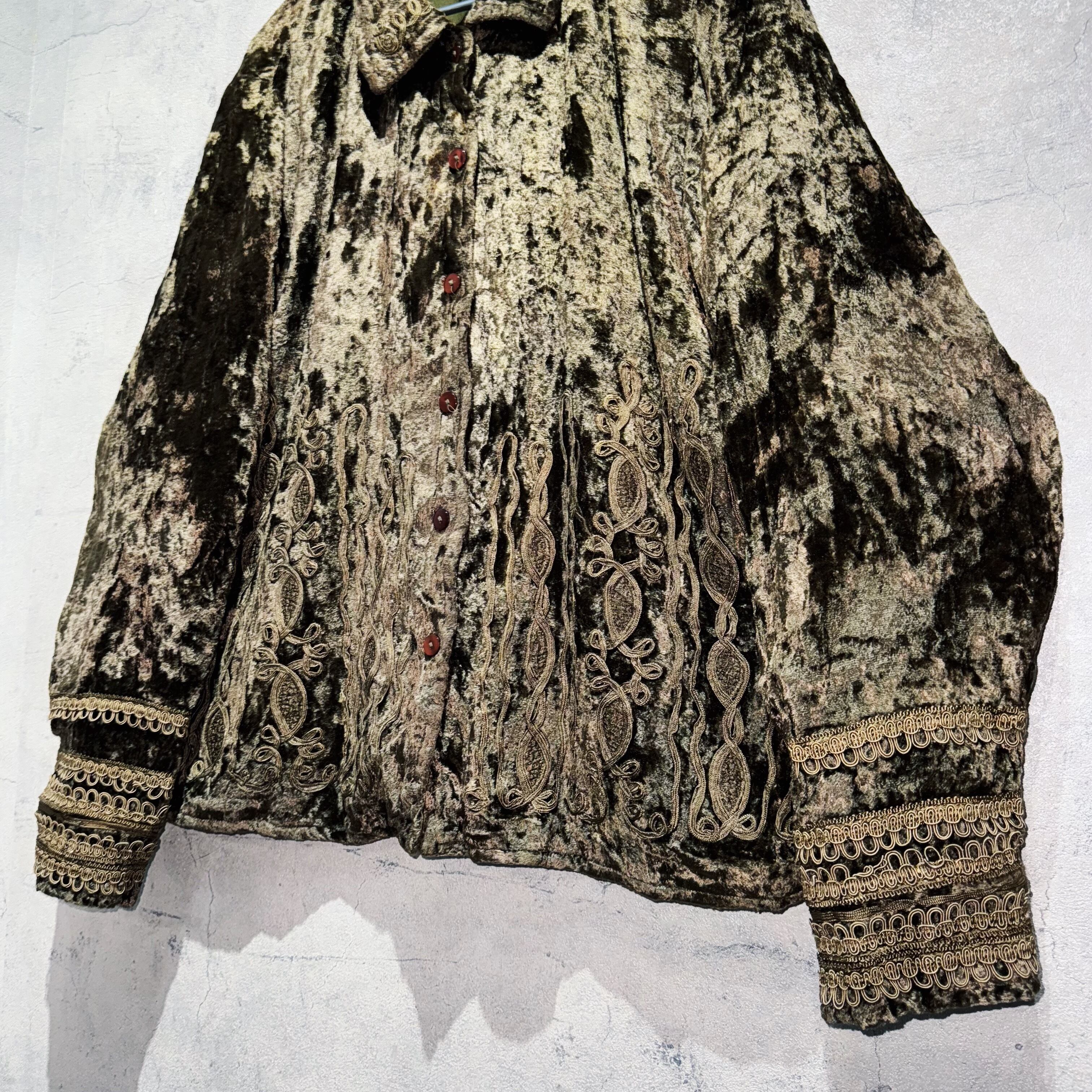“デッドストック”ベルベットマテリアルエンブロイダリーパターンデザインシャツ