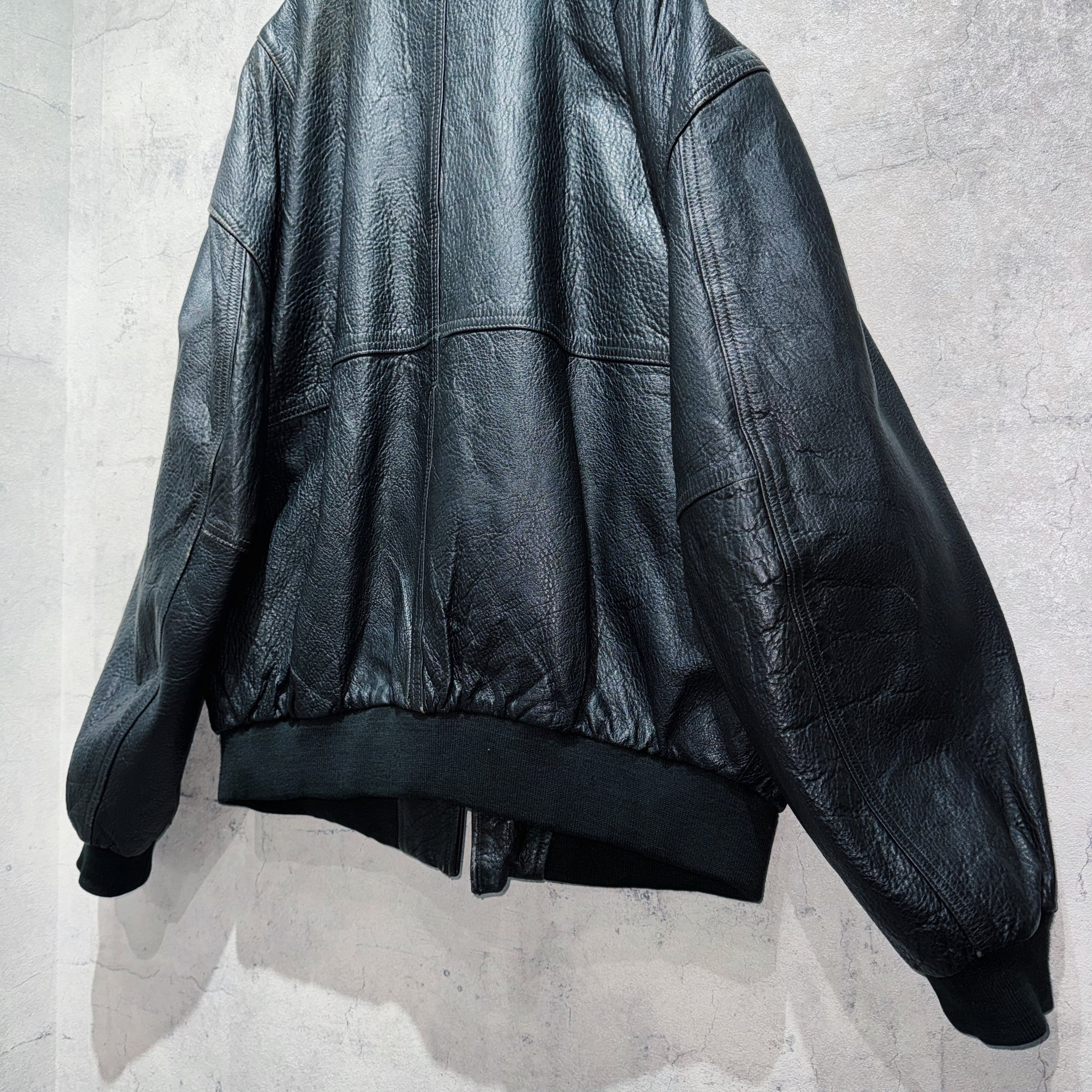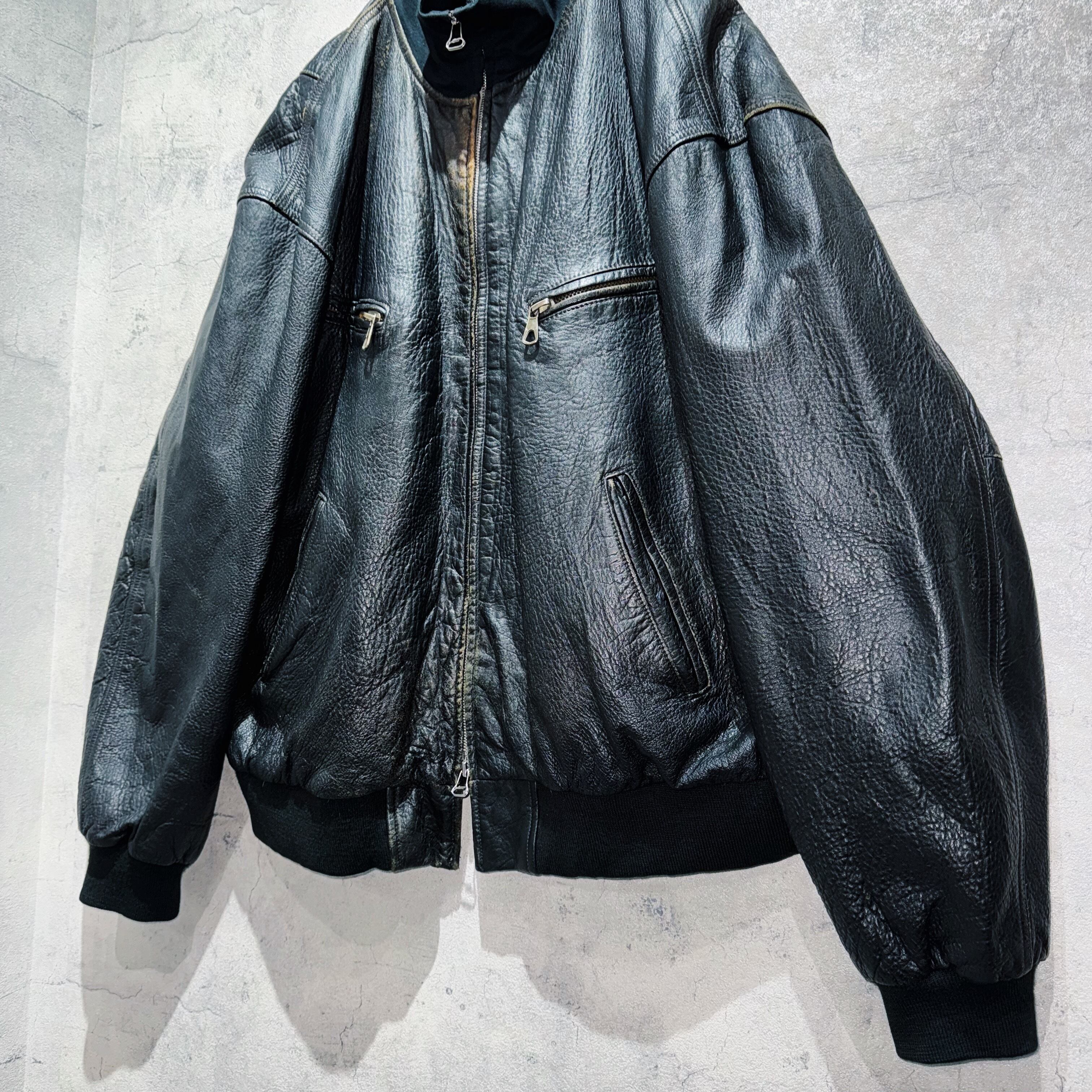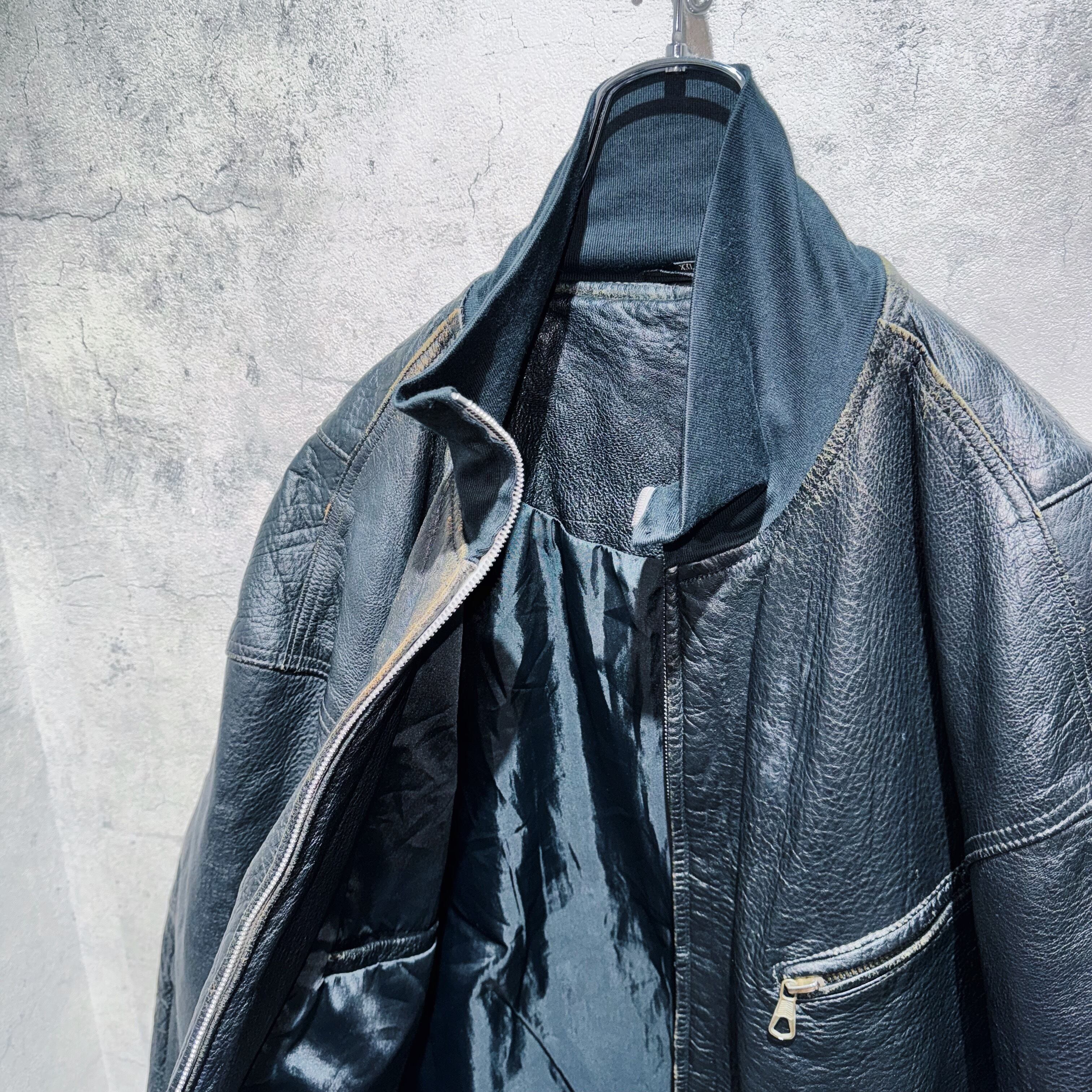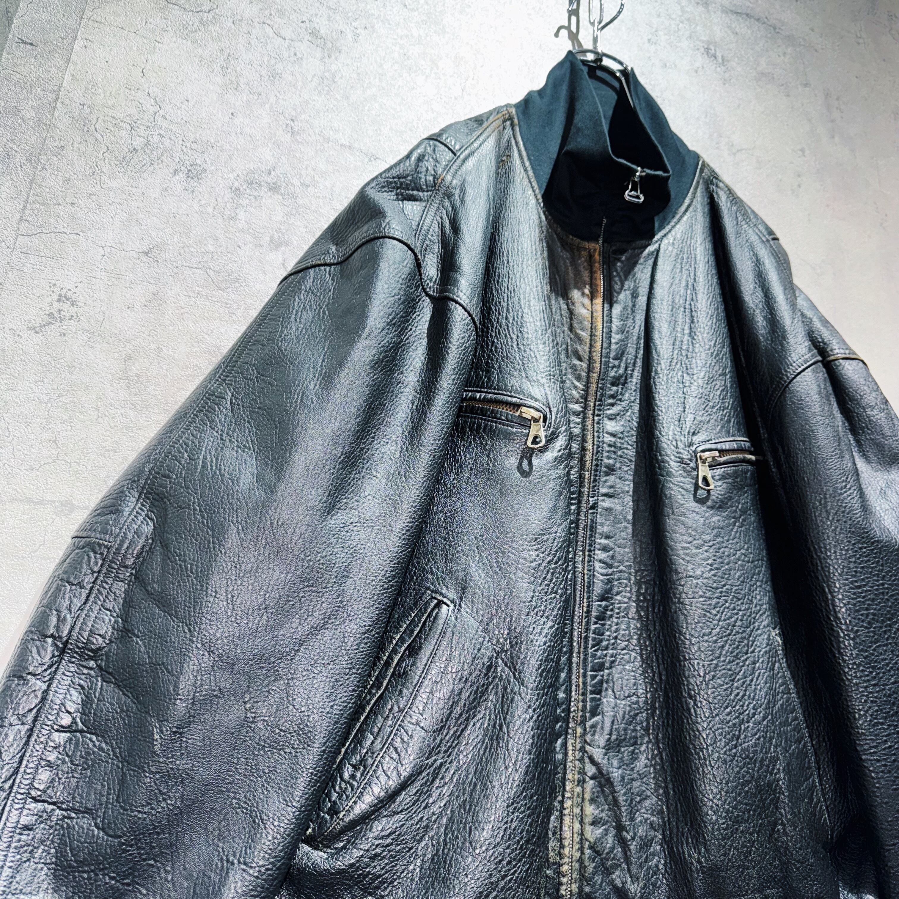 ヴィンテージバッファローレザースタンドネックデザインルーズジャケット