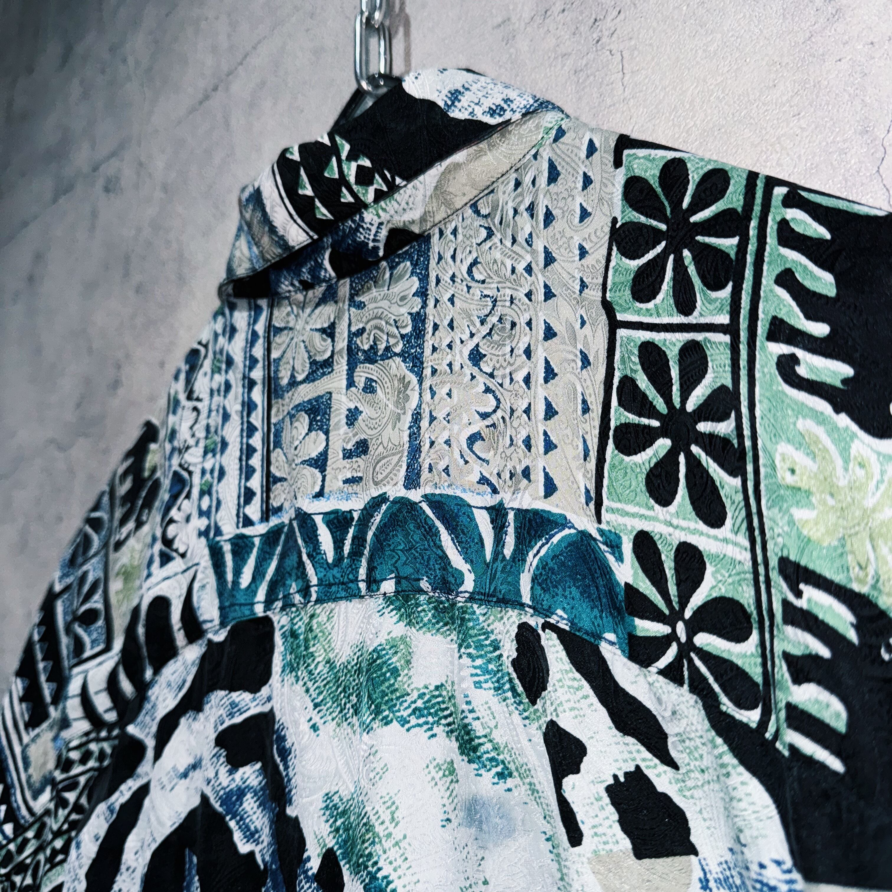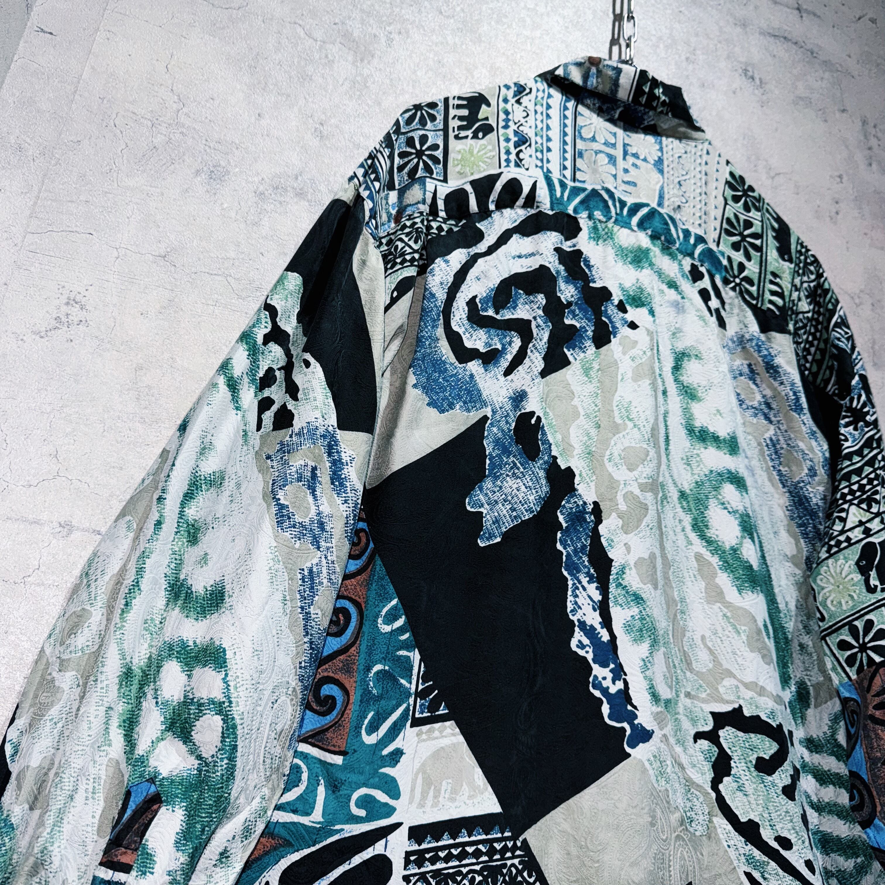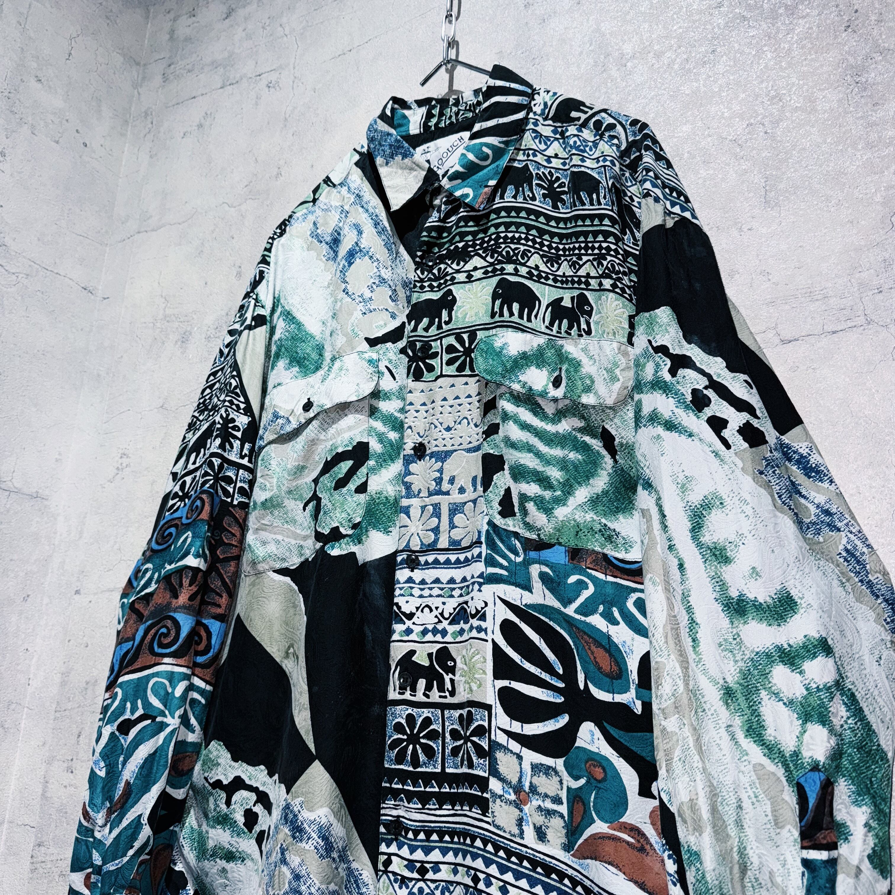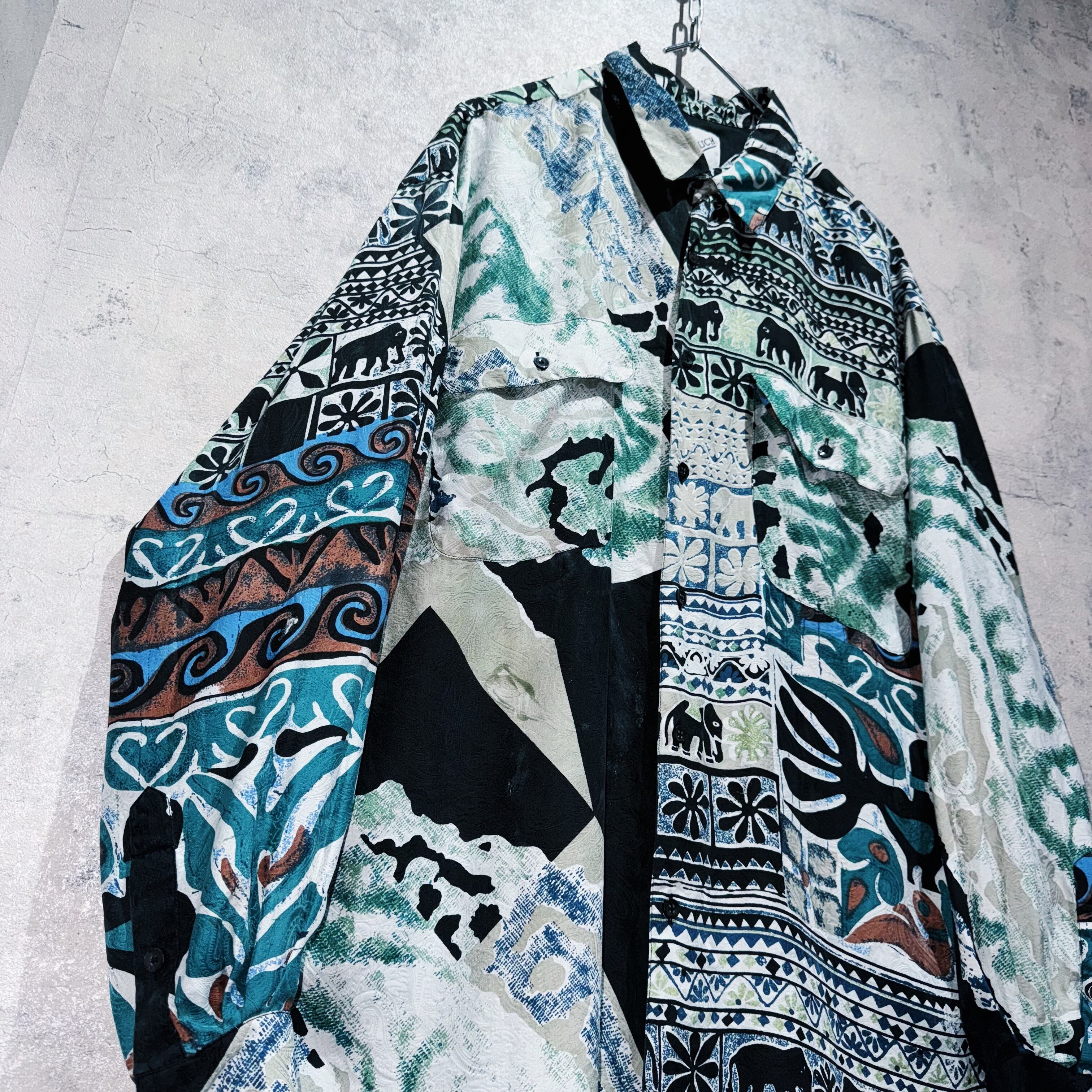 ”デッドストック"90年代アートグラフィックパターンデザインシルクシャツ