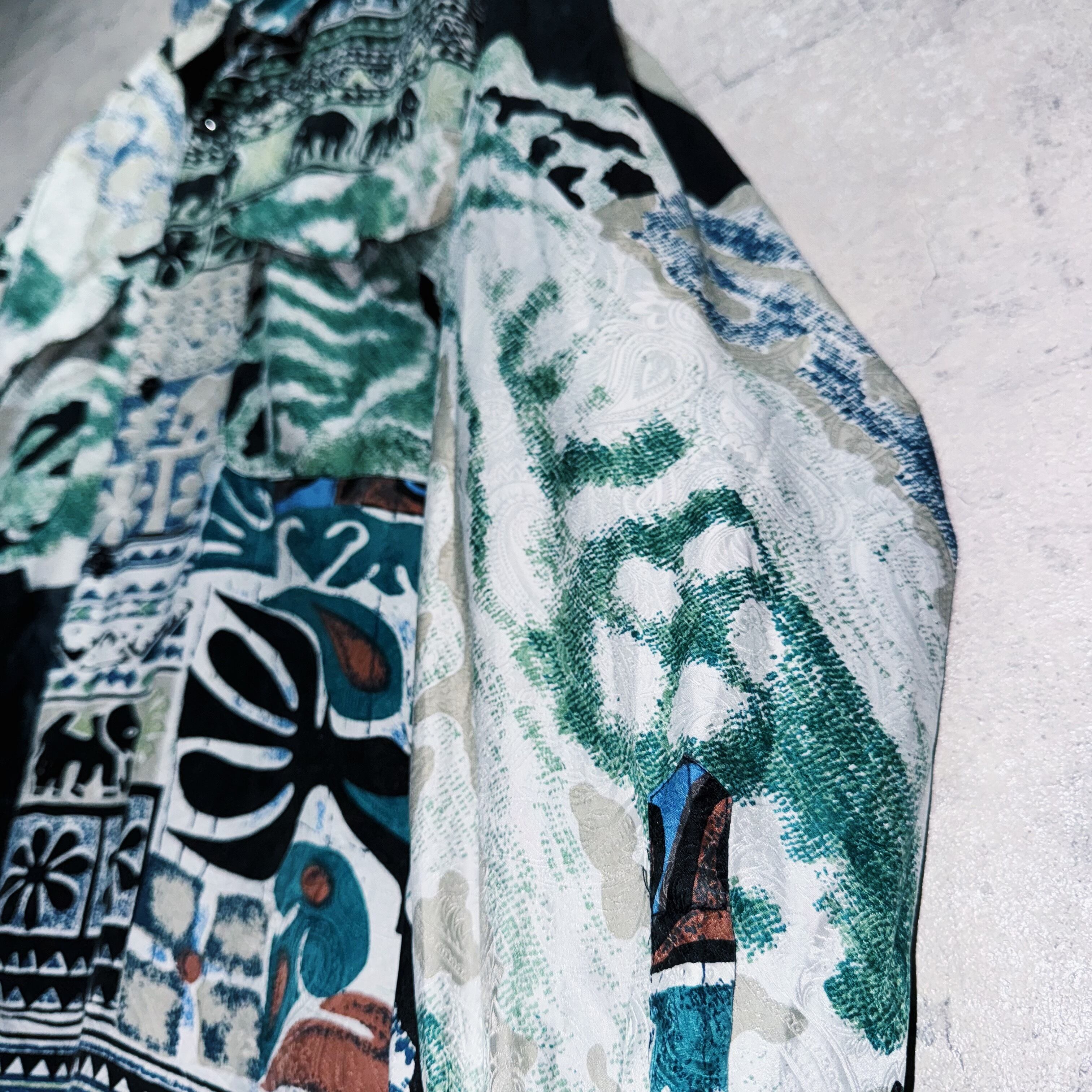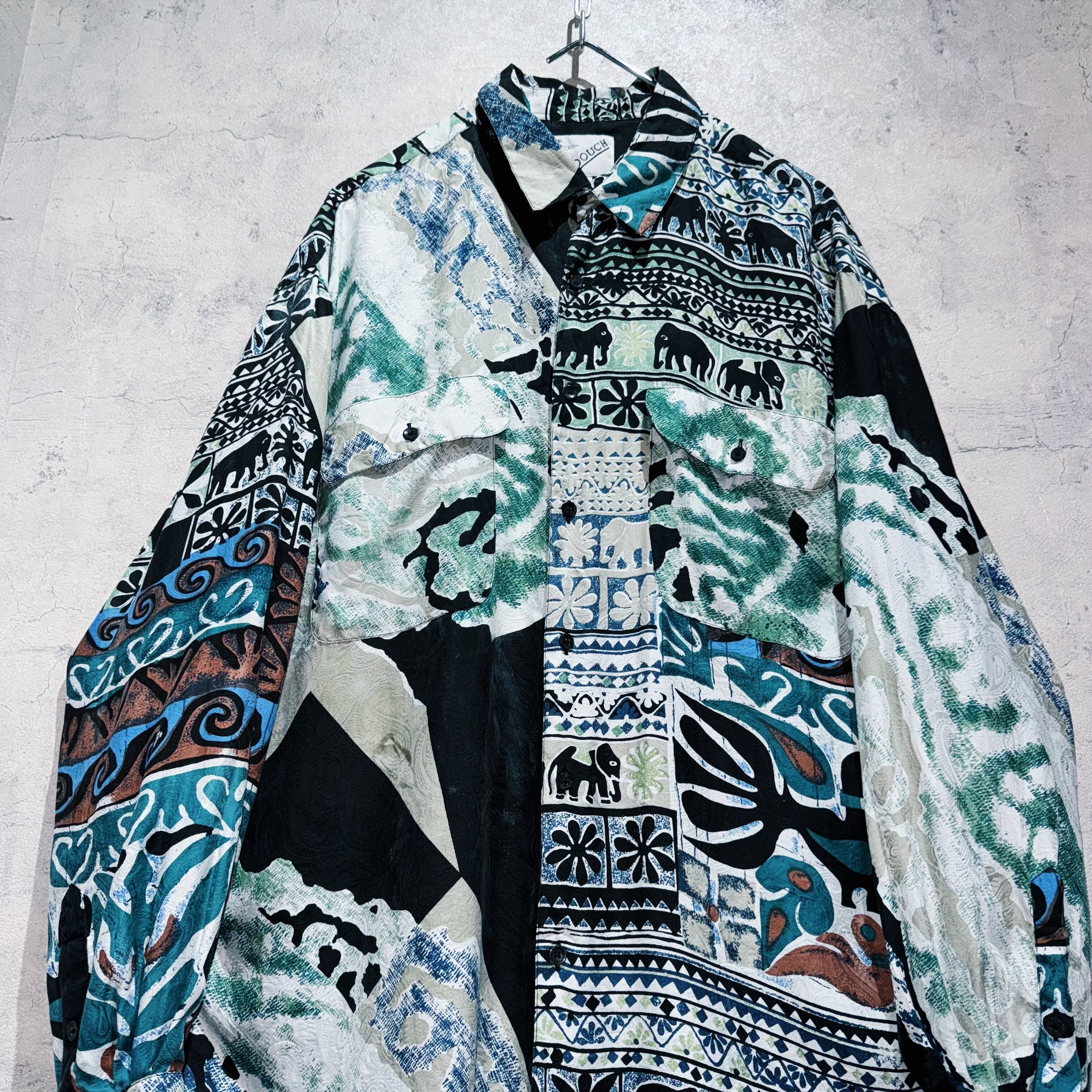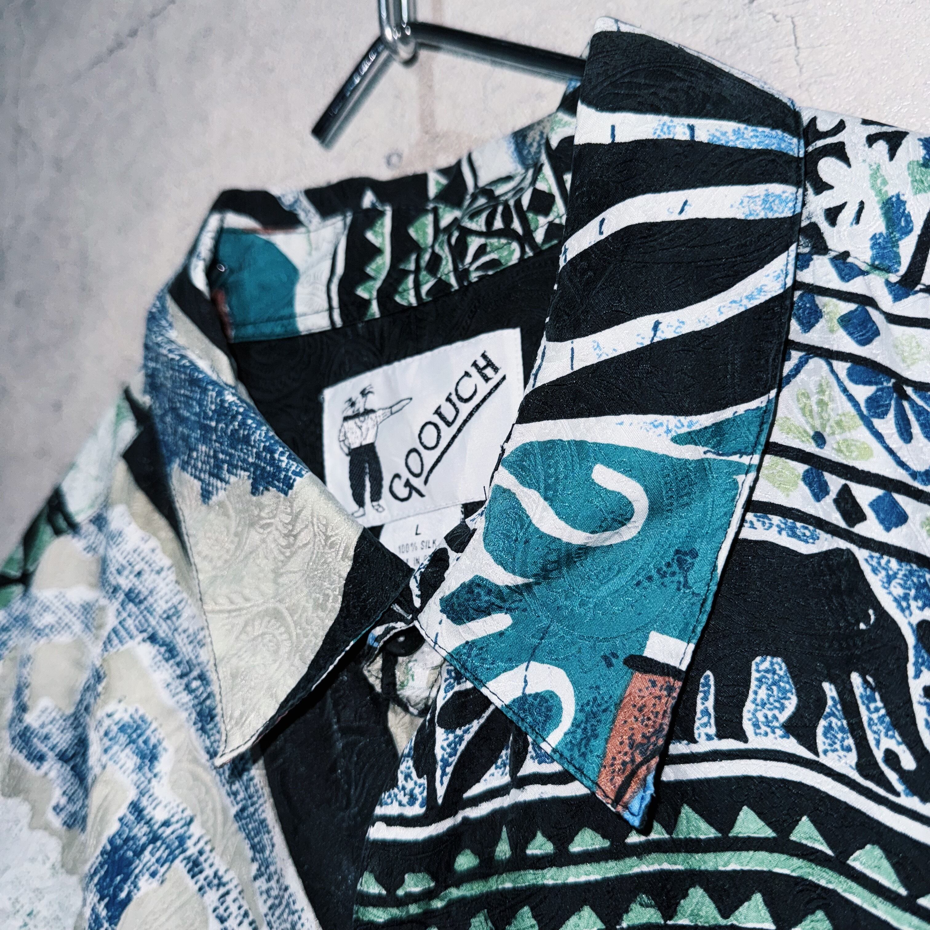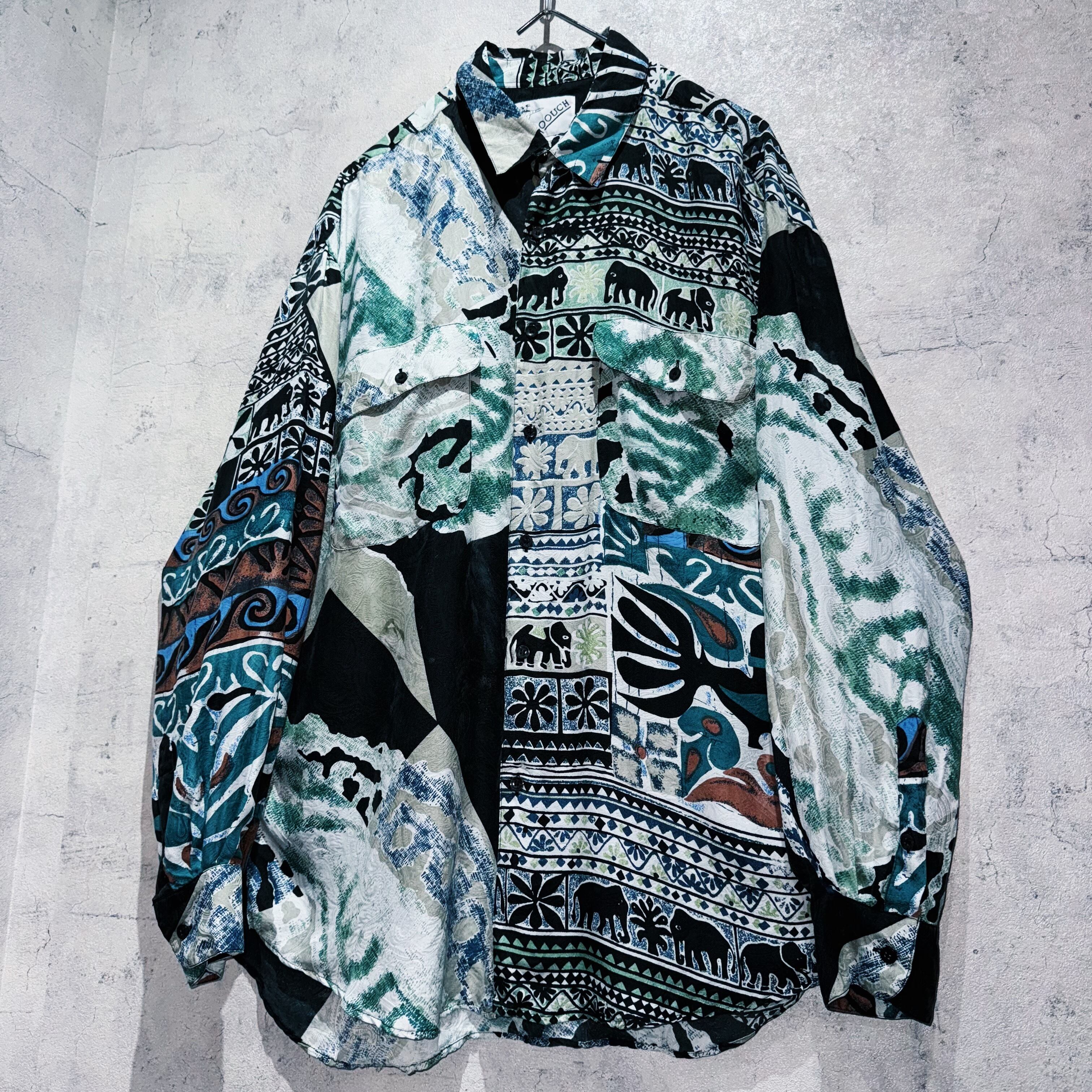 ”デッドストック"90年代アートグラフィックパターンデザインシルクシャツ
