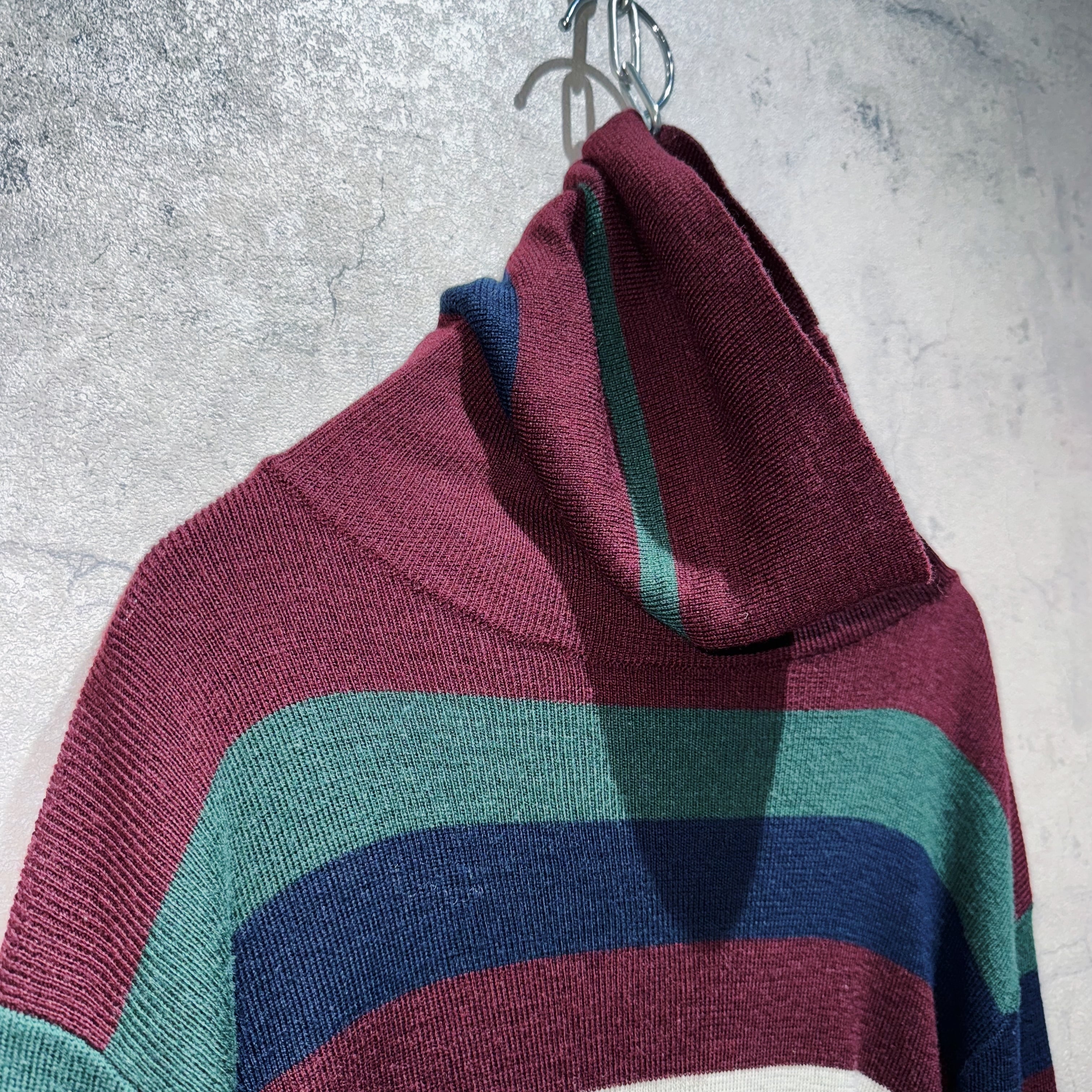 ”エンポリオアルマーニ”ストライプスイッチングカラーデザインハイネックニット