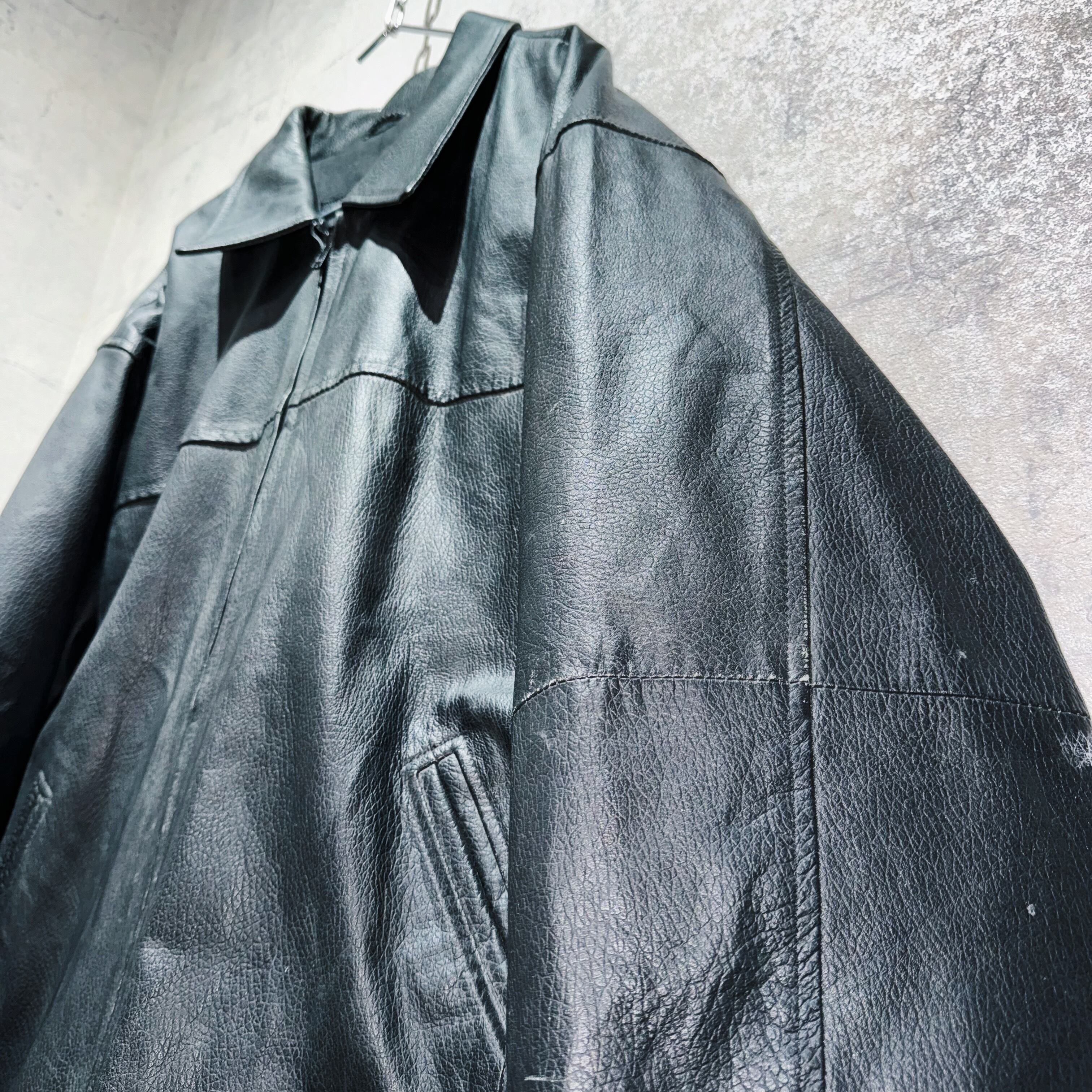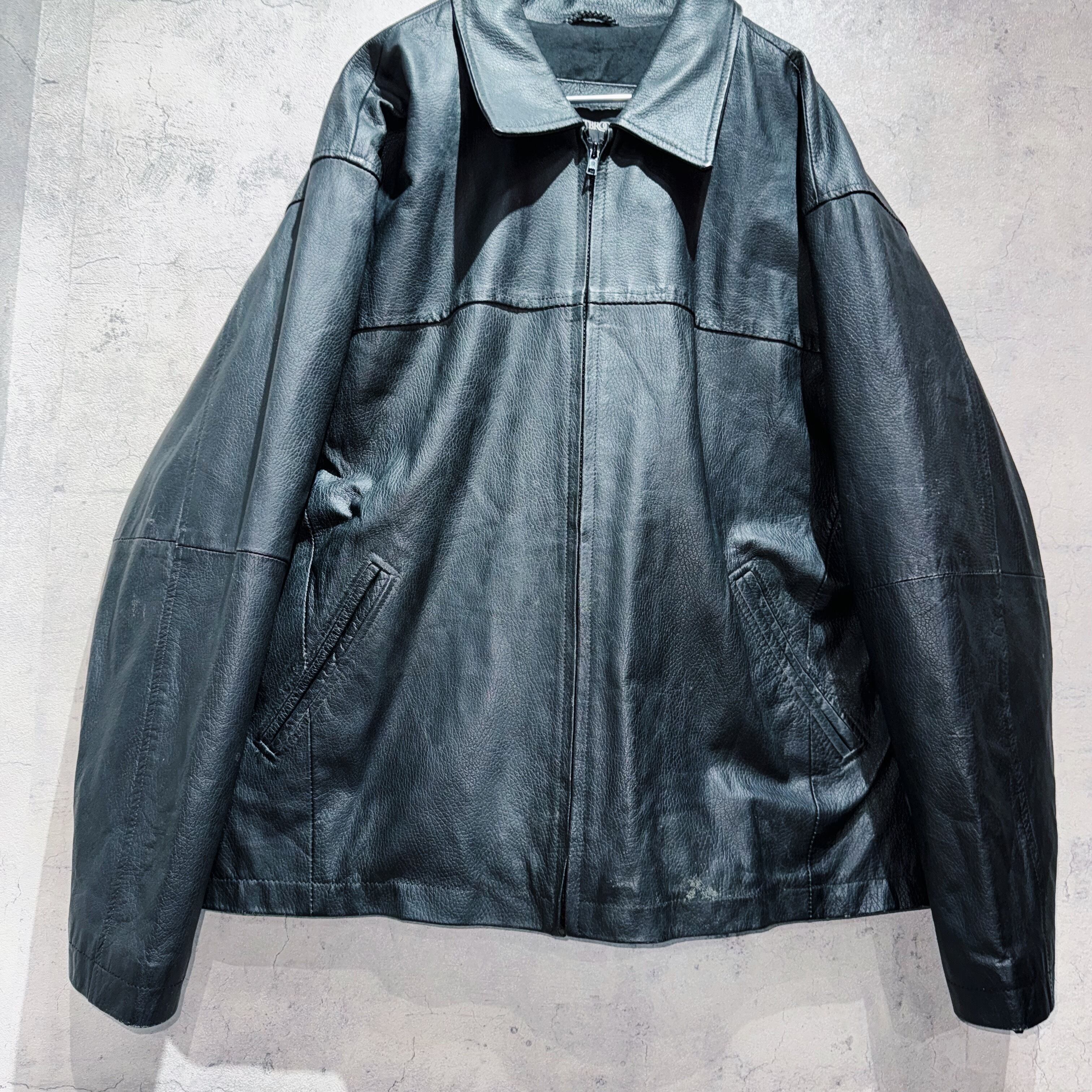 ヴィンテージリアルレザージップアップデザインルーズジャケット
