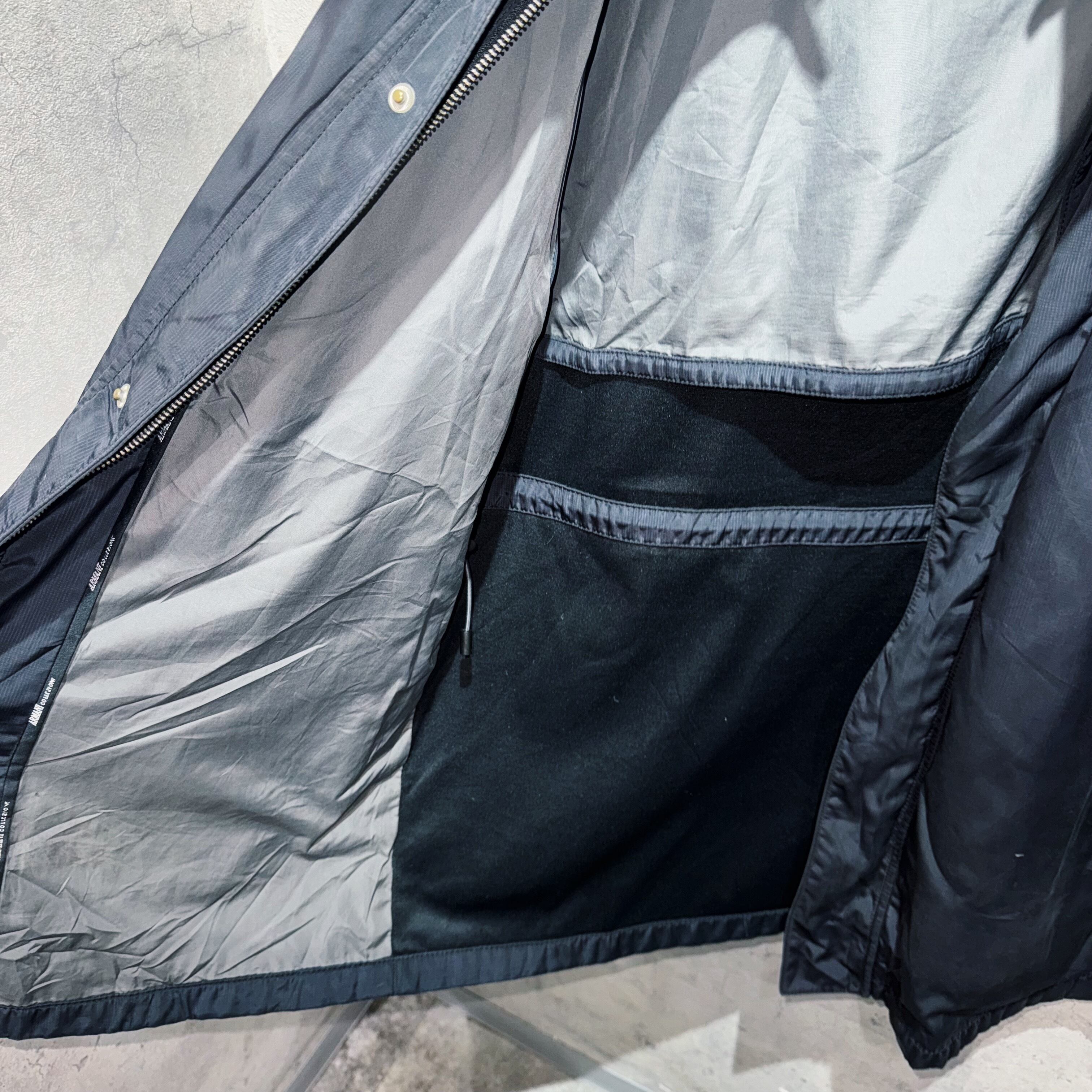 写真からでも伝わってくる美しい光沢に身を包み、無機質で品格さも兼ね備えたダブルジップのジャケット。ボディにはよく見るとチェック柄が施されており、この細かいディテールには思わず脱帽… ダブルジップにもブランド名が刻まれており、ラグジュアリーブランドは細いところまで抜かりないです。