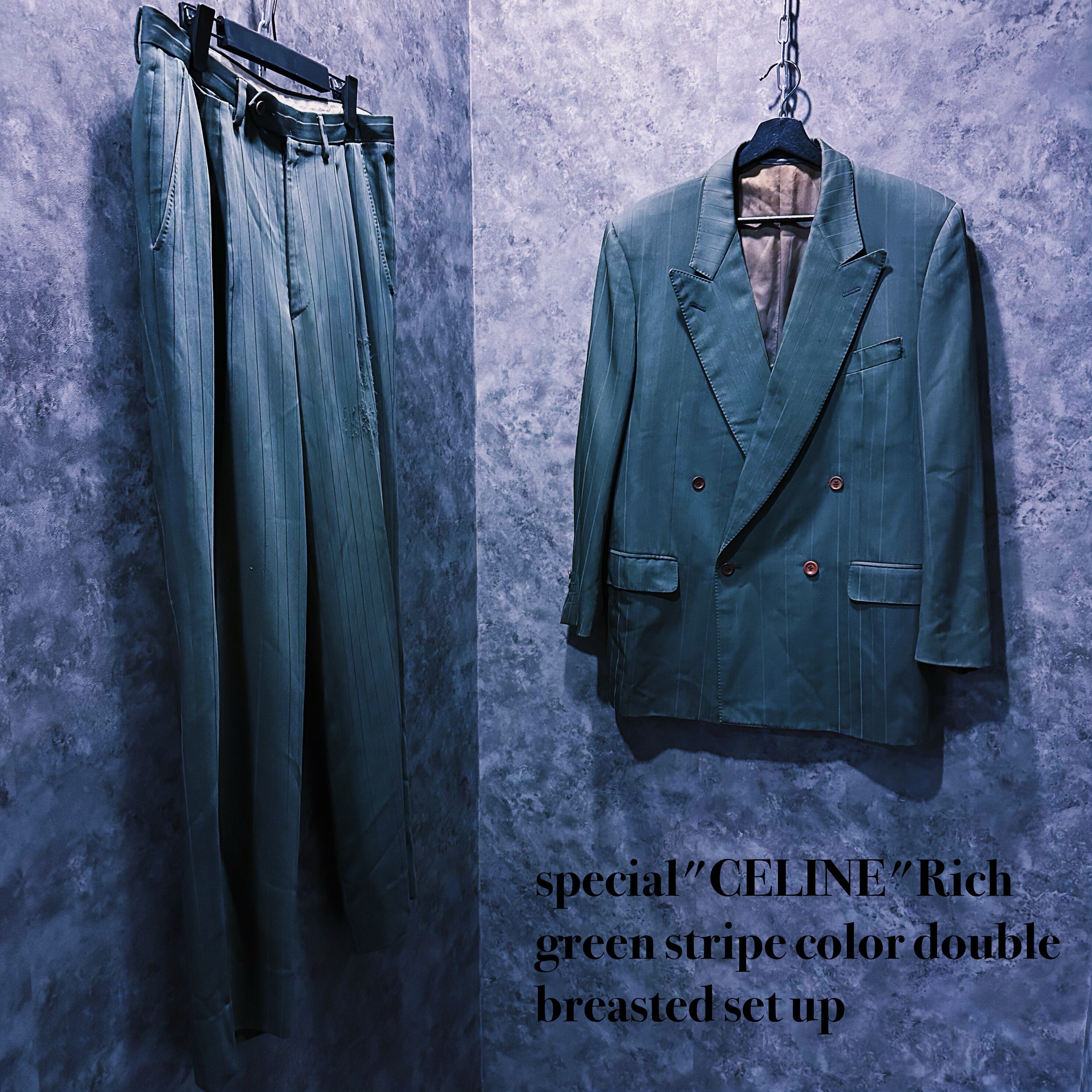 スペシャル"セリーヌ"リッチグリーンストライプカラーダブルブレストセットアップ