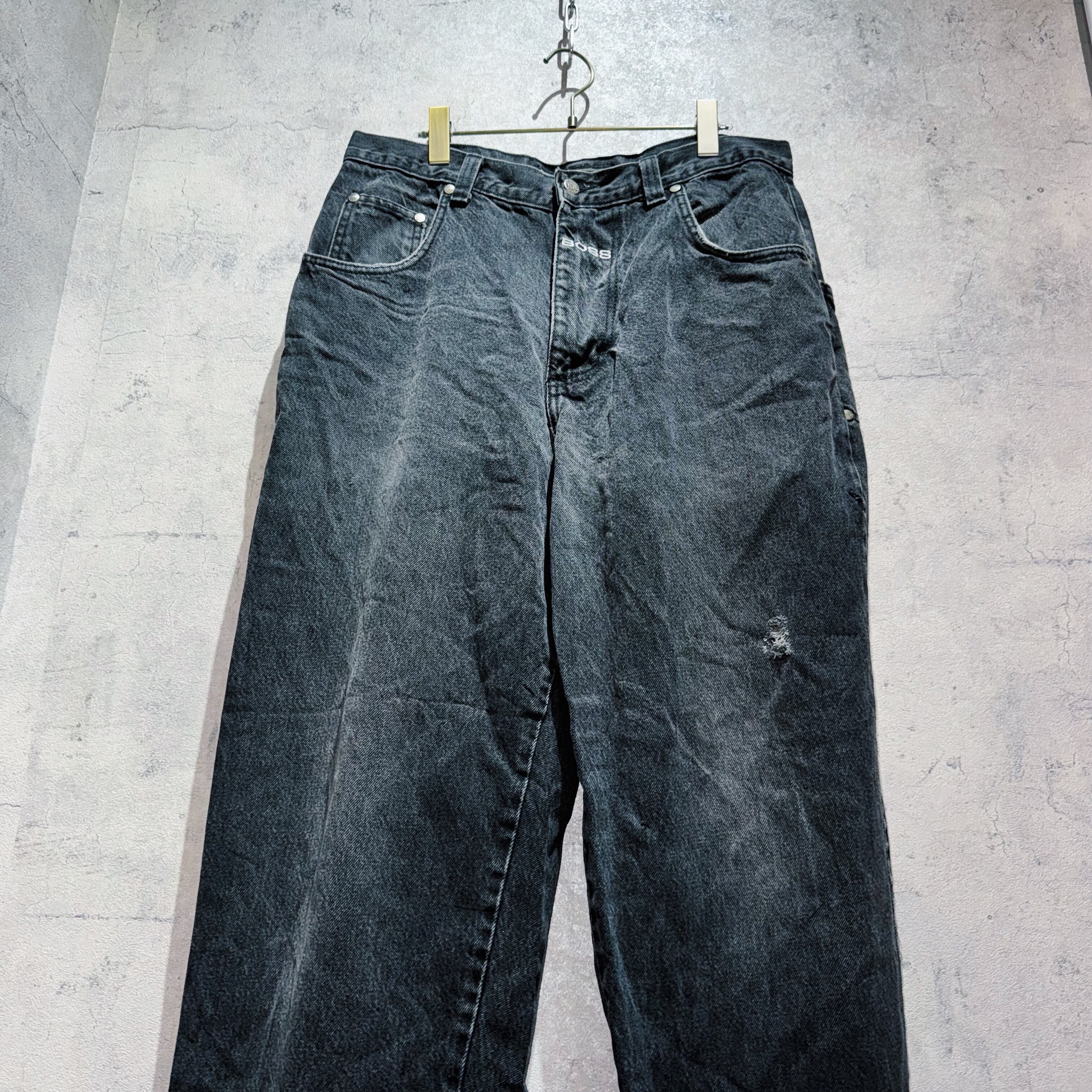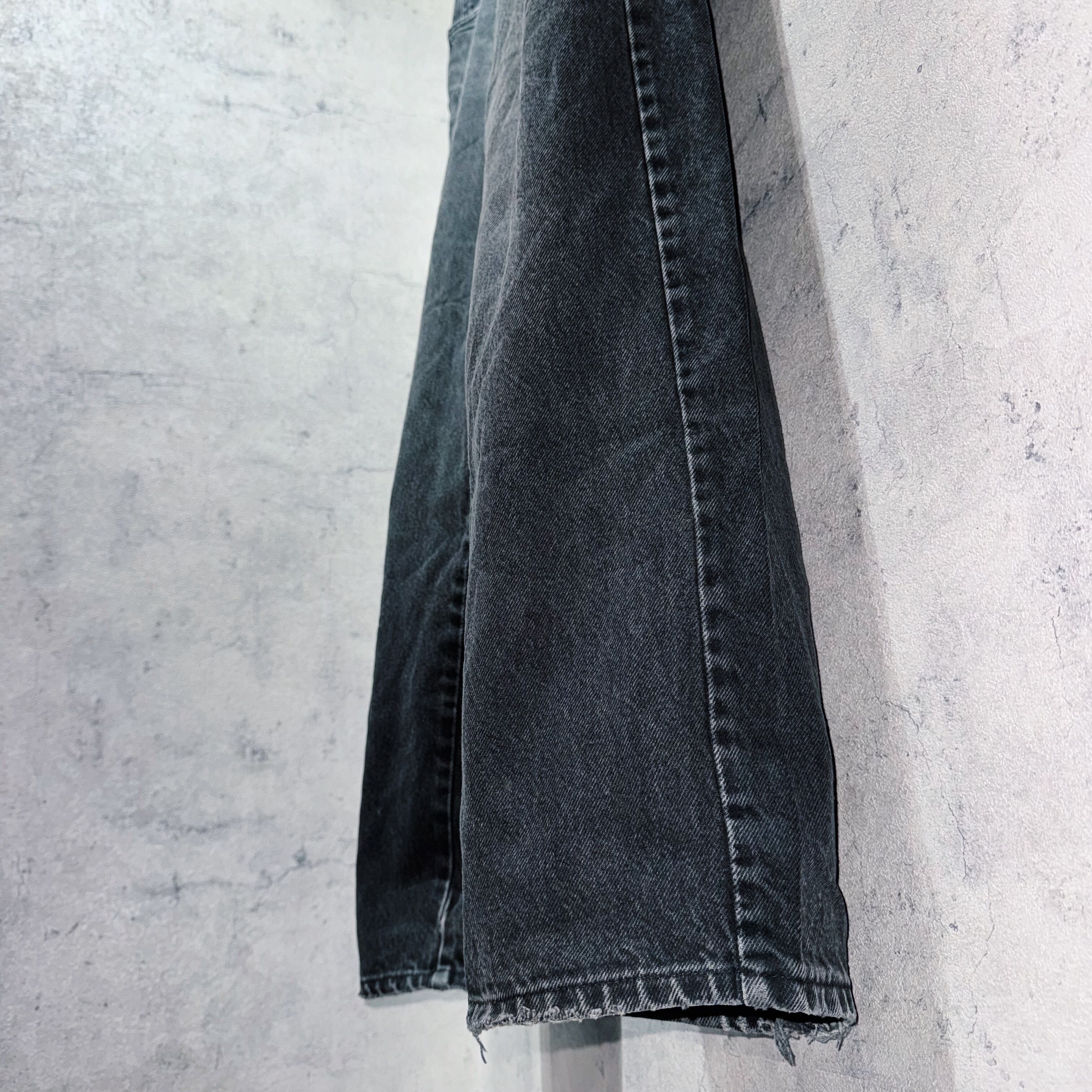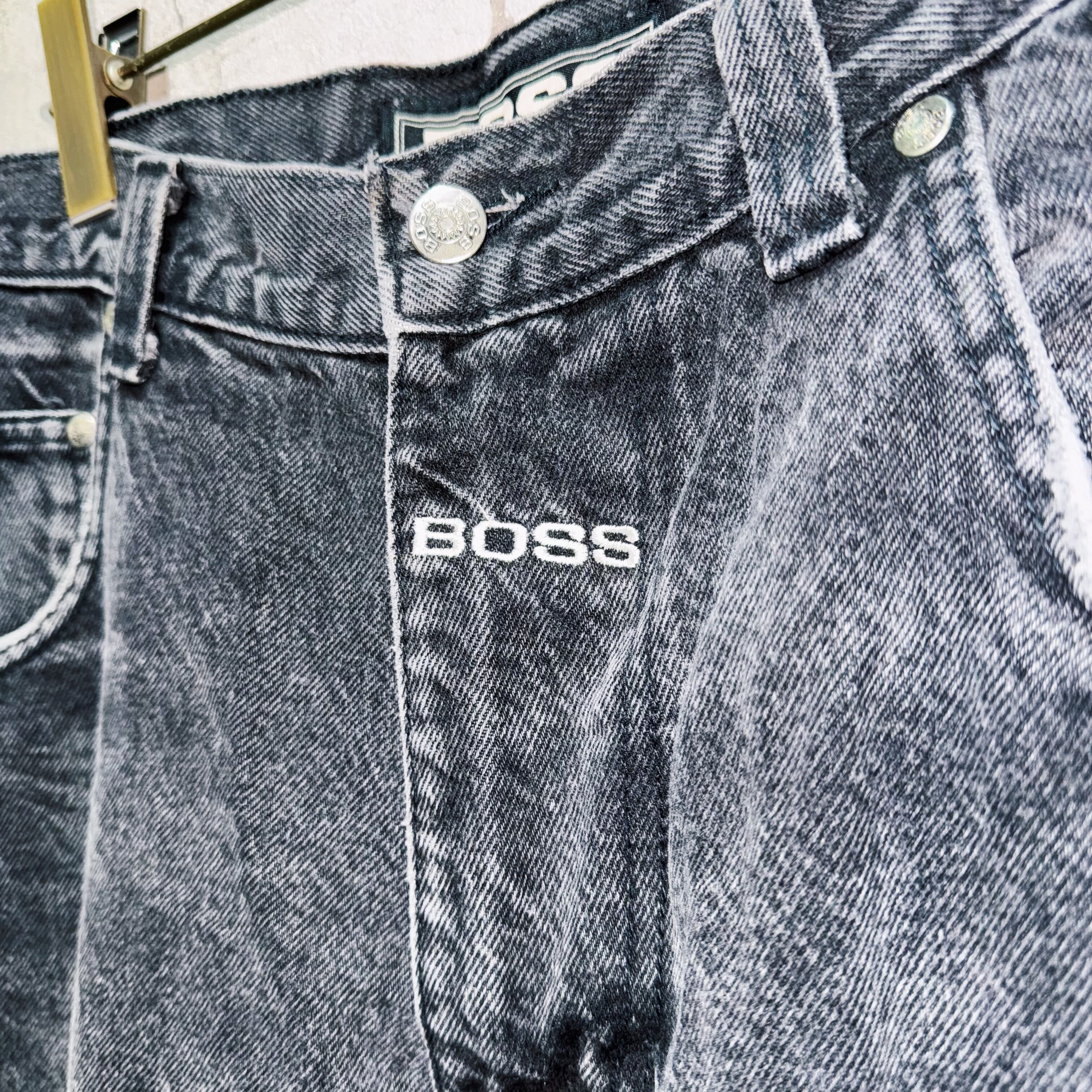 ”ボス”ブランドロゴデザインインクブラックカラーワイドバギーデニムパンツ