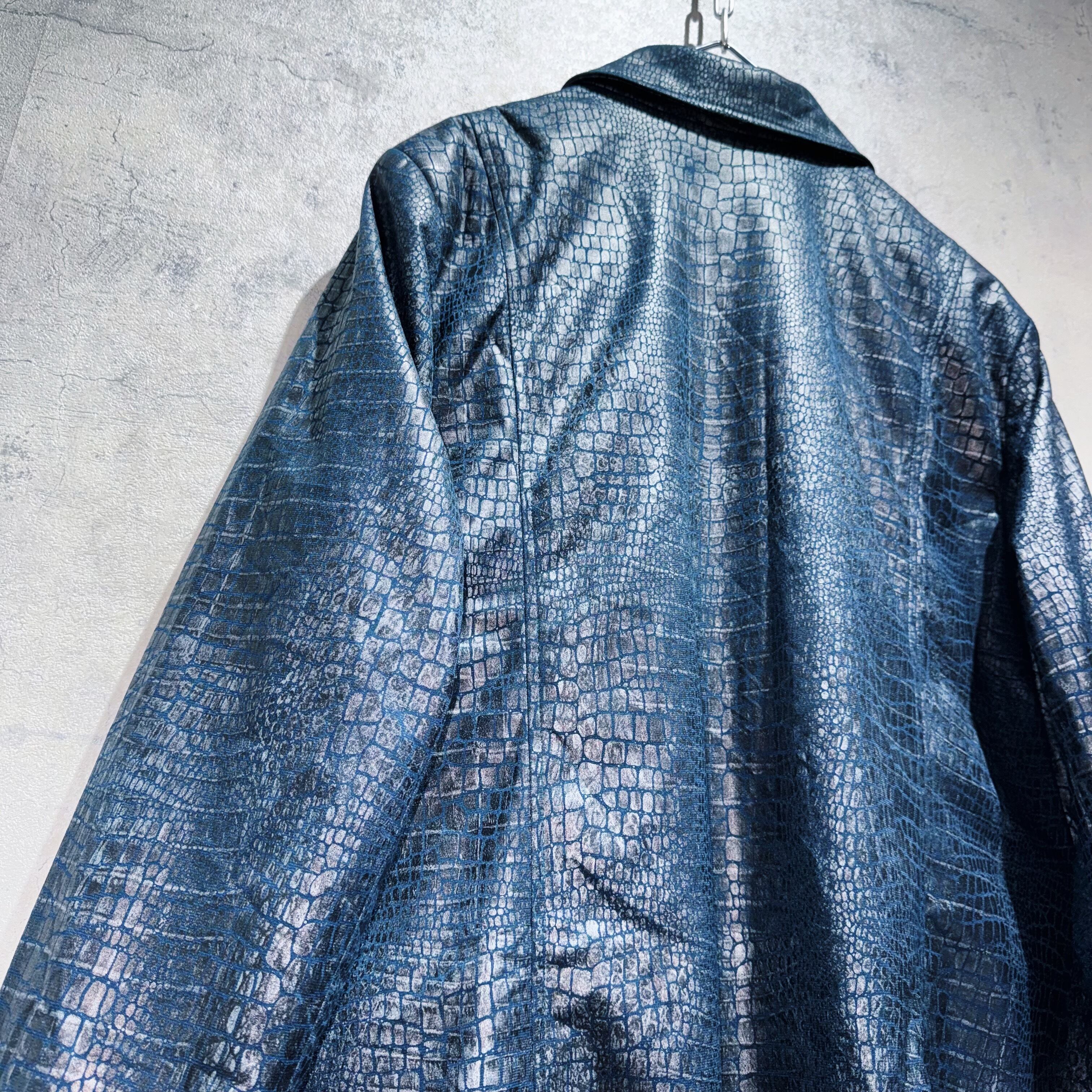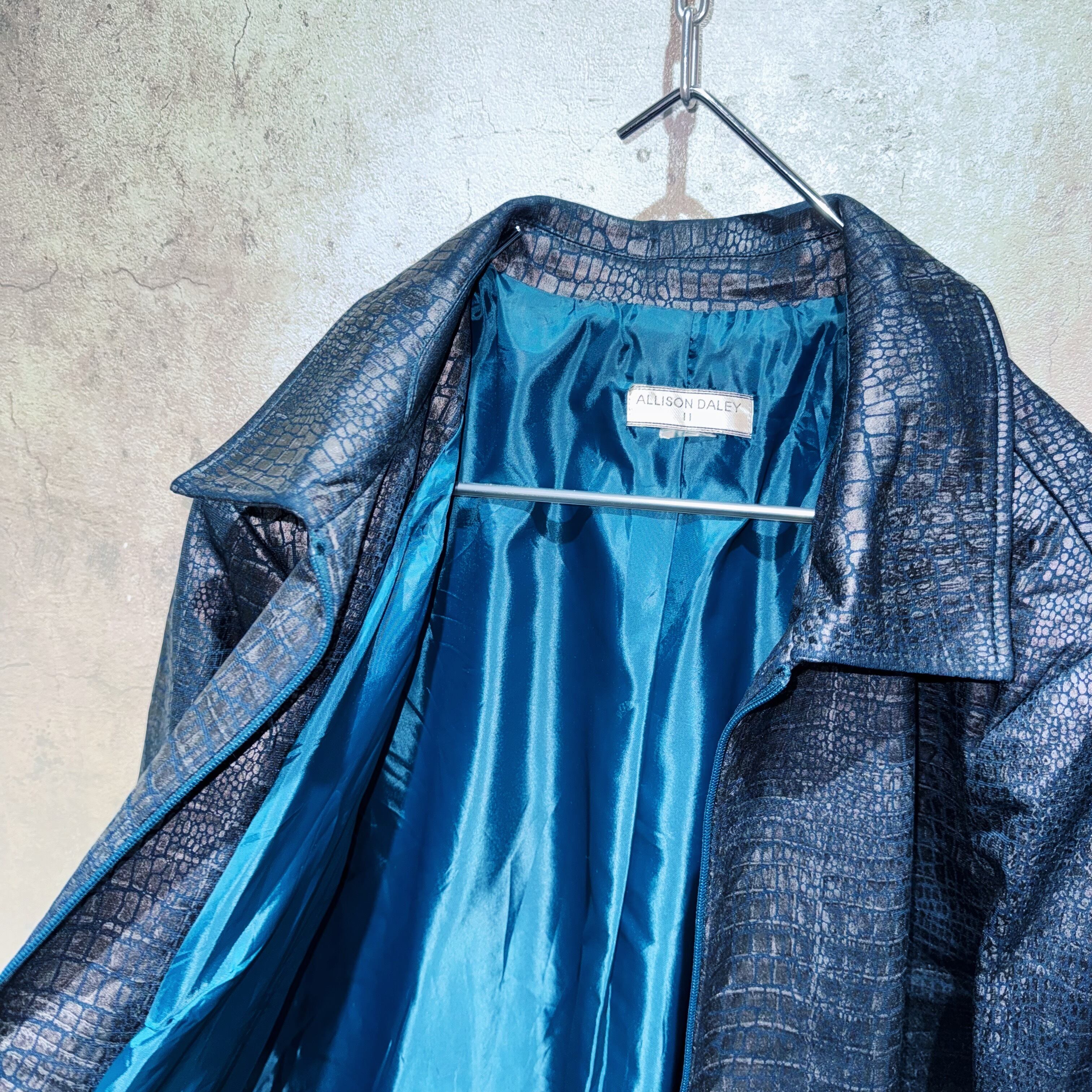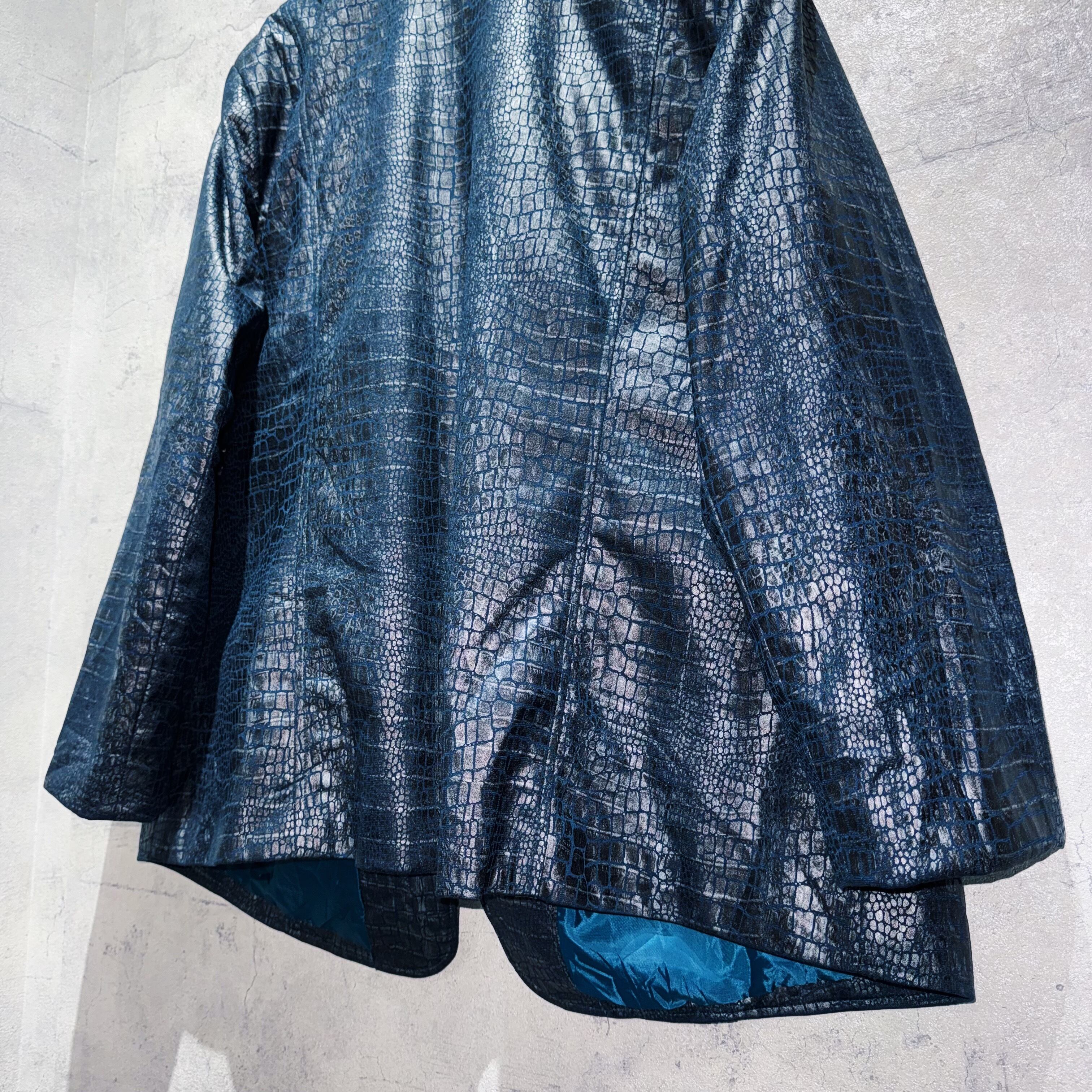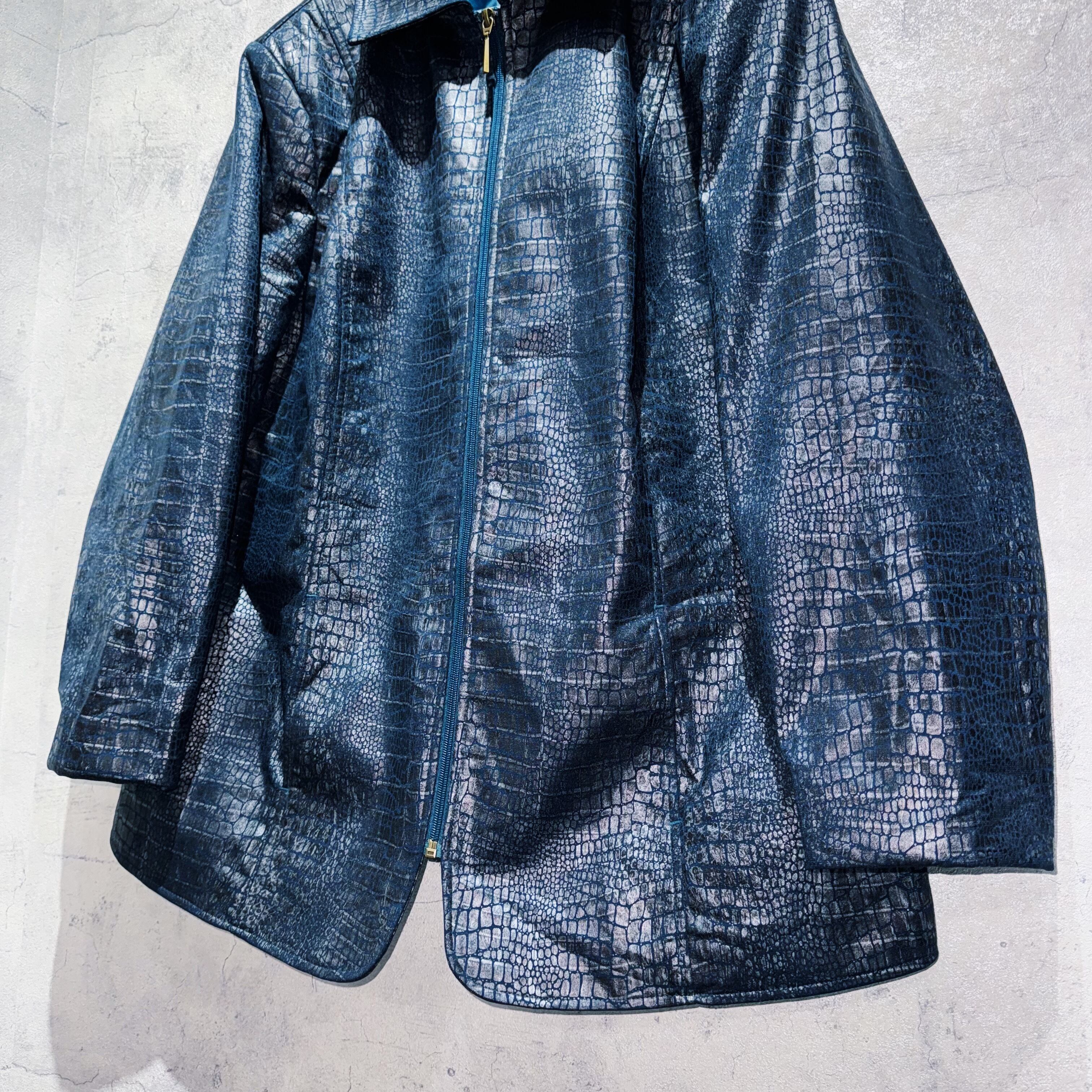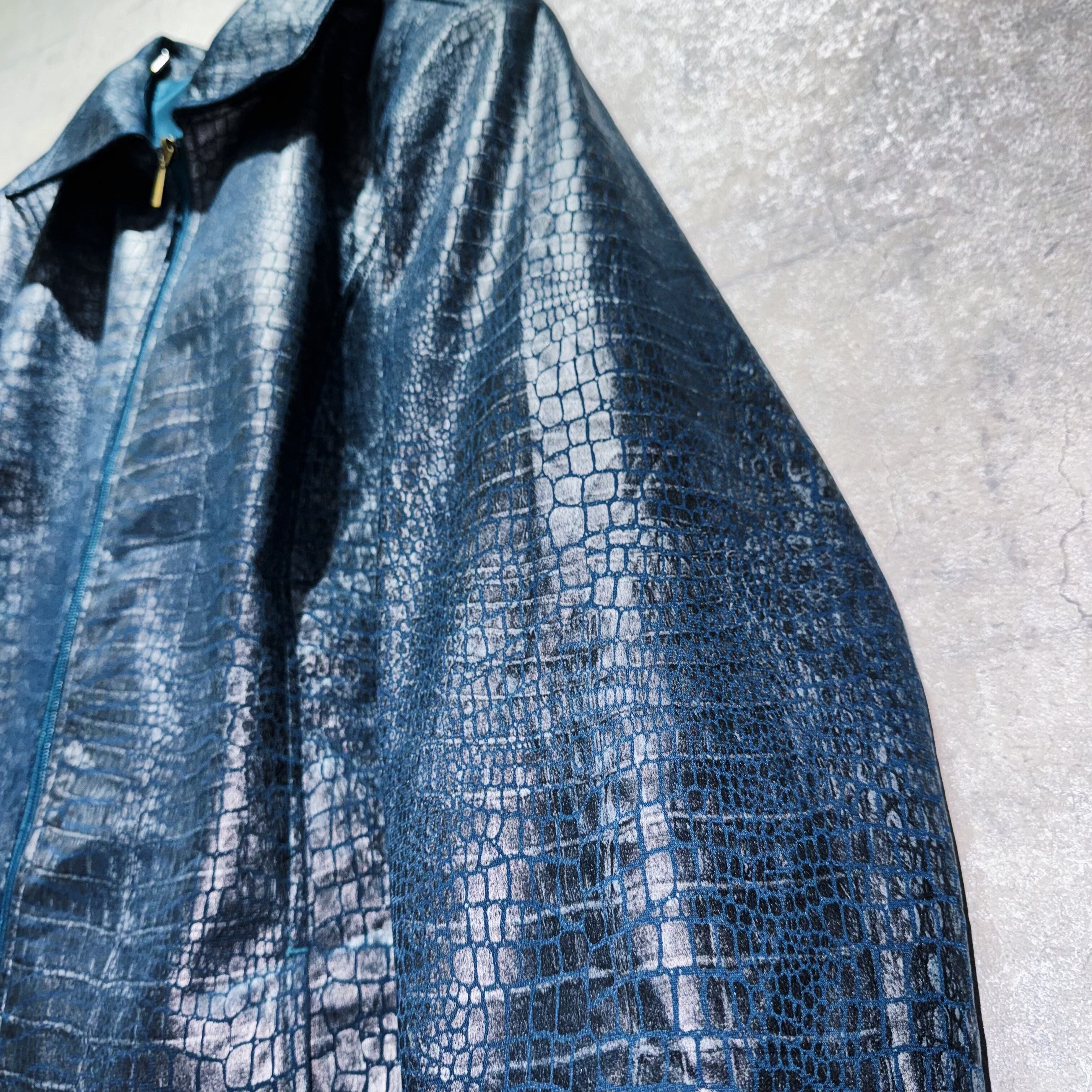 ヴィンテージクロコダイルパターンデザインアンティークゴールドジップアップジャケット