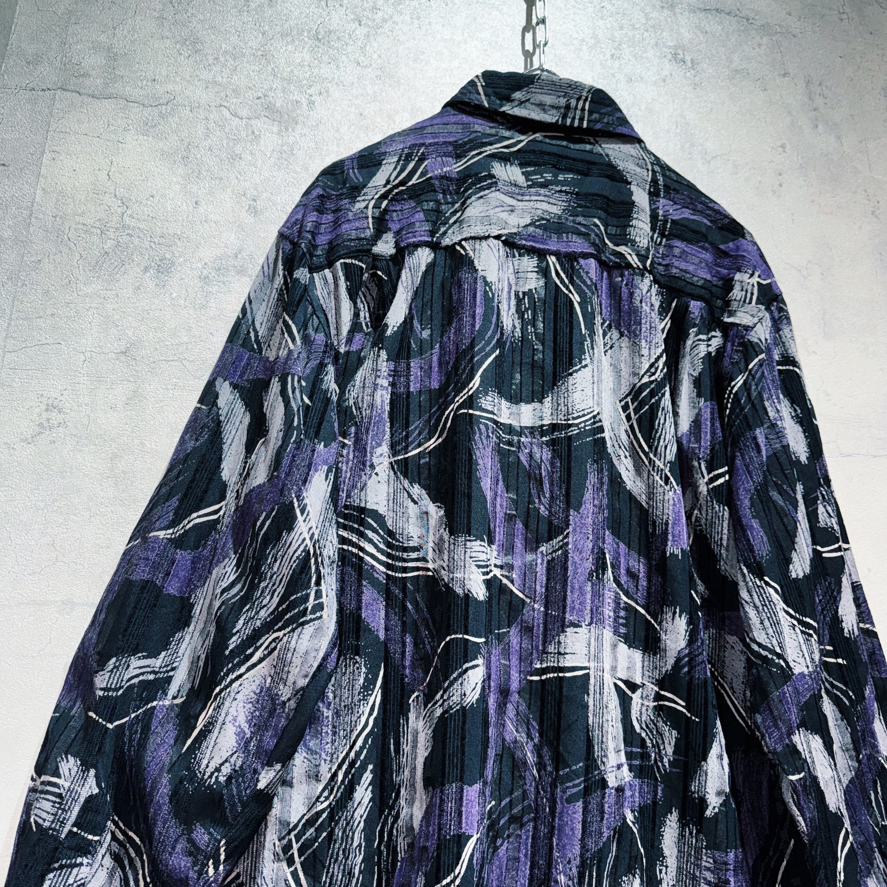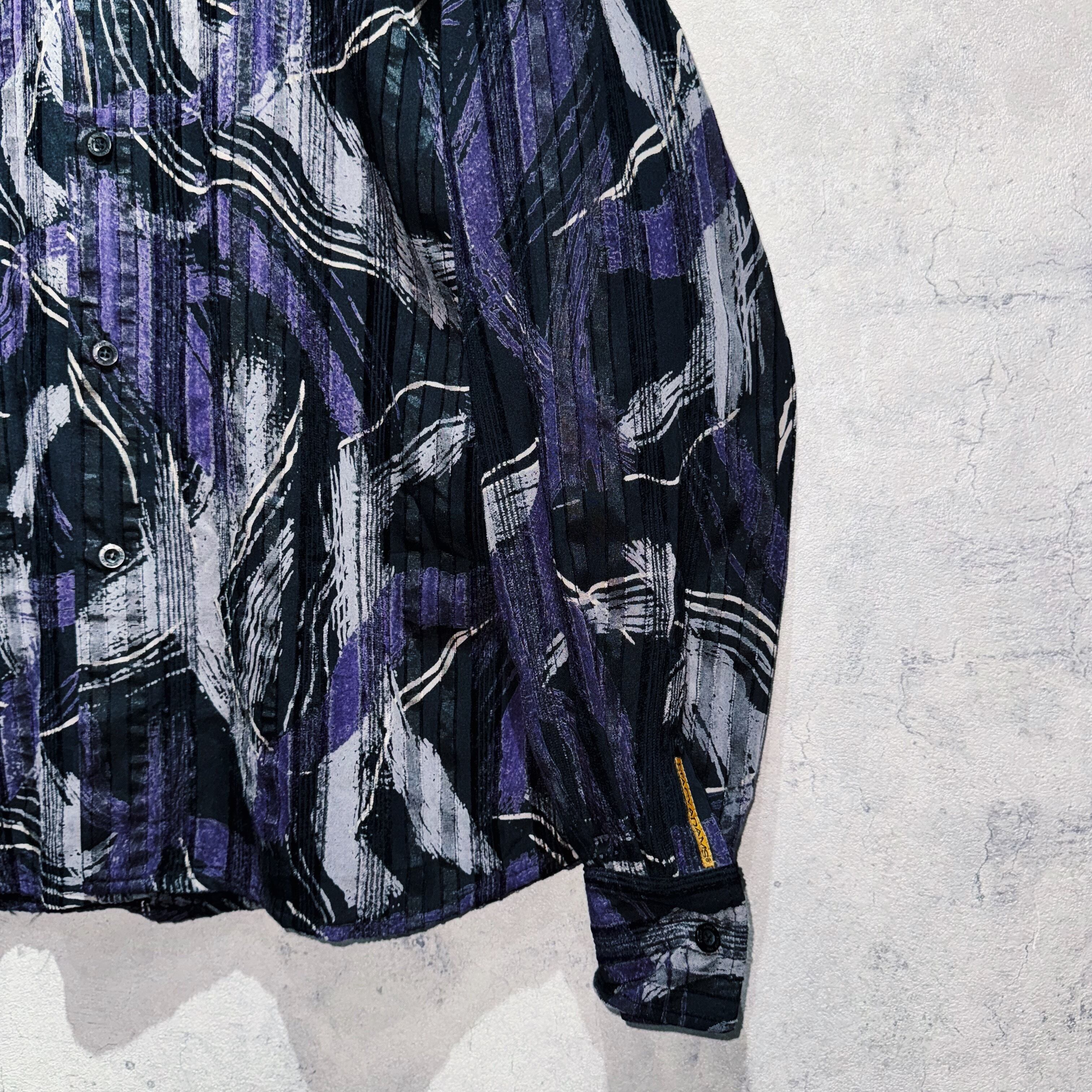 妖麗なカラーリングでアートグラフィックを載せた圧巻のデザインシャツ。さらにその上からベロア素材でストライプを載せ高級感を演出。