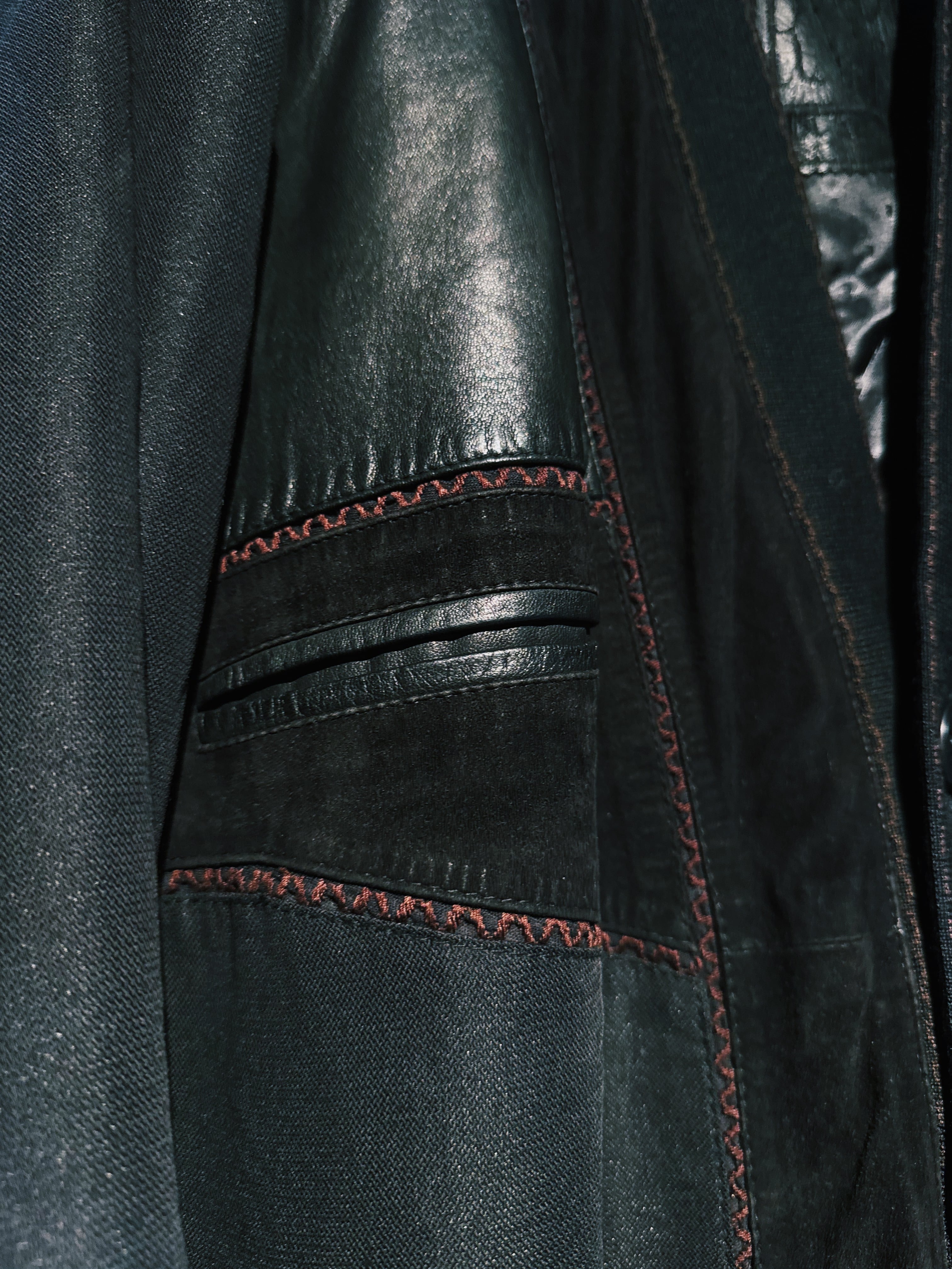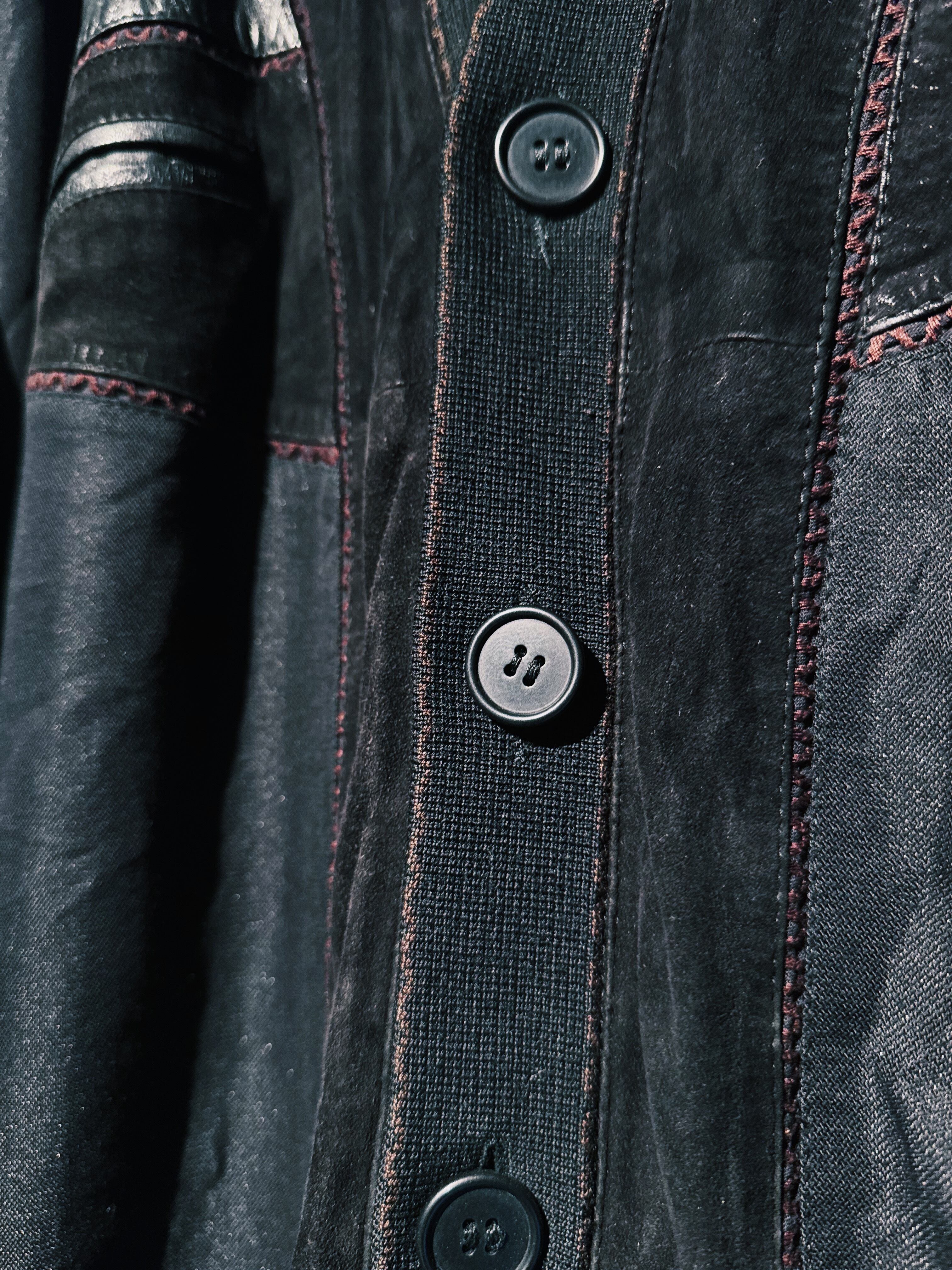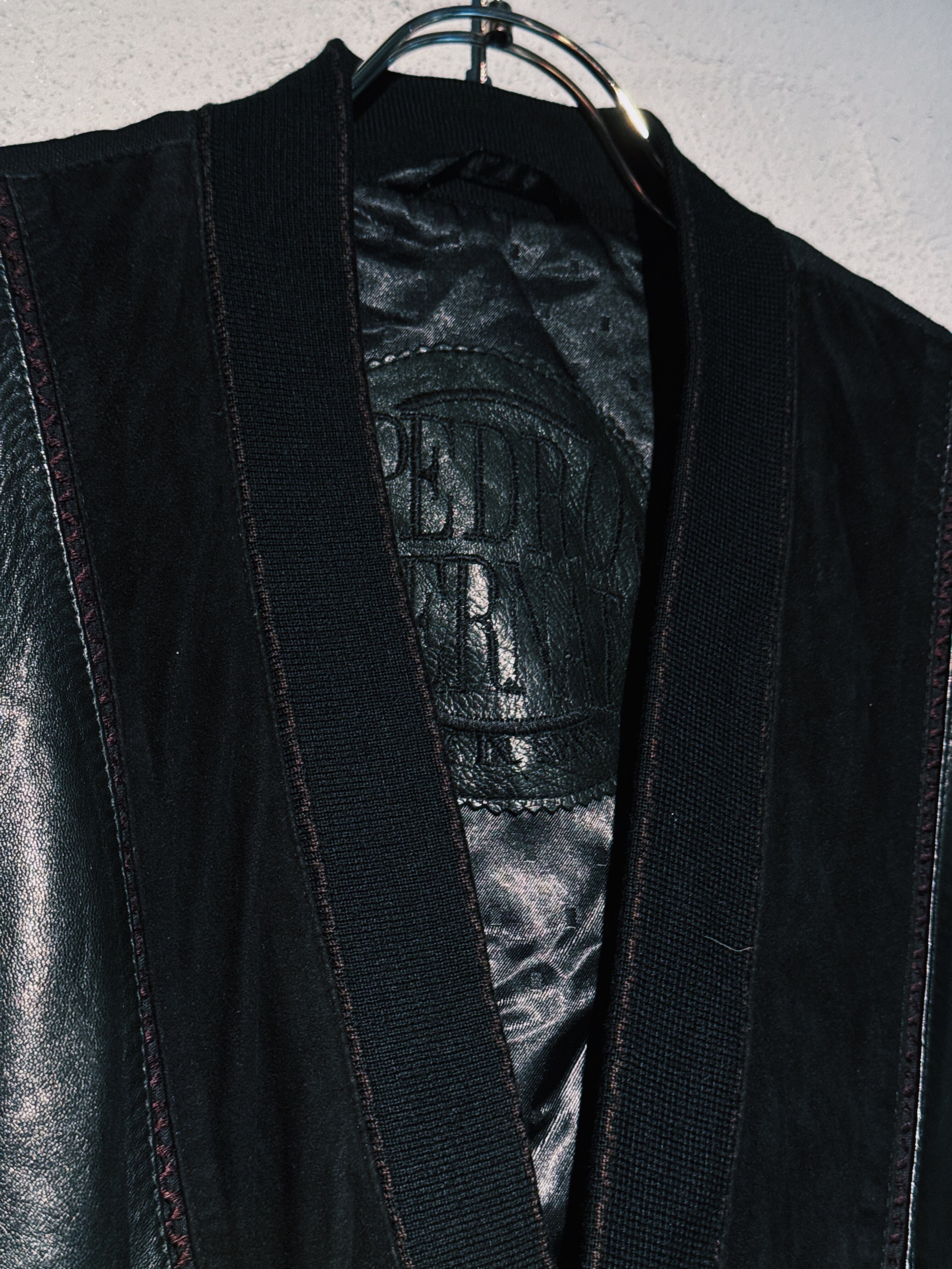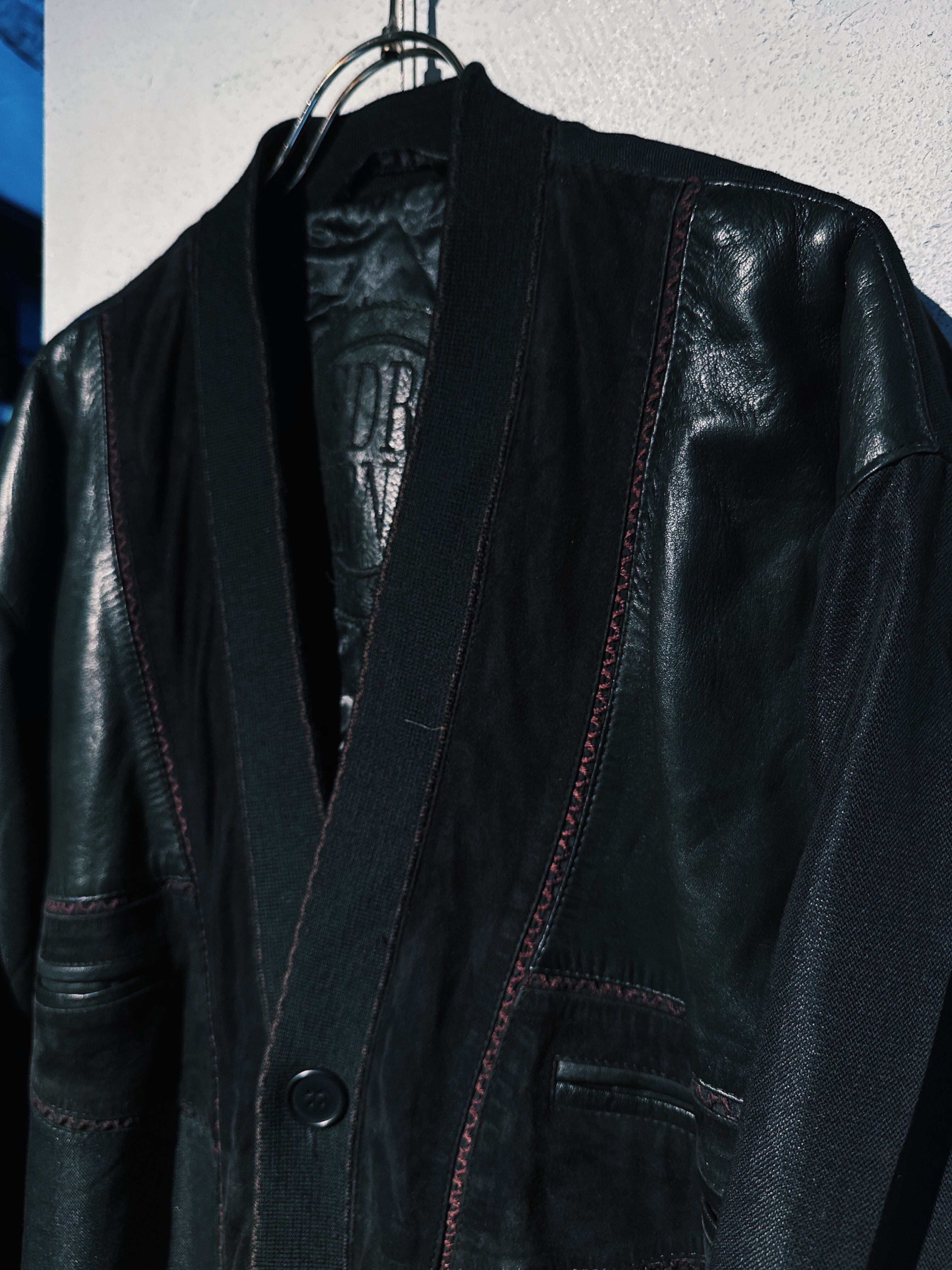 ヴィンテージナイロンスイッチングデザインレザーカーディガンジャケット
