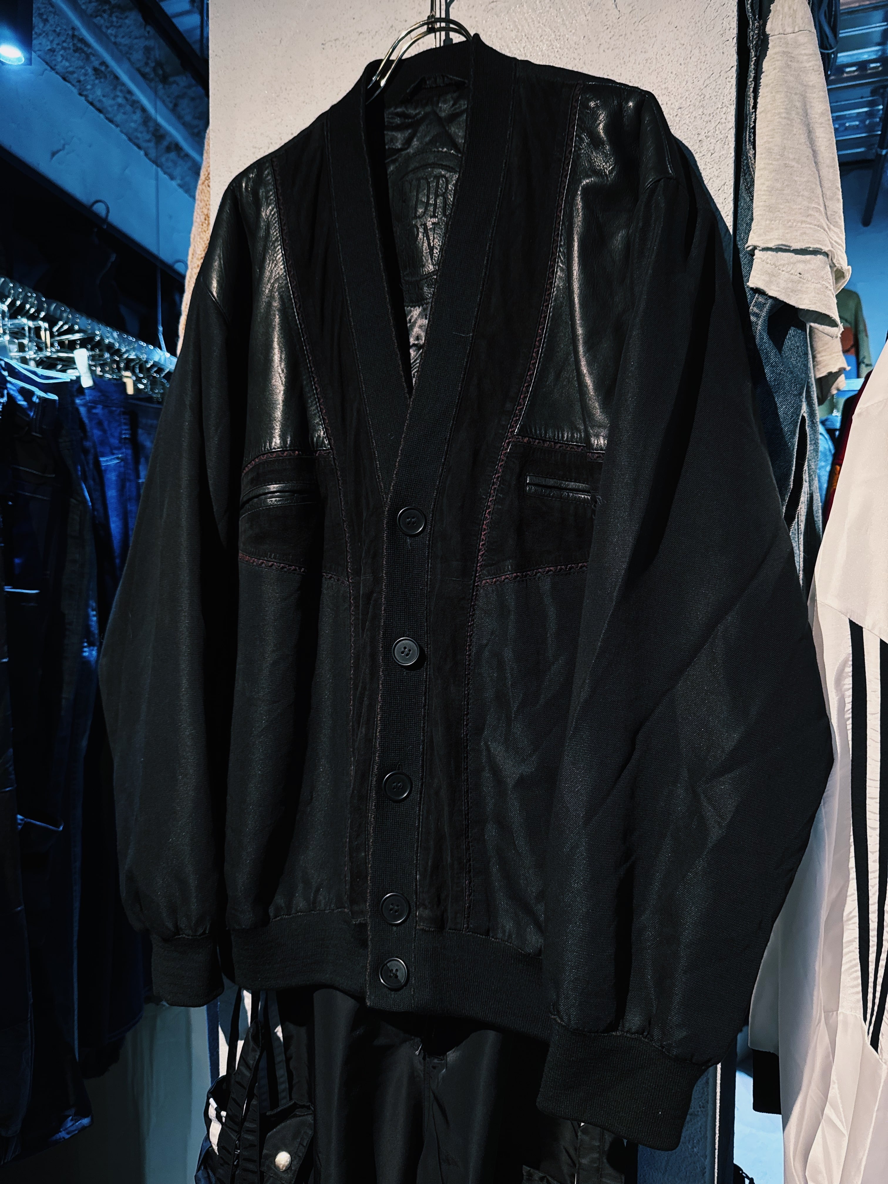 渋すぎるマットでブラックのレザーが重厚感を演出。重さのあるレザーにカジュアルなナイロンがスイッチングされたカーディガンジャケット。
