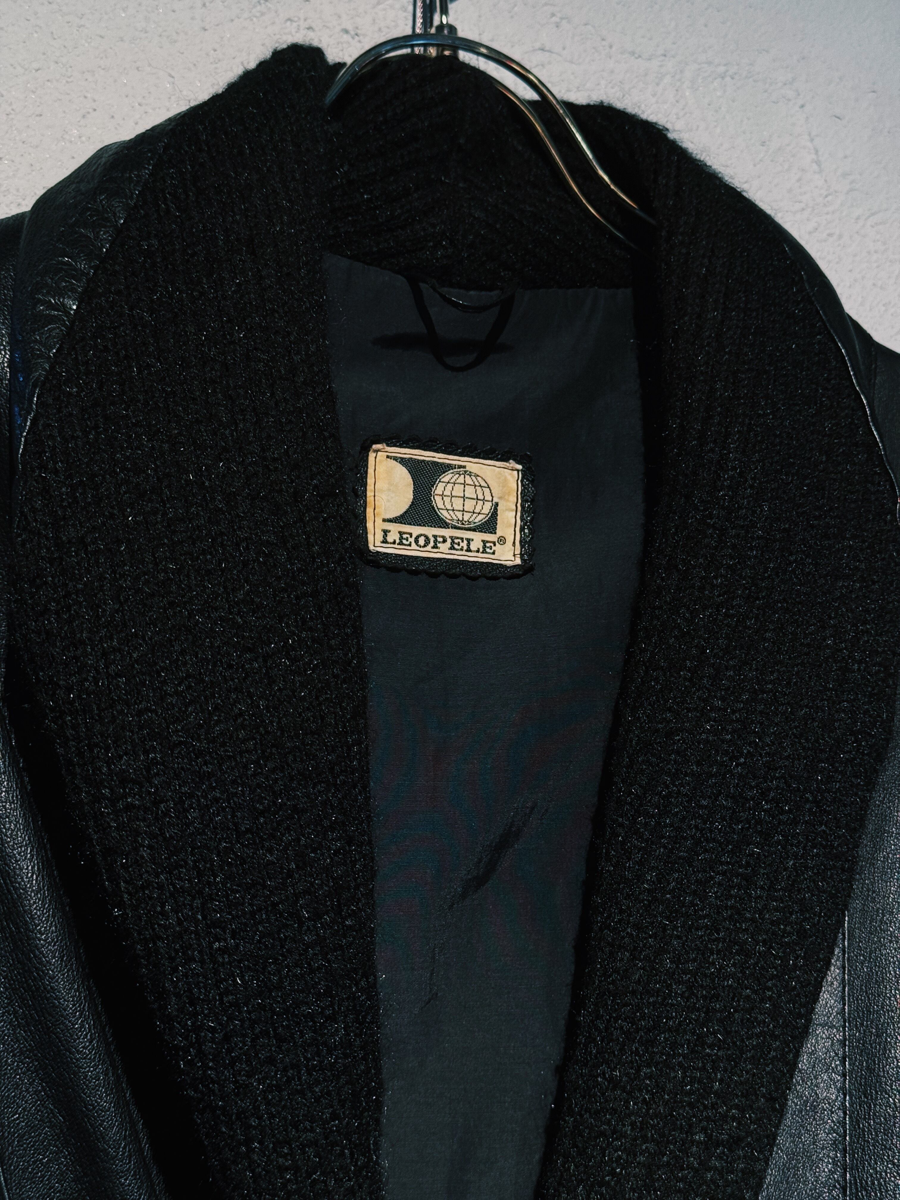 "Euro vintage" wool collor switching design double breast leather cardigan