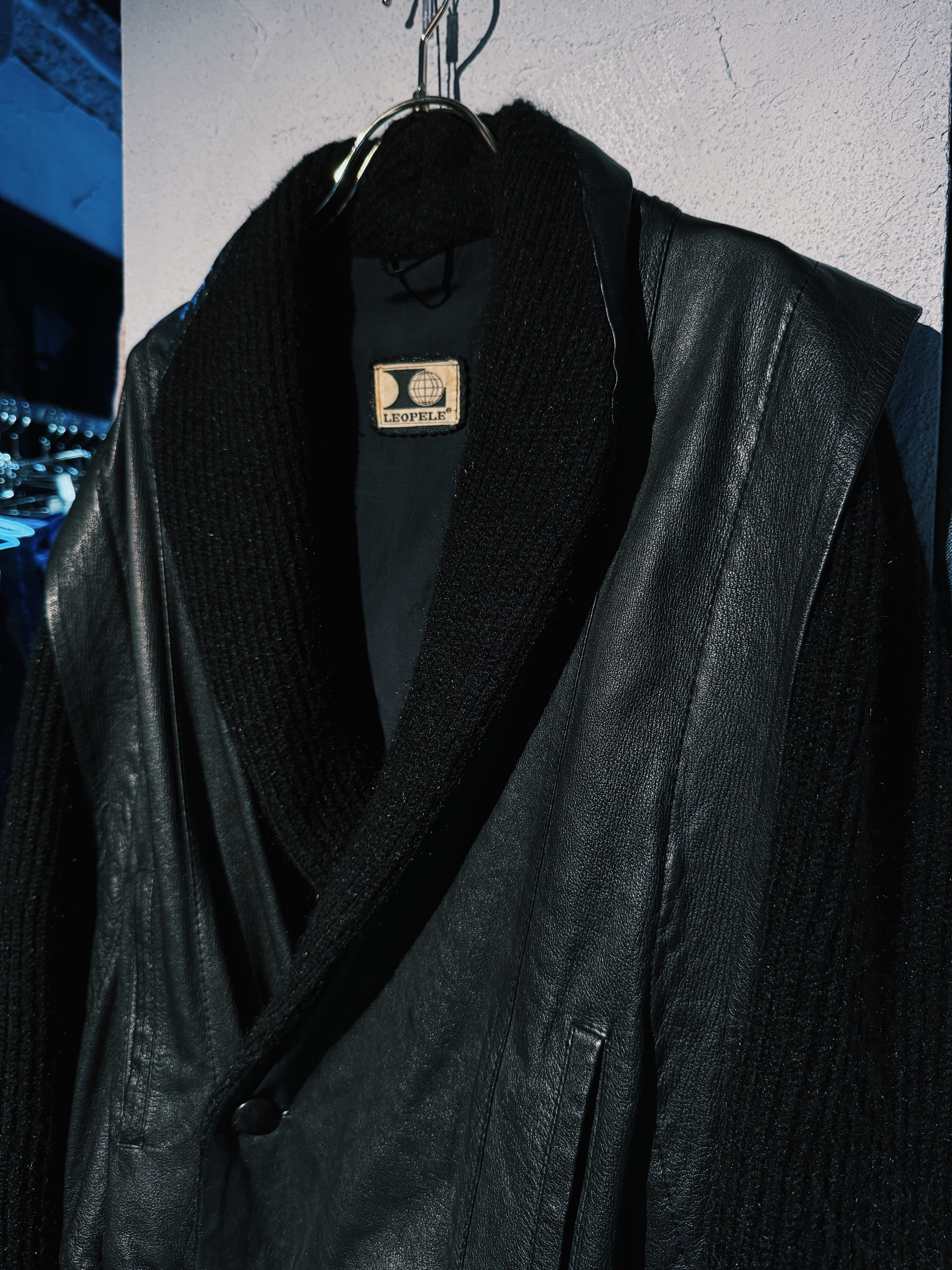 レザーカーディガンで襟とバックの部分がまさかのウール生地をスイッチング。しかも上質なウール生地で施された存在感、デザイン性最高に抜群のレザーカーディガン。ハイブランドかのような存在感があるハイクオリティーな逸品。