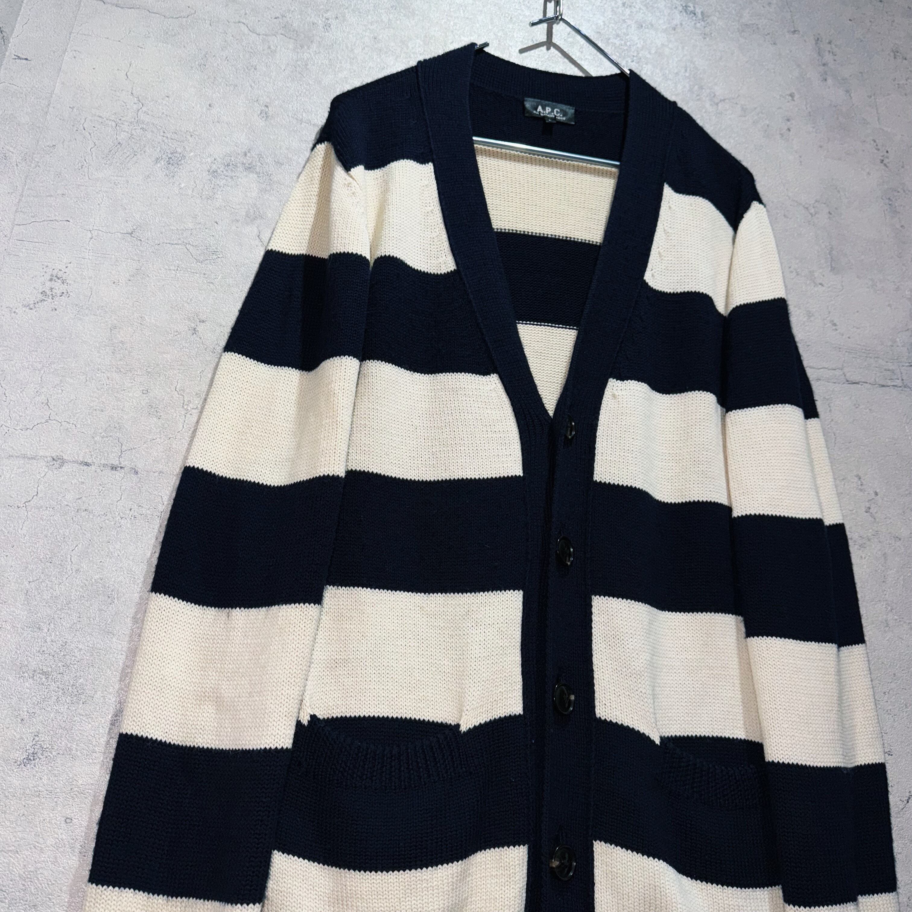 "アー・ペー・セー”スイッチングカラーボーダーパターンデザインルーズカーディガン
