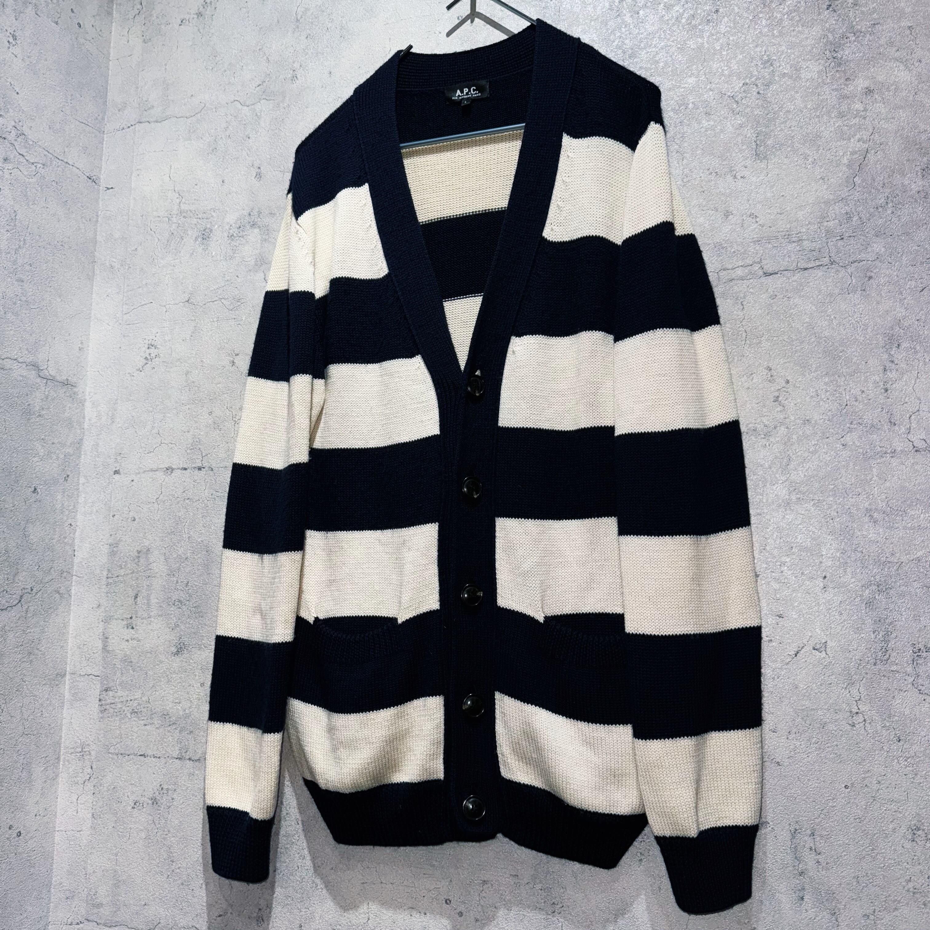“A.P.C”switching color border pattern design loose cardigan