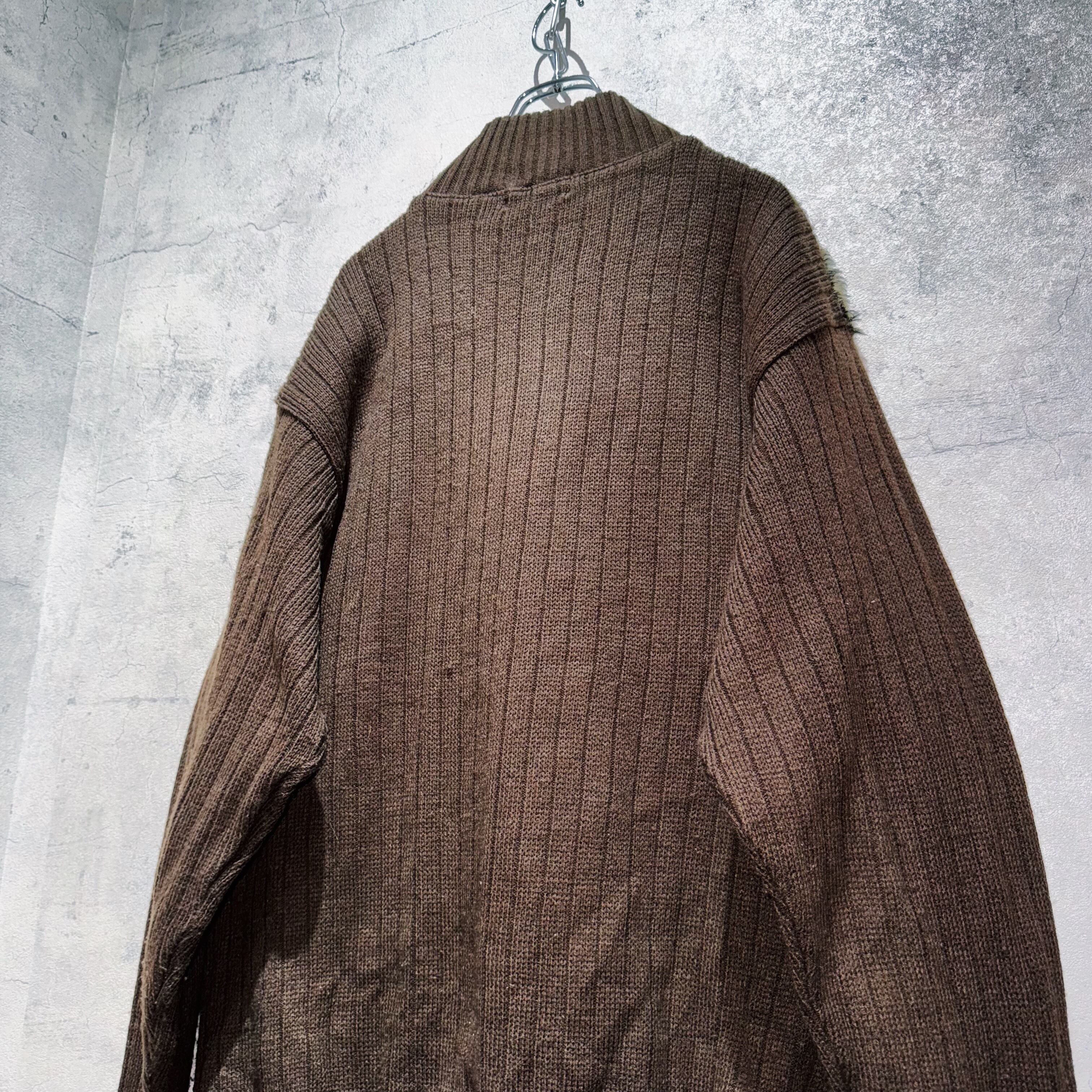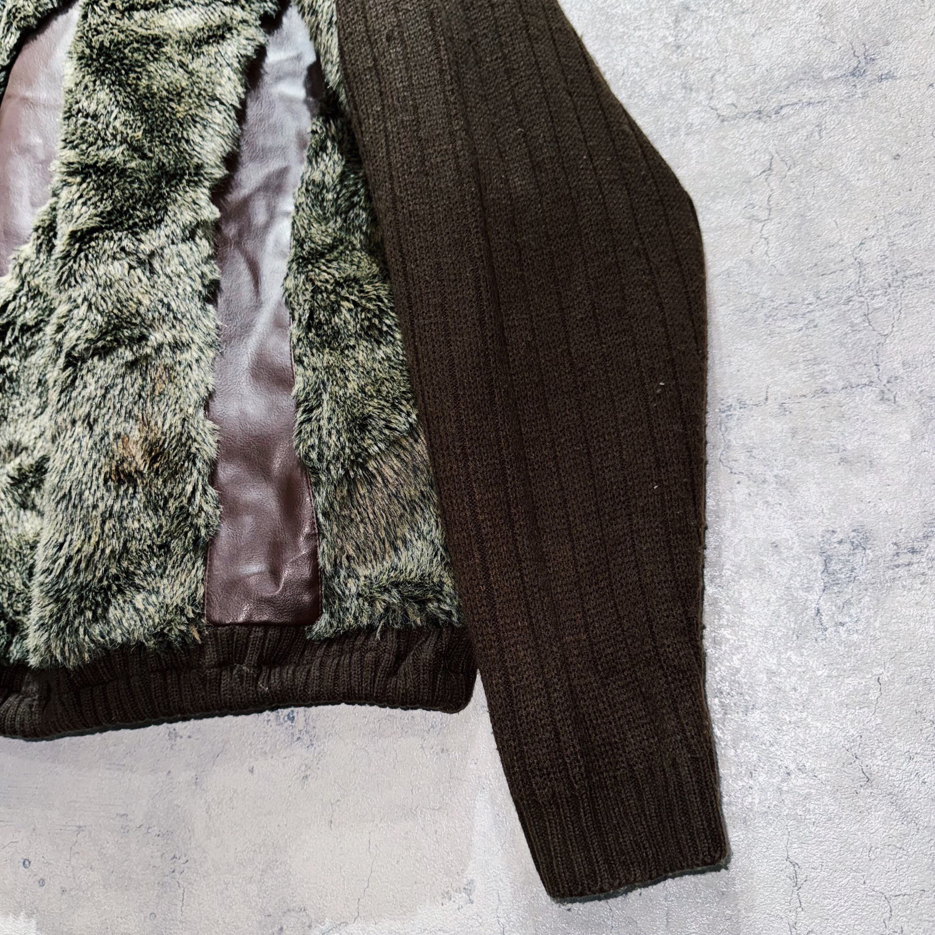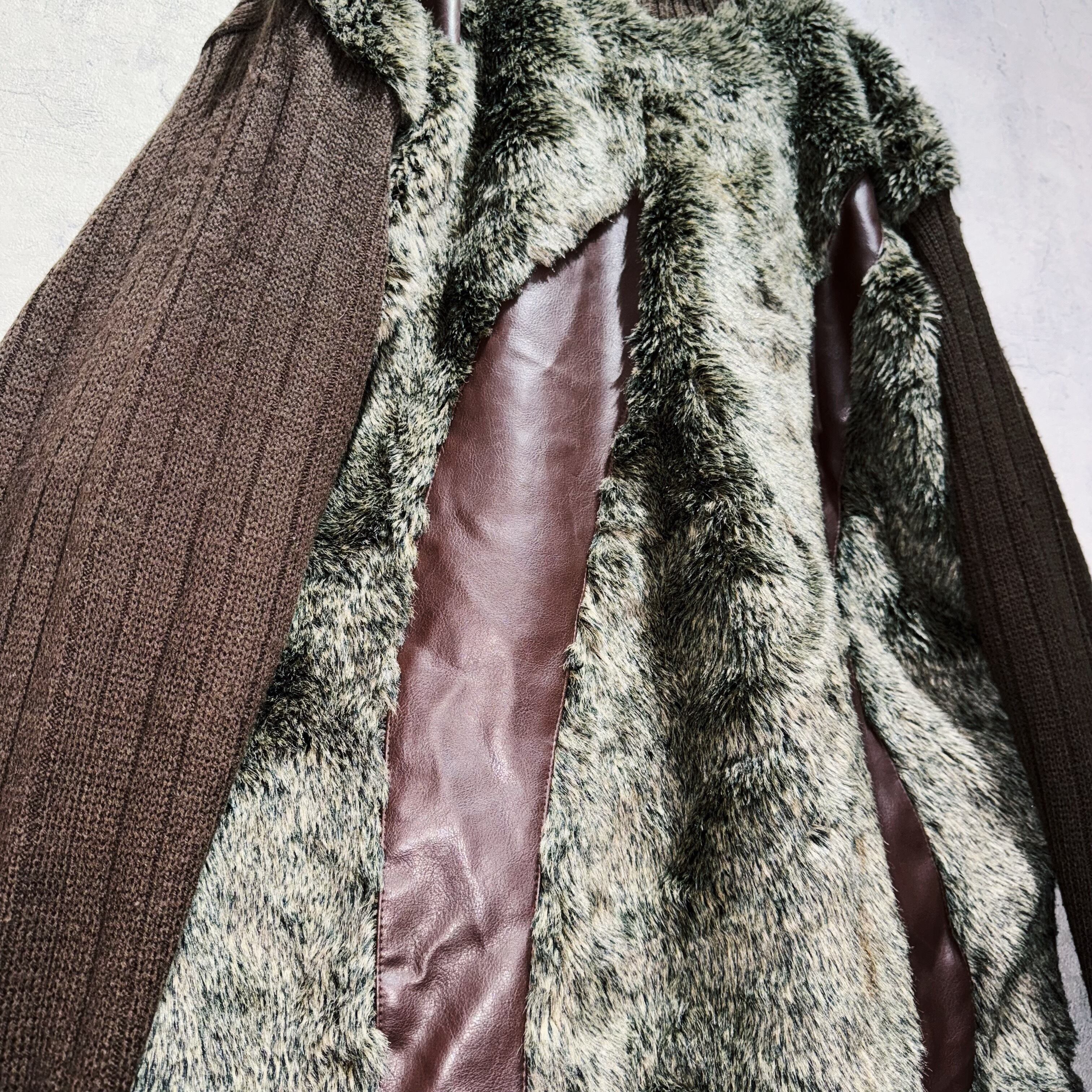ヴィンテージフェイクファー×レザースイッチングデザインモックネックニット