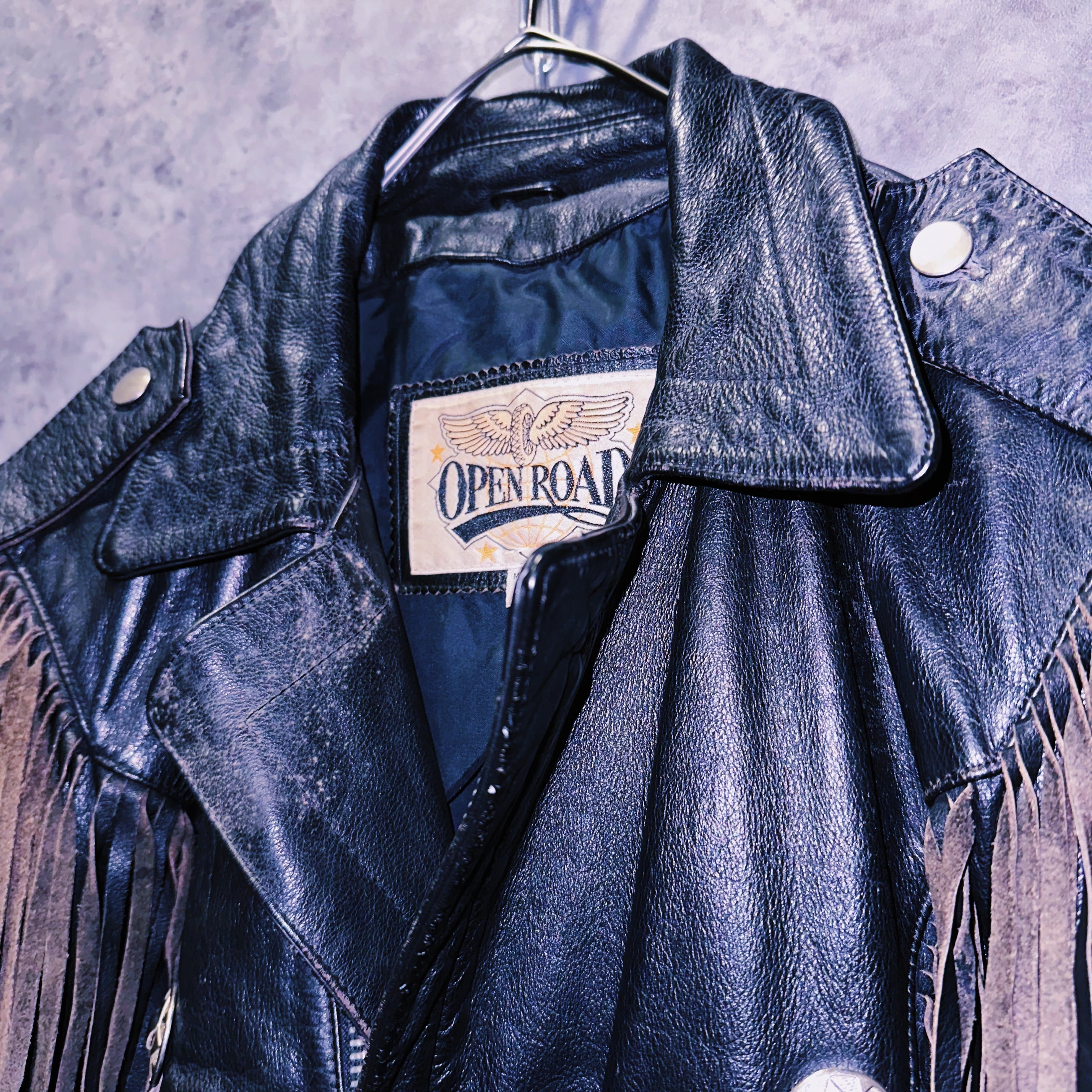 スペシャル90'sフリンジデザインレザーライダースジャケット