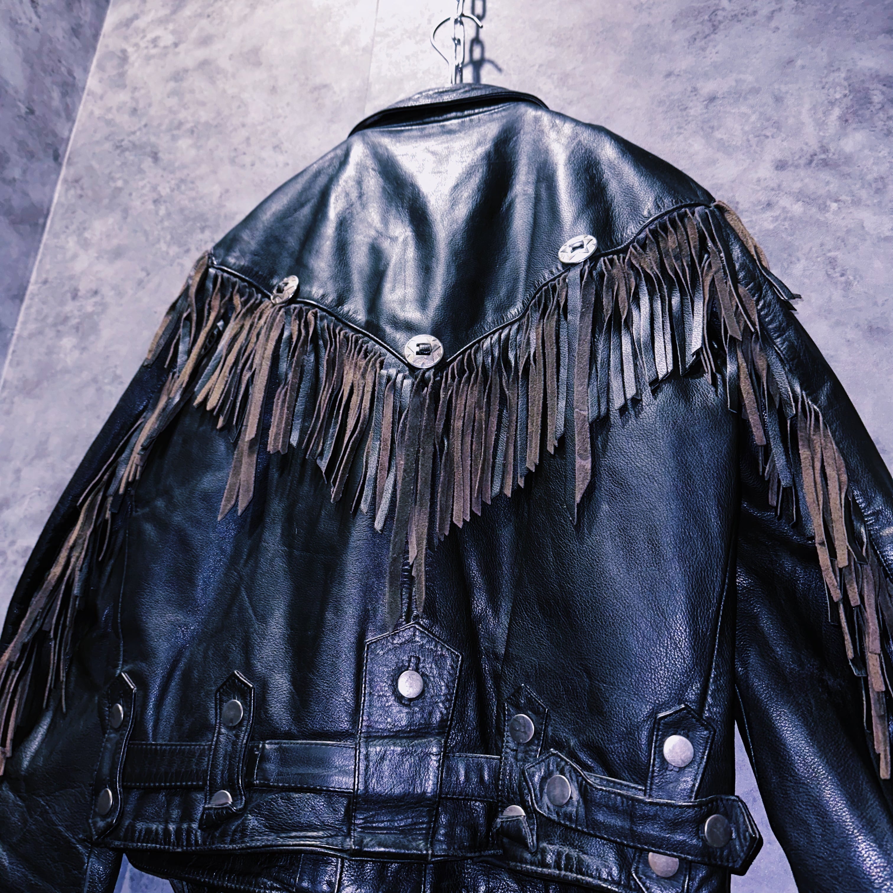 【doppio】special 90’s vintage fringe design leather Riders jacket