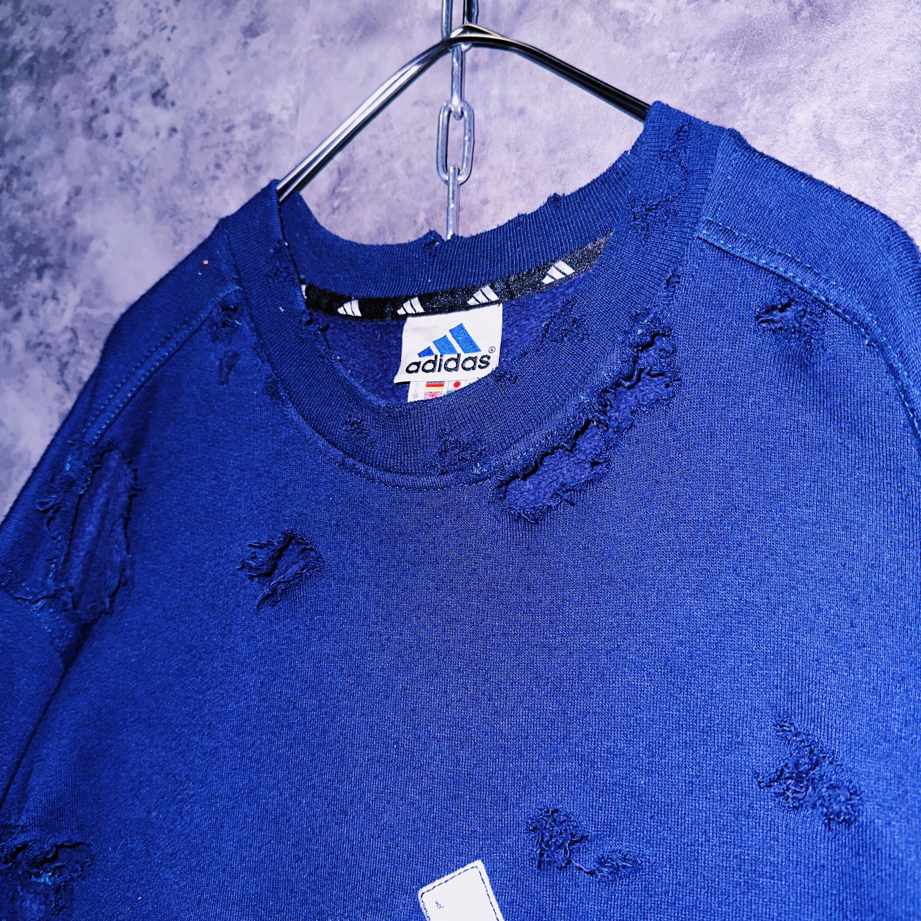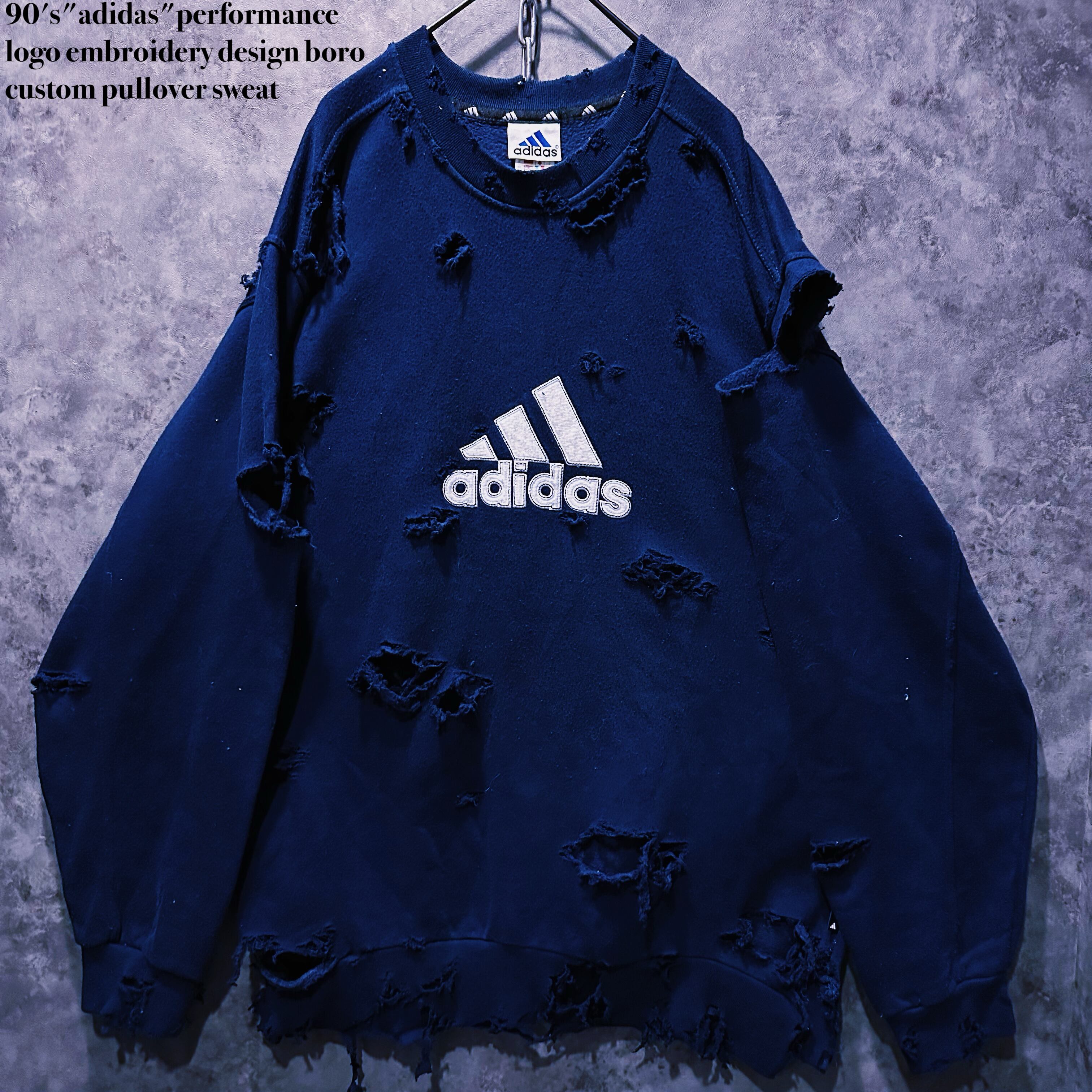 90's"adidas"performance logo embroidery design boro custom pullover sweat