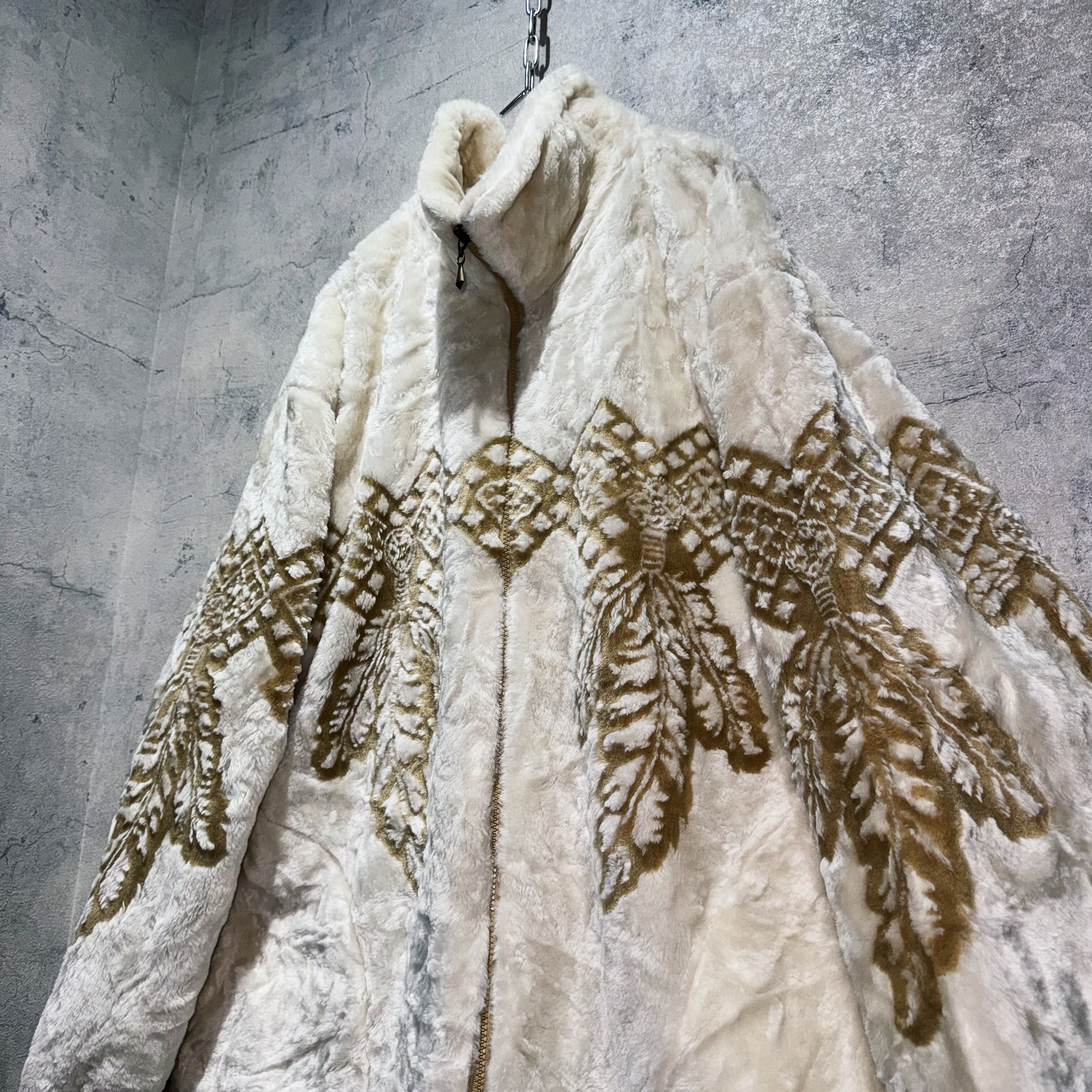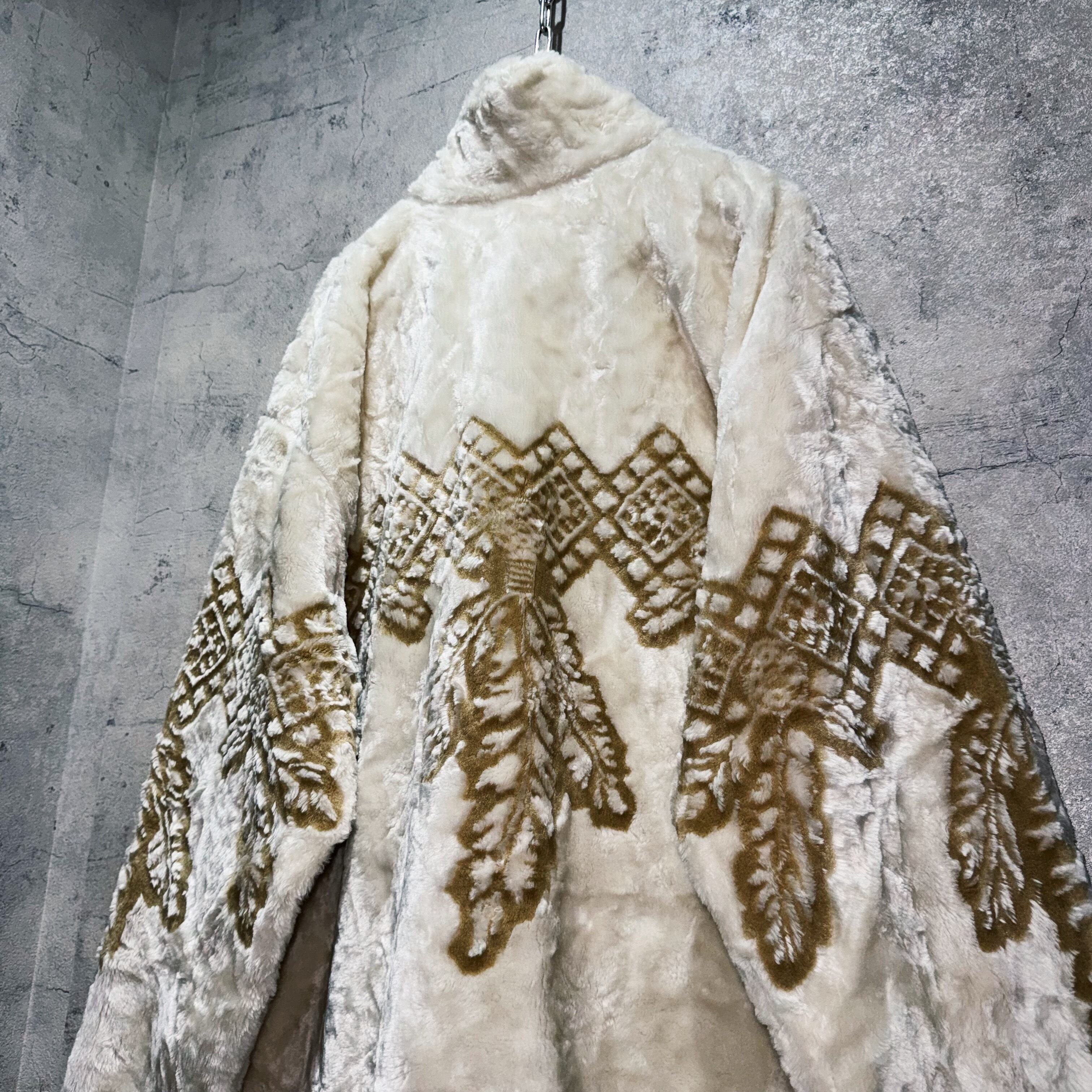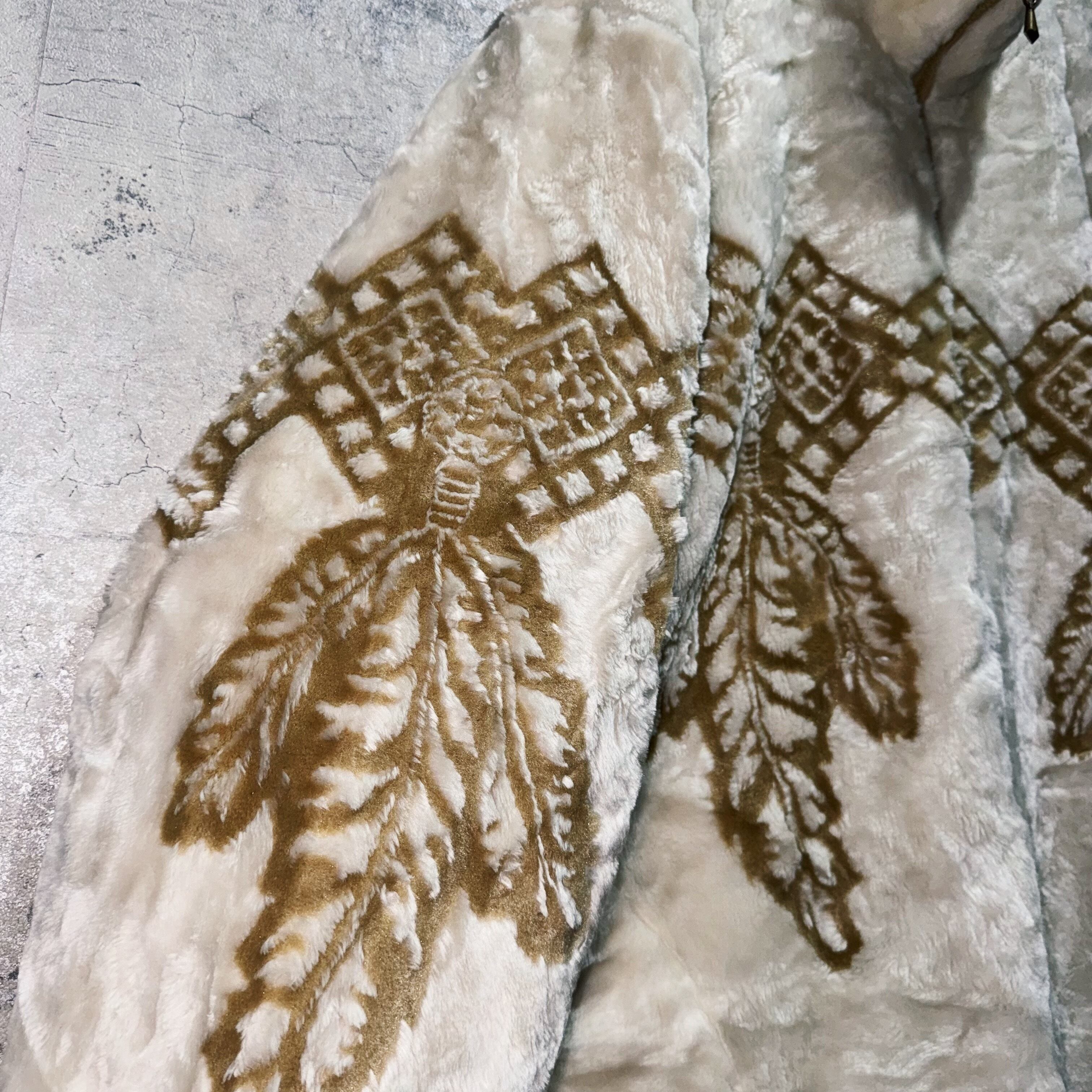 ふわっふわで一度触れればヤミツキになってしまう毛足のボディに、フロントから袖周り、背面にかけてエスニック柄を施したファーフリースジャケット。
