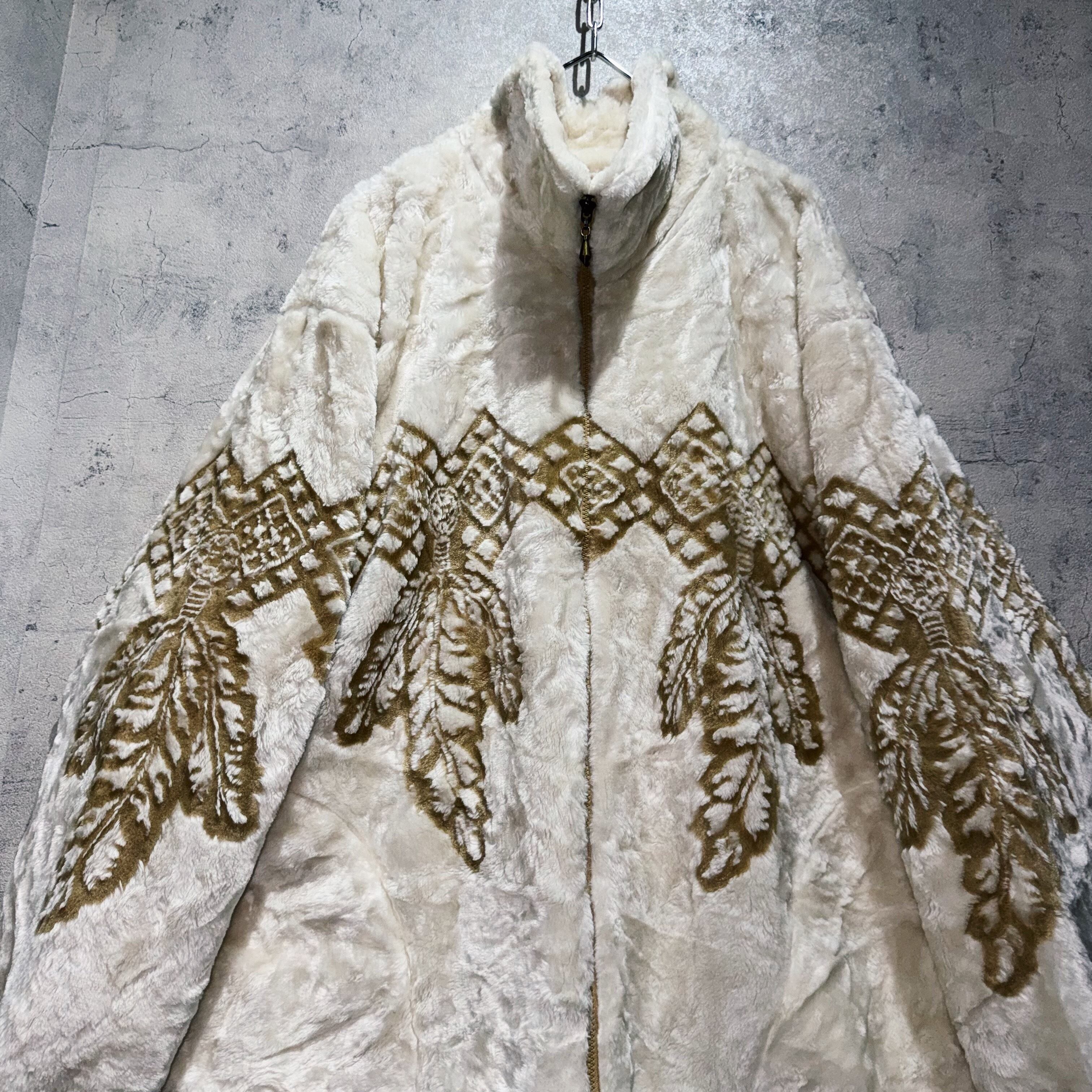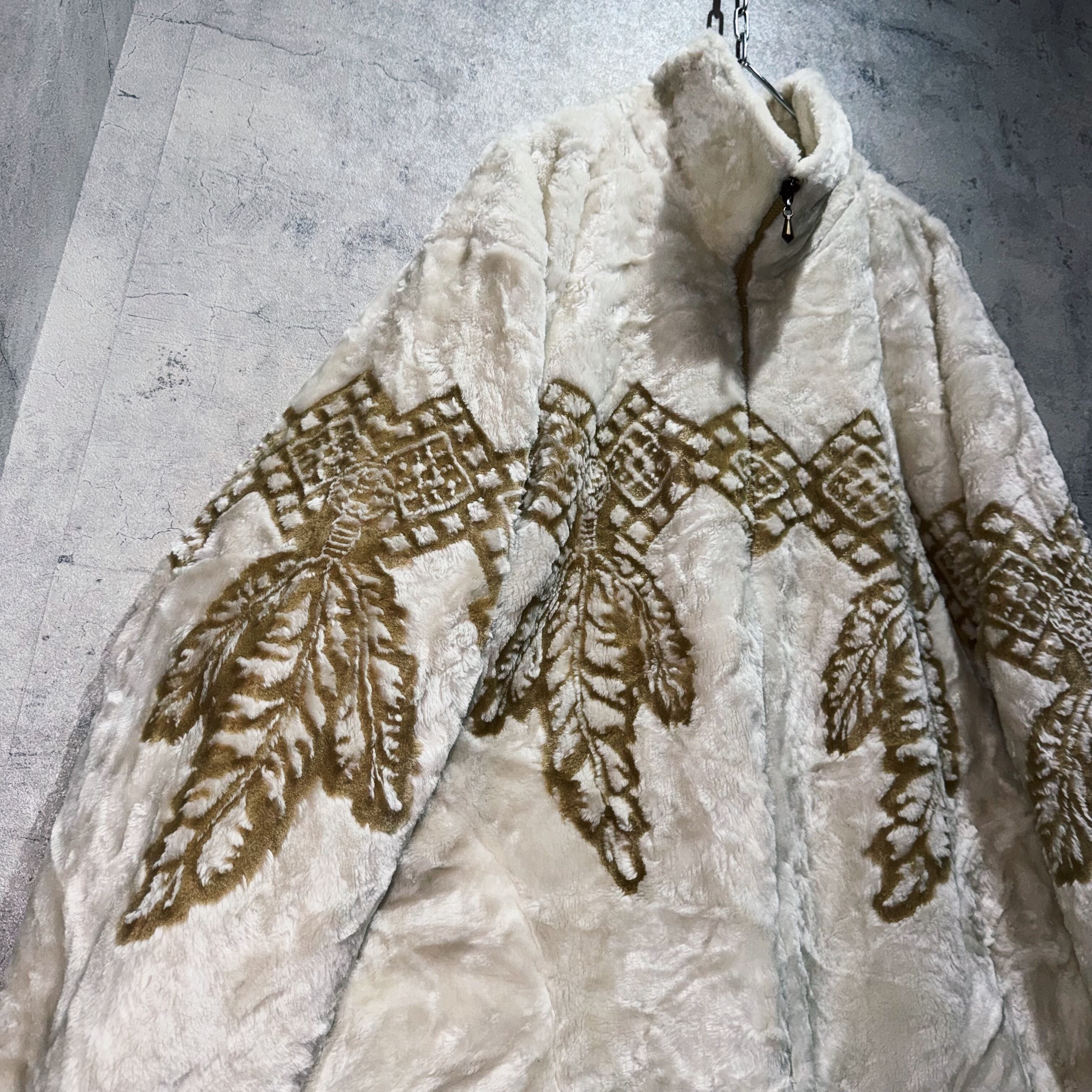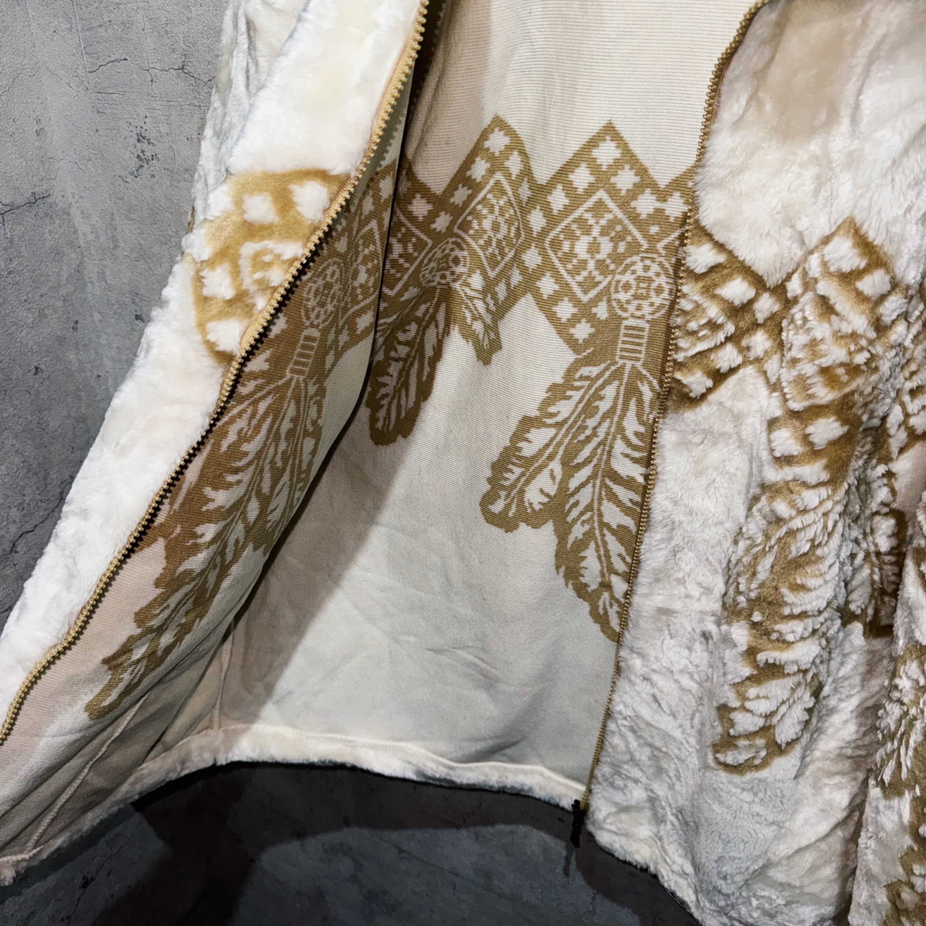 90’s vintage ethnic pattern design Fur fleece jacket
