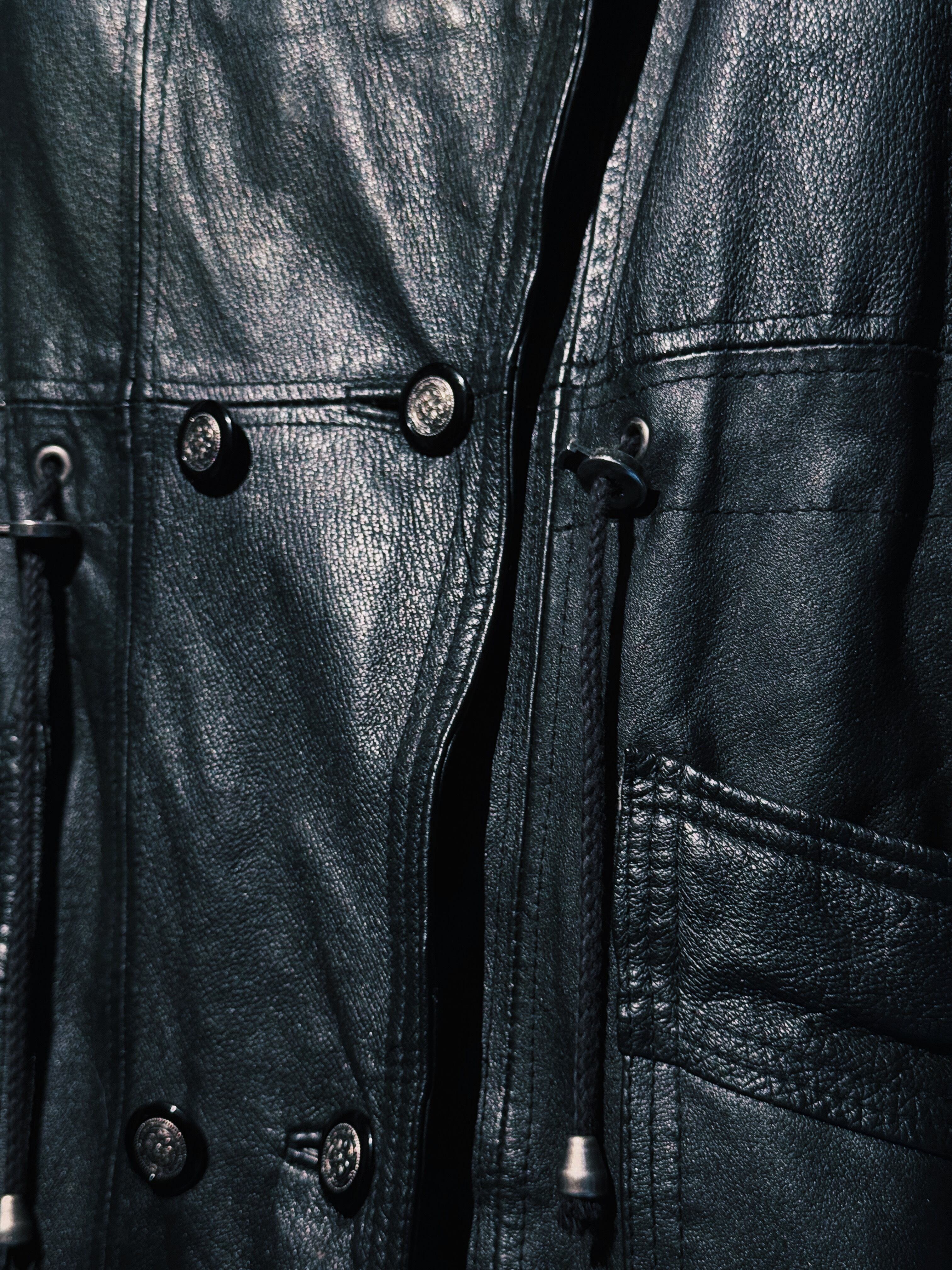 スペシャルヴィンテージビッグフーディーデザインダブルブレストレザーロングコート