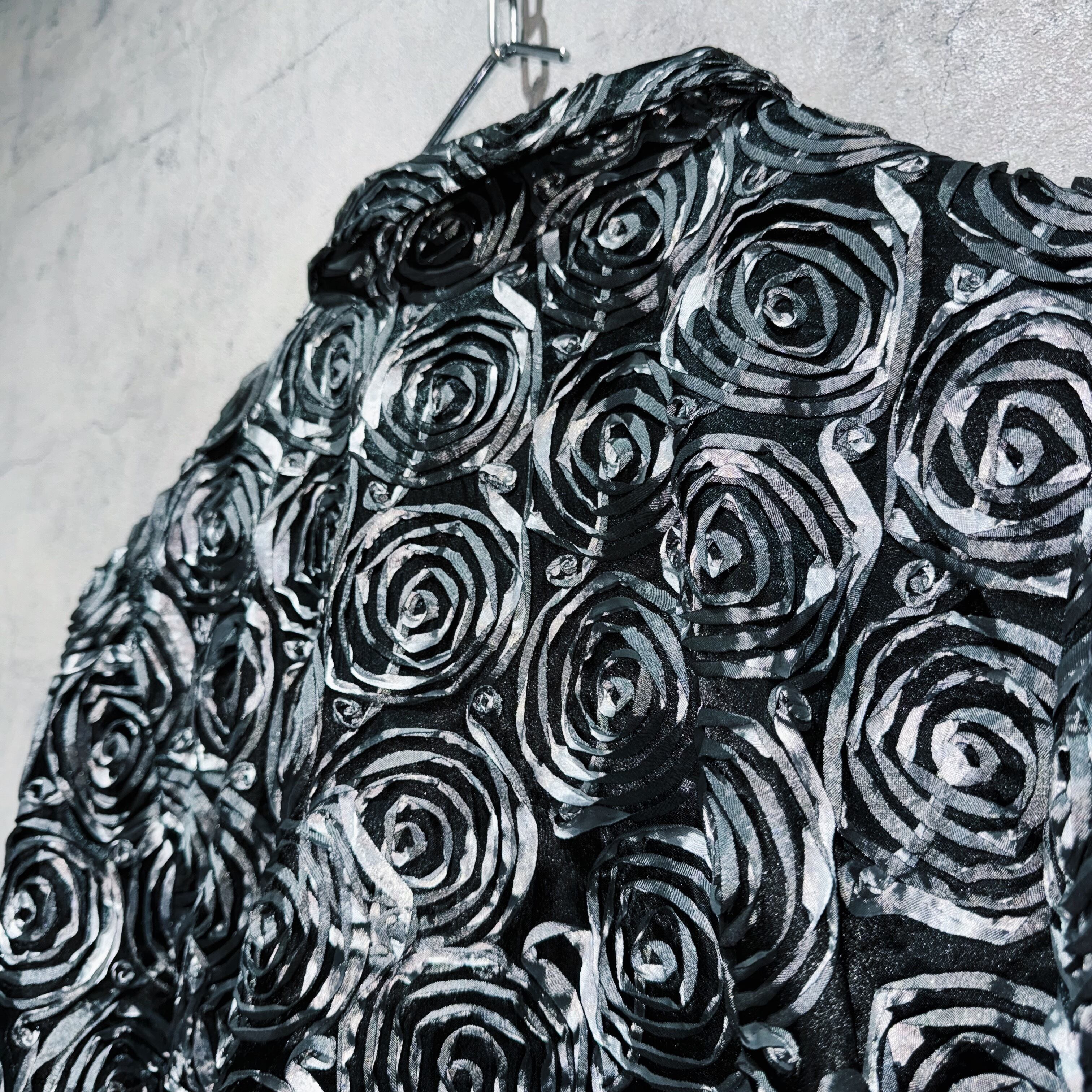 煌びやかでラグジュアリーな雰囲気を醸し出す螺旋状の柄デザインをボディ全体にあしらったデザインジャケット。写真からでもヒシヒシと伝わってくる光沢感からは圧巻の佇まい…