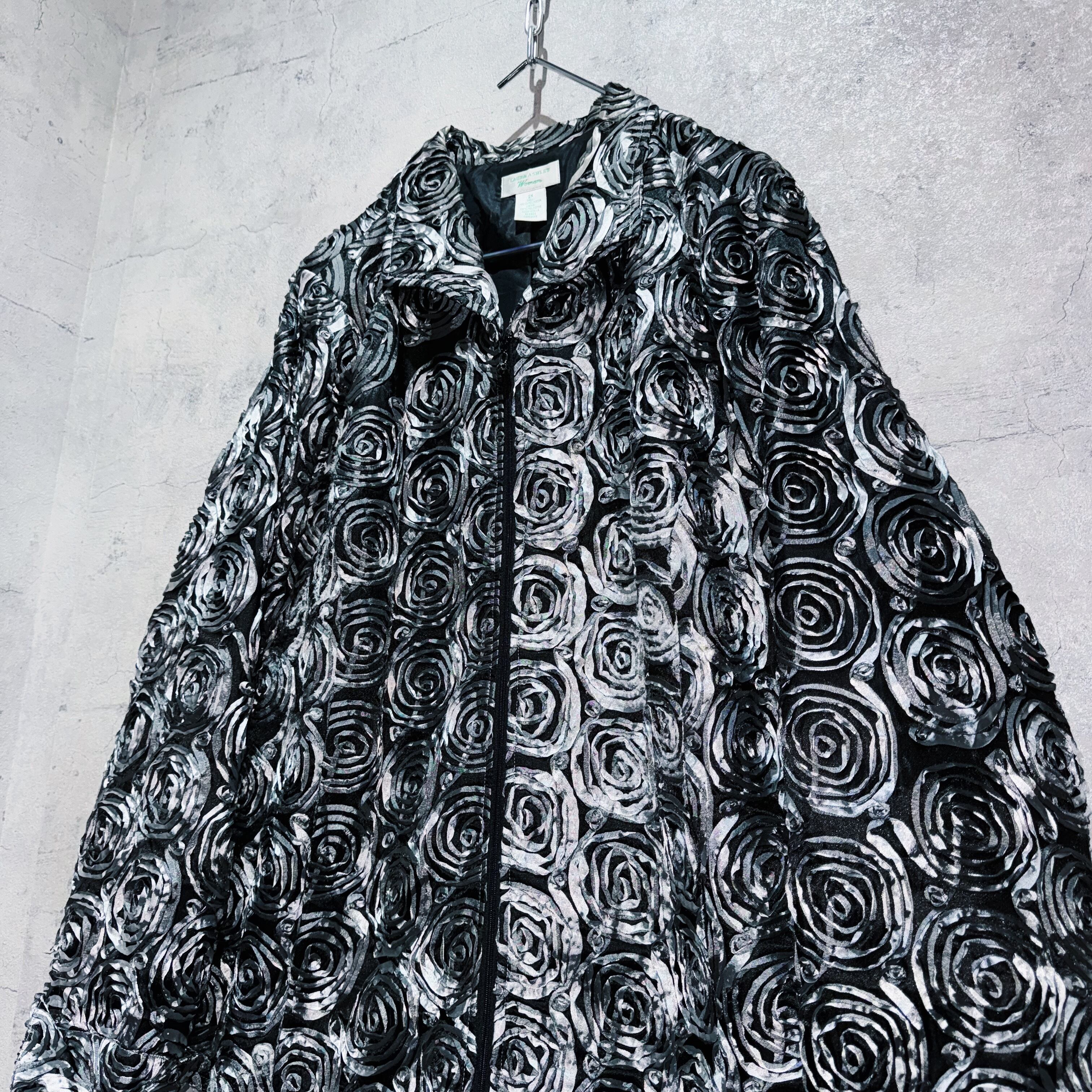 "デッドストック"シルバー3Dパターンデザインジップアップジャケット