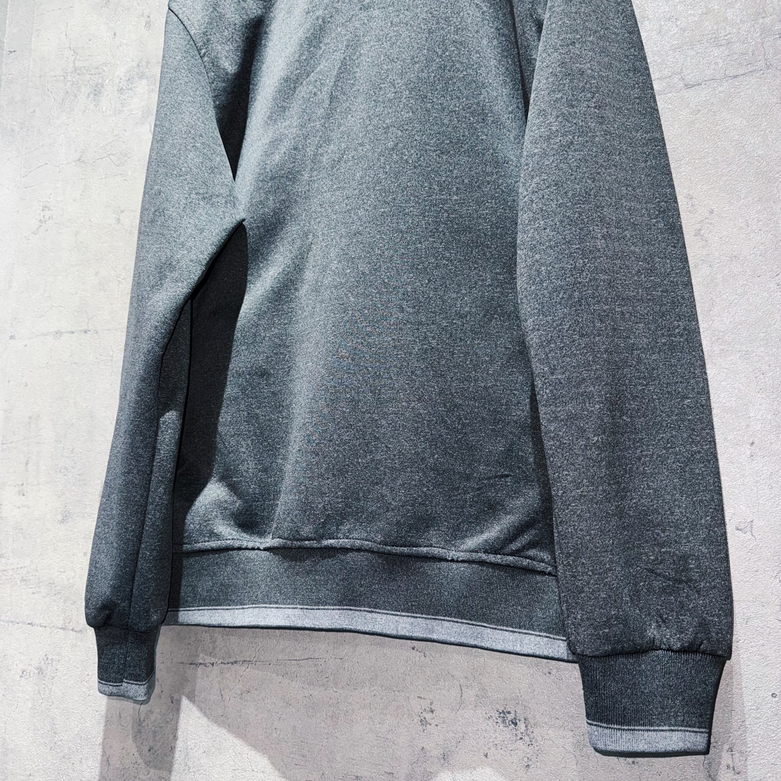 スウェットのような生地感かつ少し光沢感のあるグレーで仕上げた品格のあるトラックジャケット。