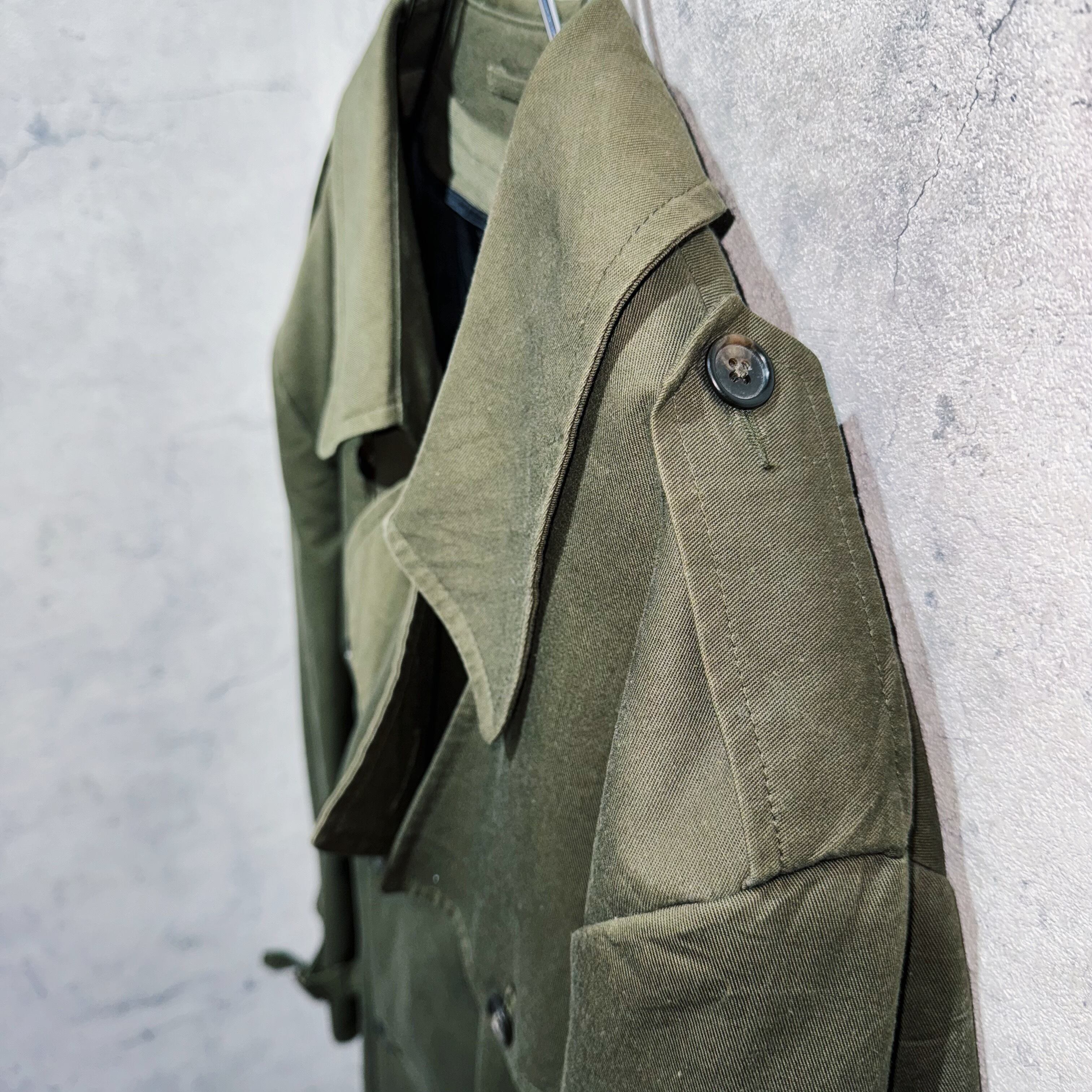 今回は欠損無しの完品でご用意。古着市場で状態も良好で完品のものは近年かなり見かけなくなってきましたね… しかもオリーブグリーンと間違いなく稀有なトレンチコート。ライナーを取り外せば春先まで長く愛用できますね。