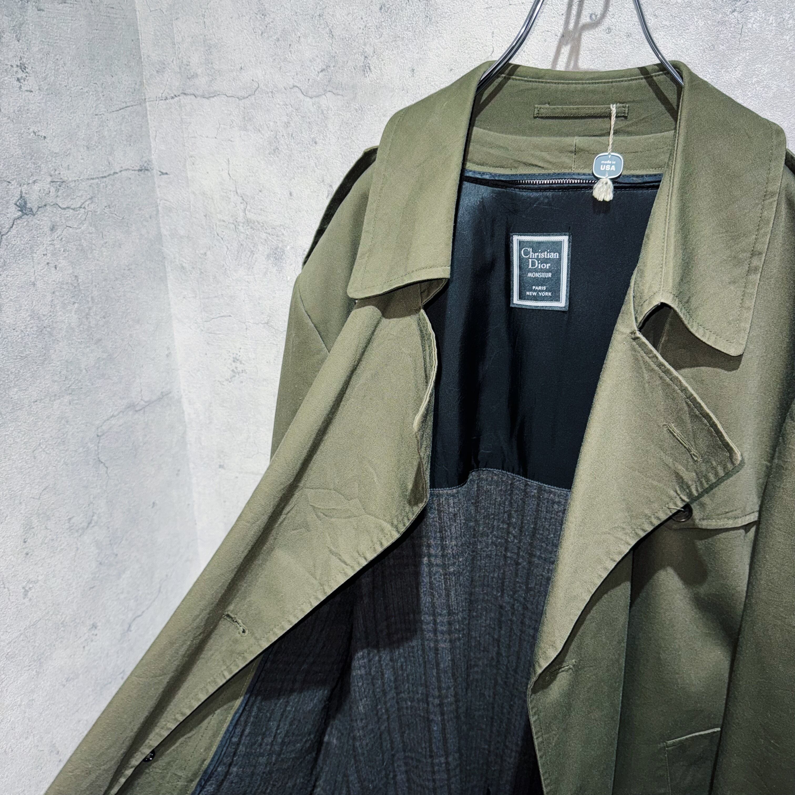"クリスチャンディオール"オリーブグリーンダブルブレストスペシャルトレンチコート