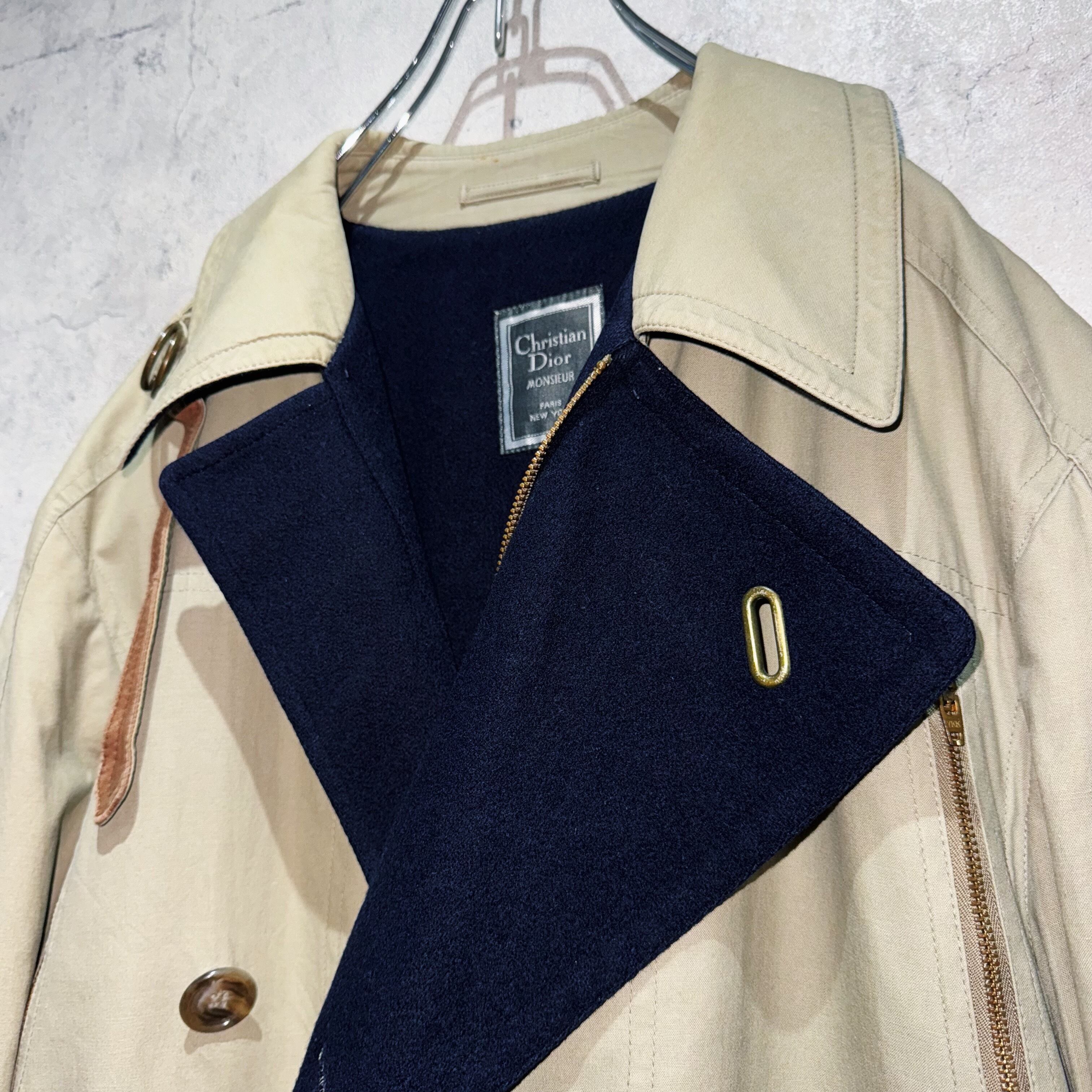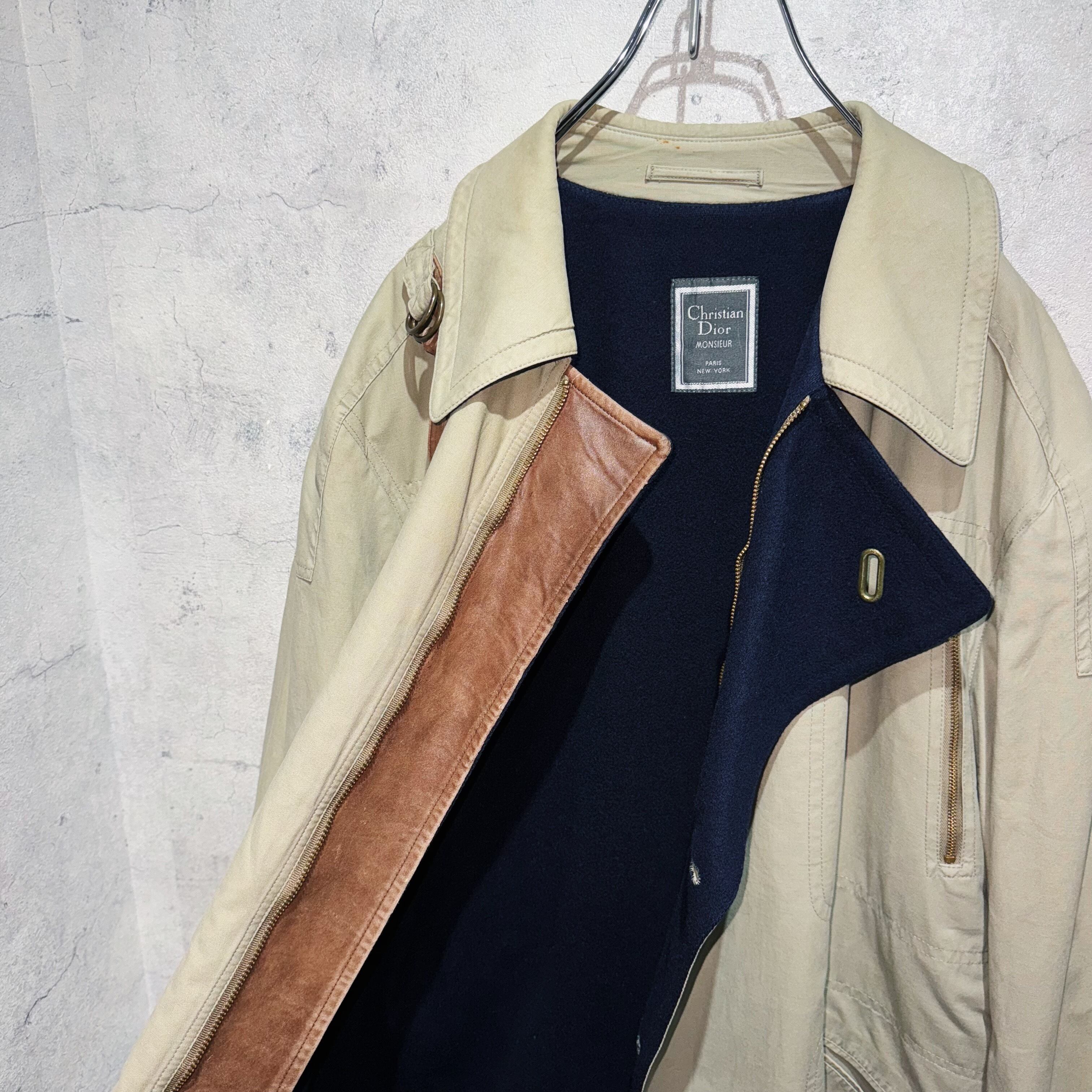 スペシャル”クリスチャンディオール”レザースイッチングギャバジンロングトレンチコート