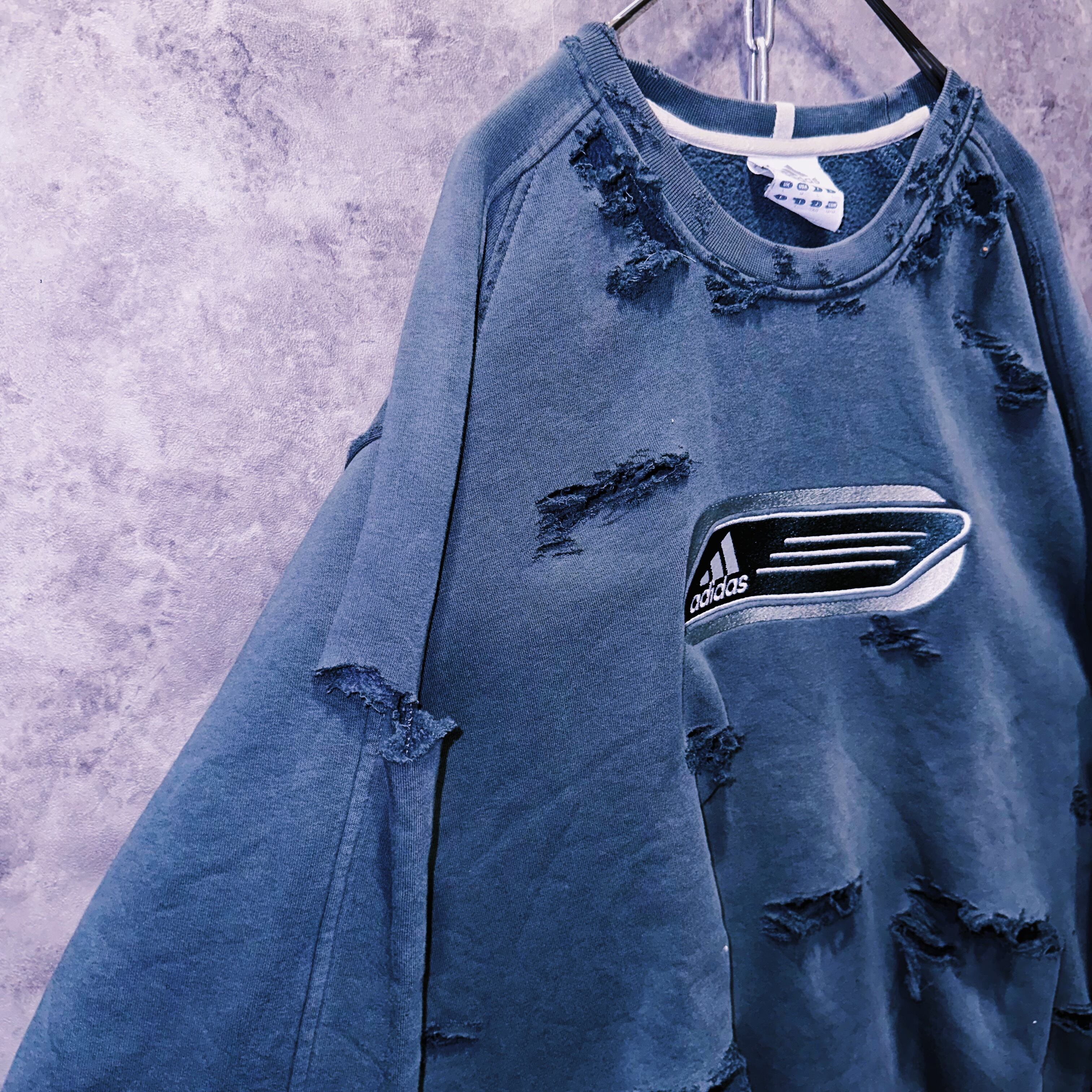 ヴィンテージ"adidas"ロゴエンブロイダリーボロカスタムデザインスウェットプルオーバー