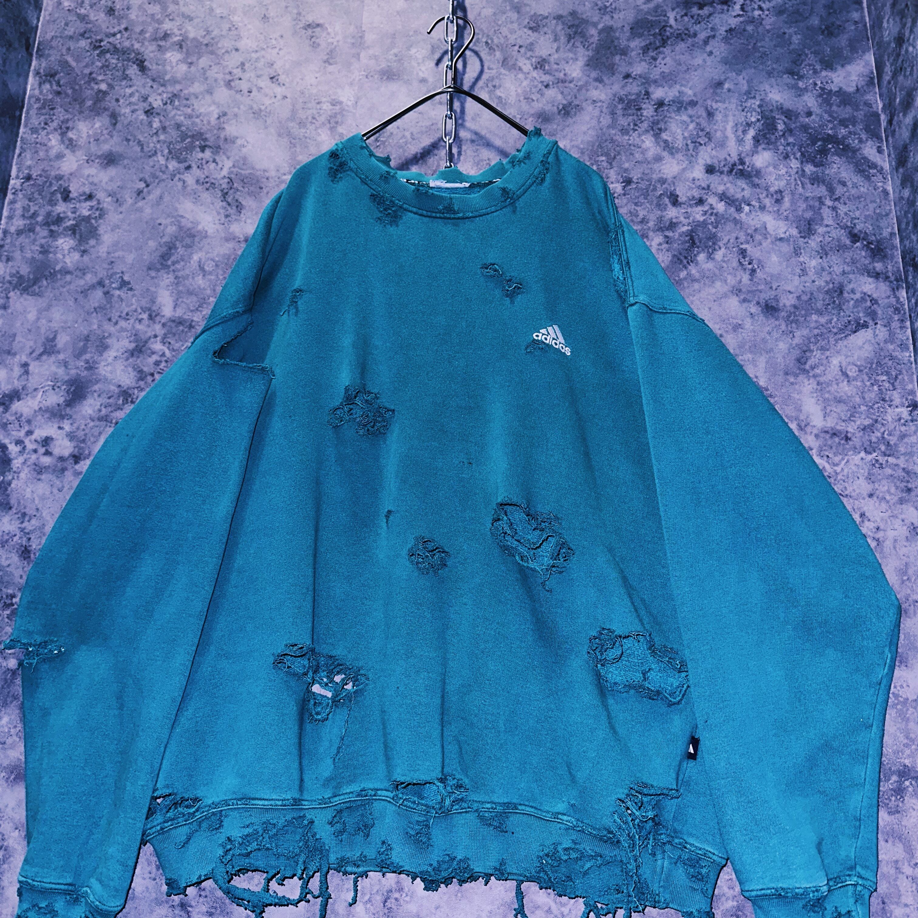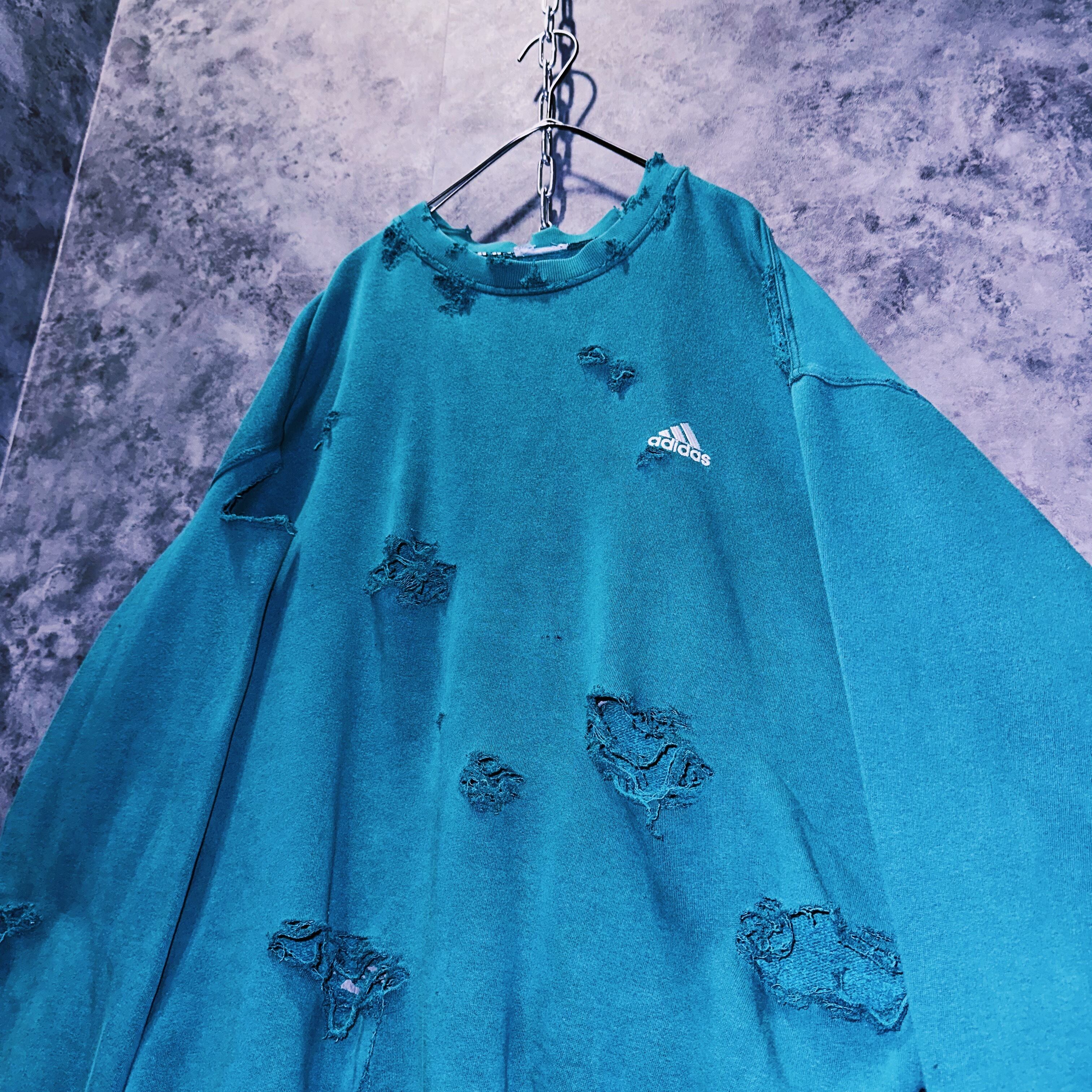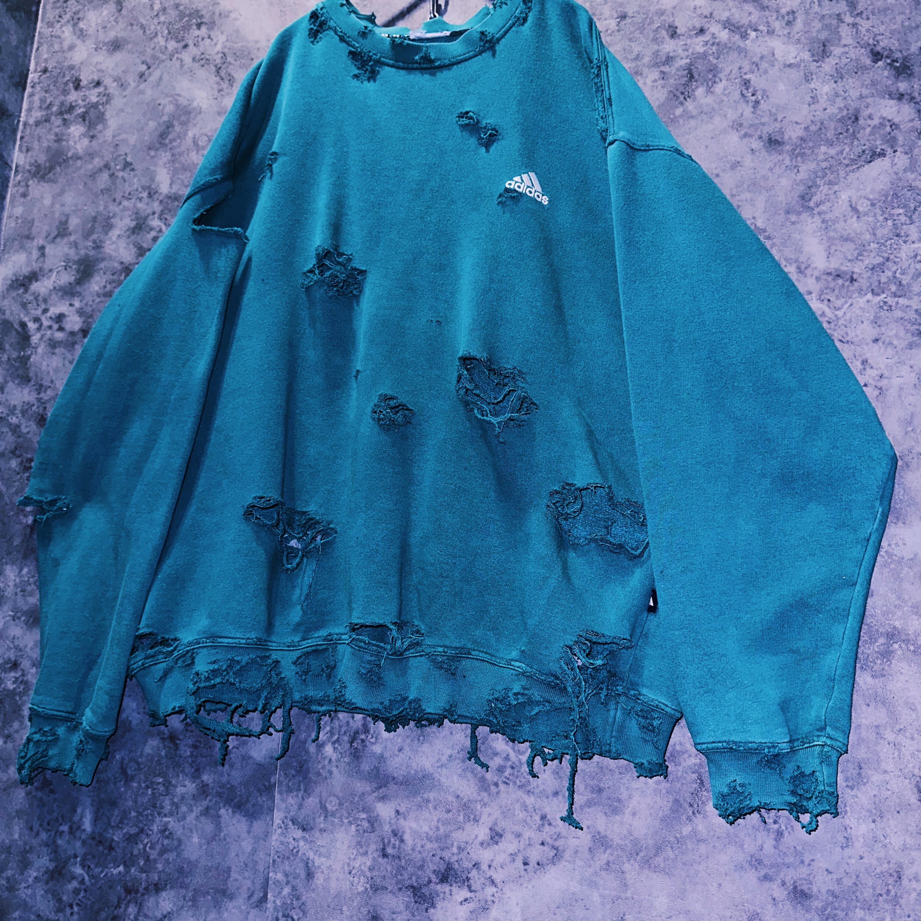 ヴィンテージ"adidas"パフォーマンスロゴボロカスタムデザインスウェットプルオーバー