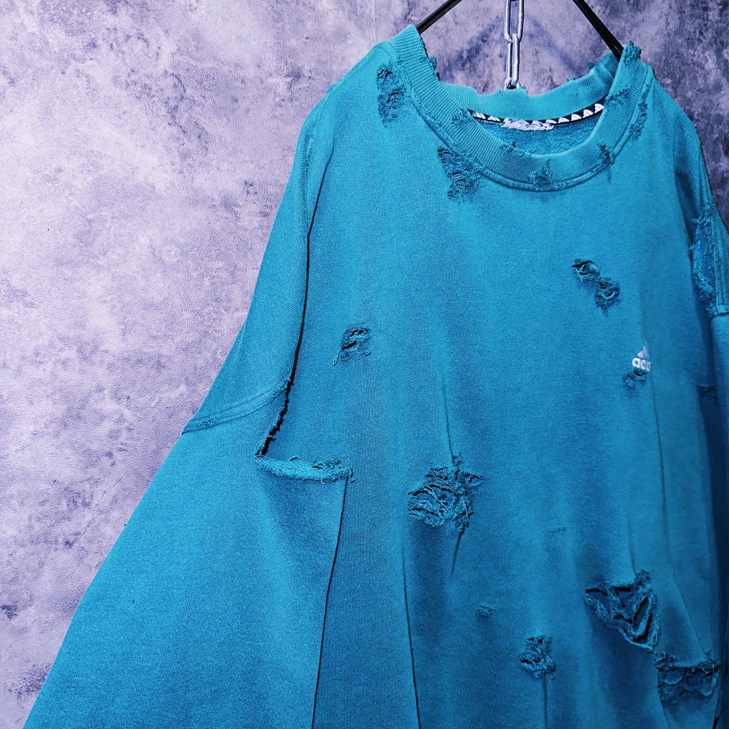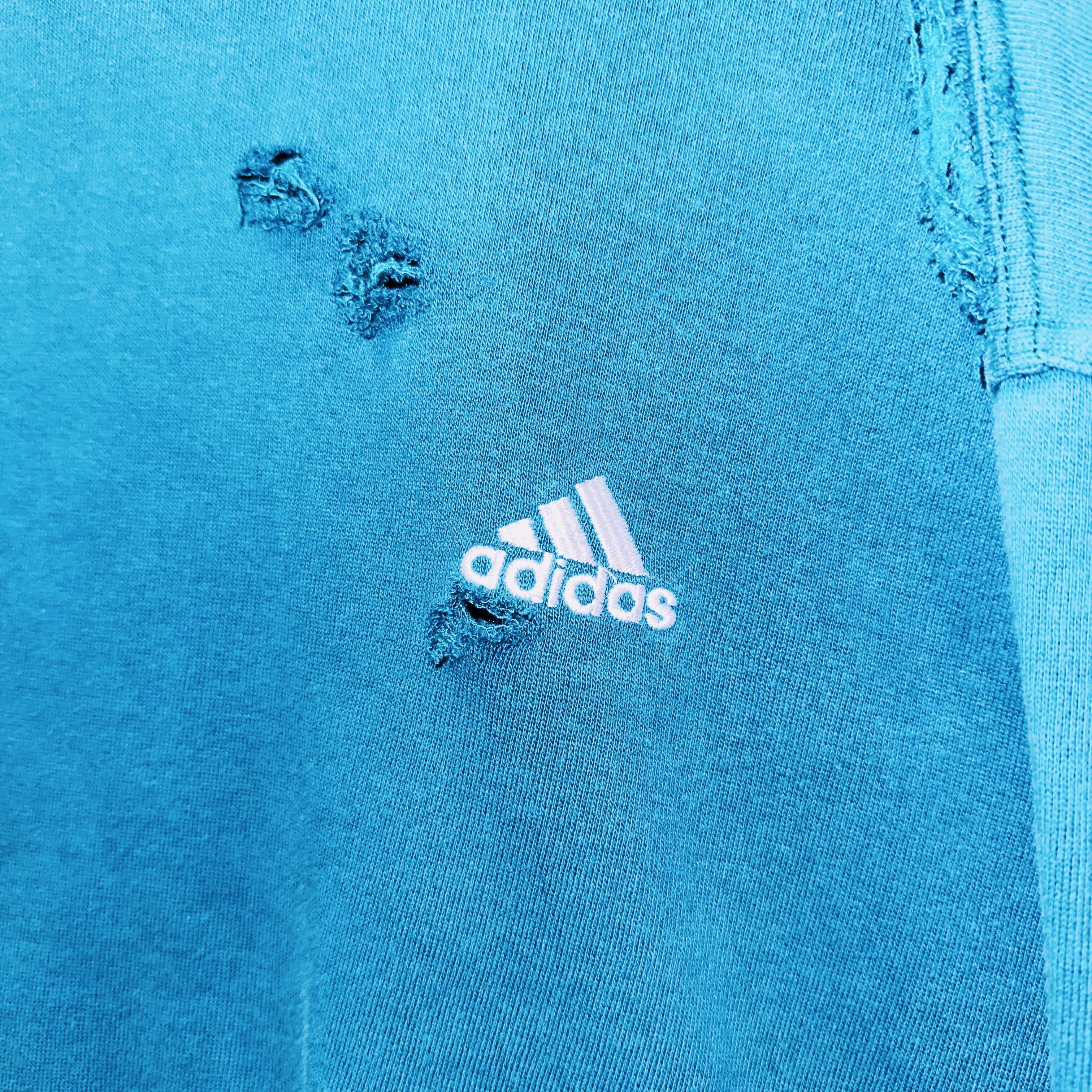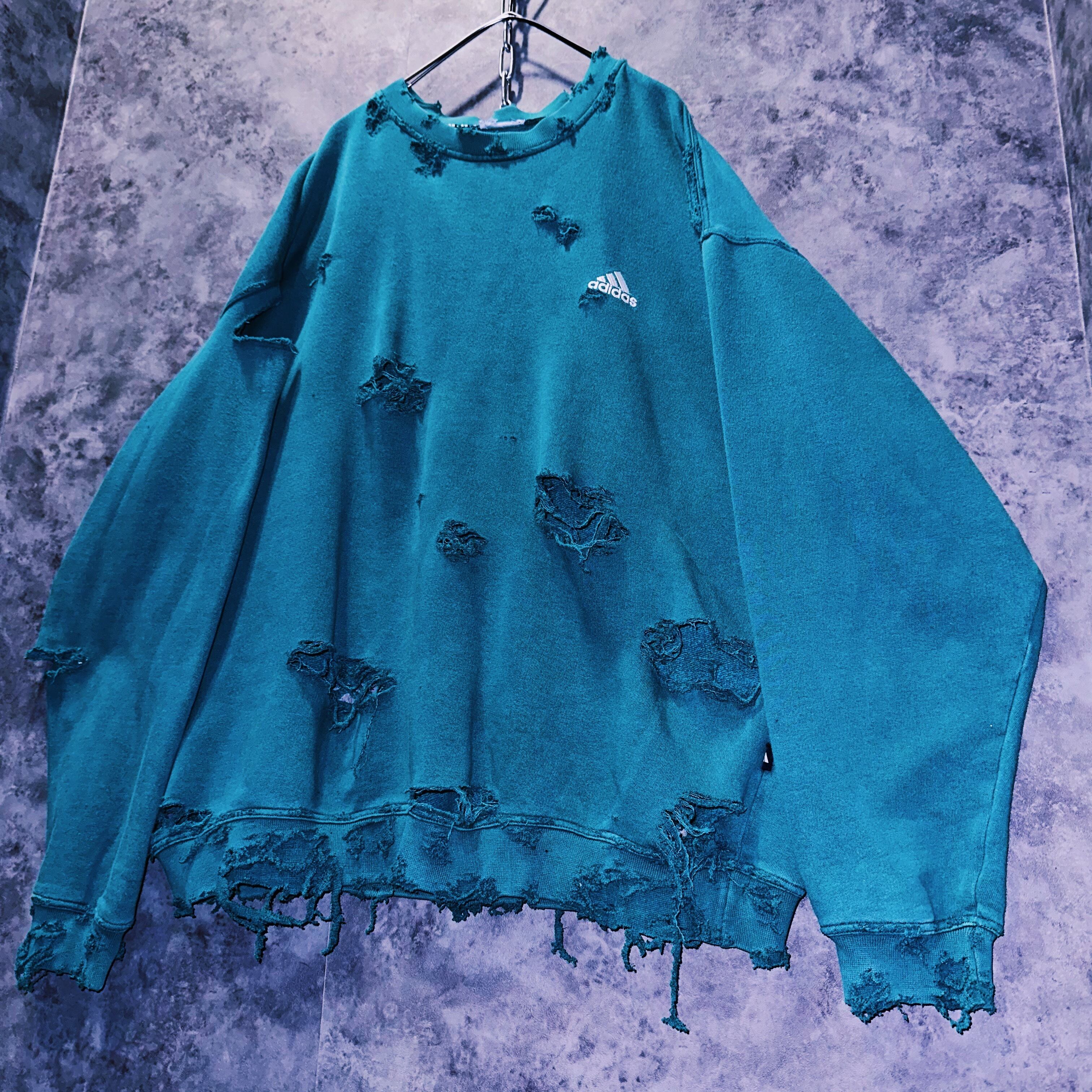 ヴィンテージ"adidas"パフォーマンスロゴボロカスタムデザインスウェットプルオーバー