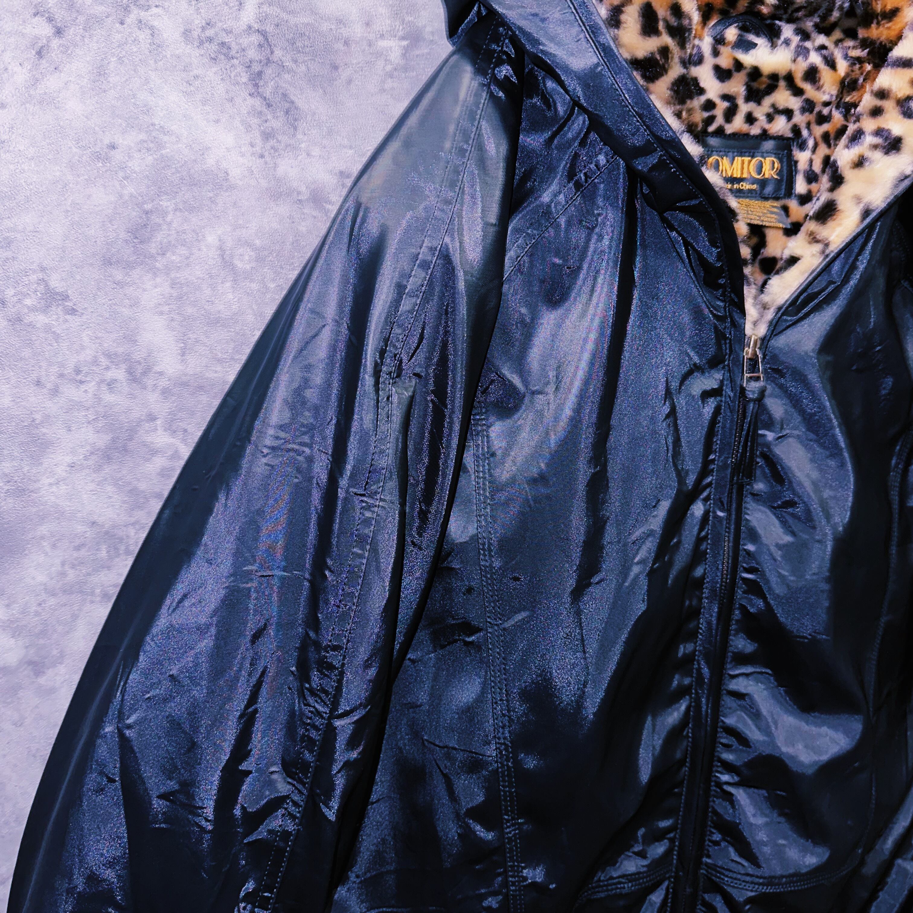90'sヴィンテージレオパードファーデザインナイロンジップフーディージャケット