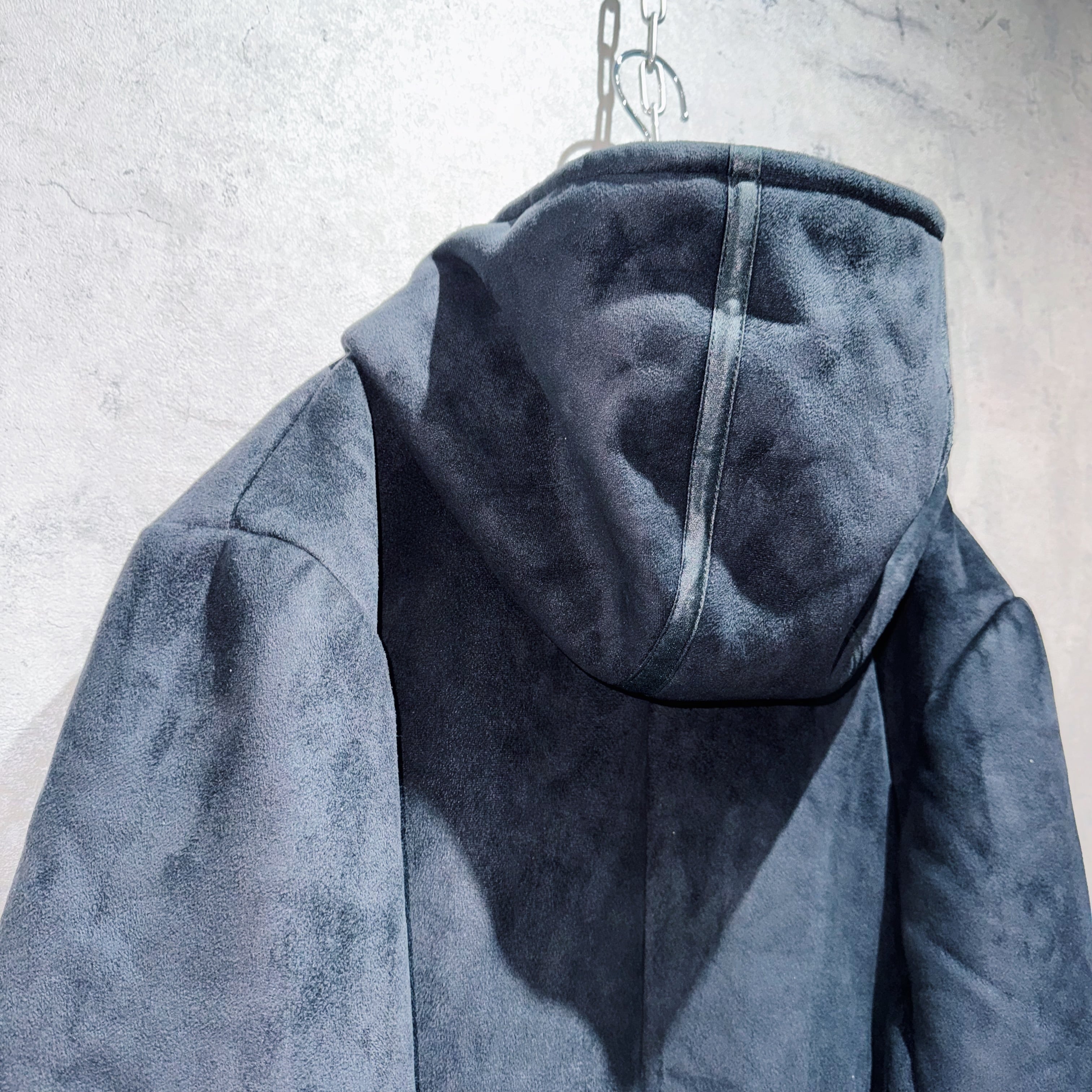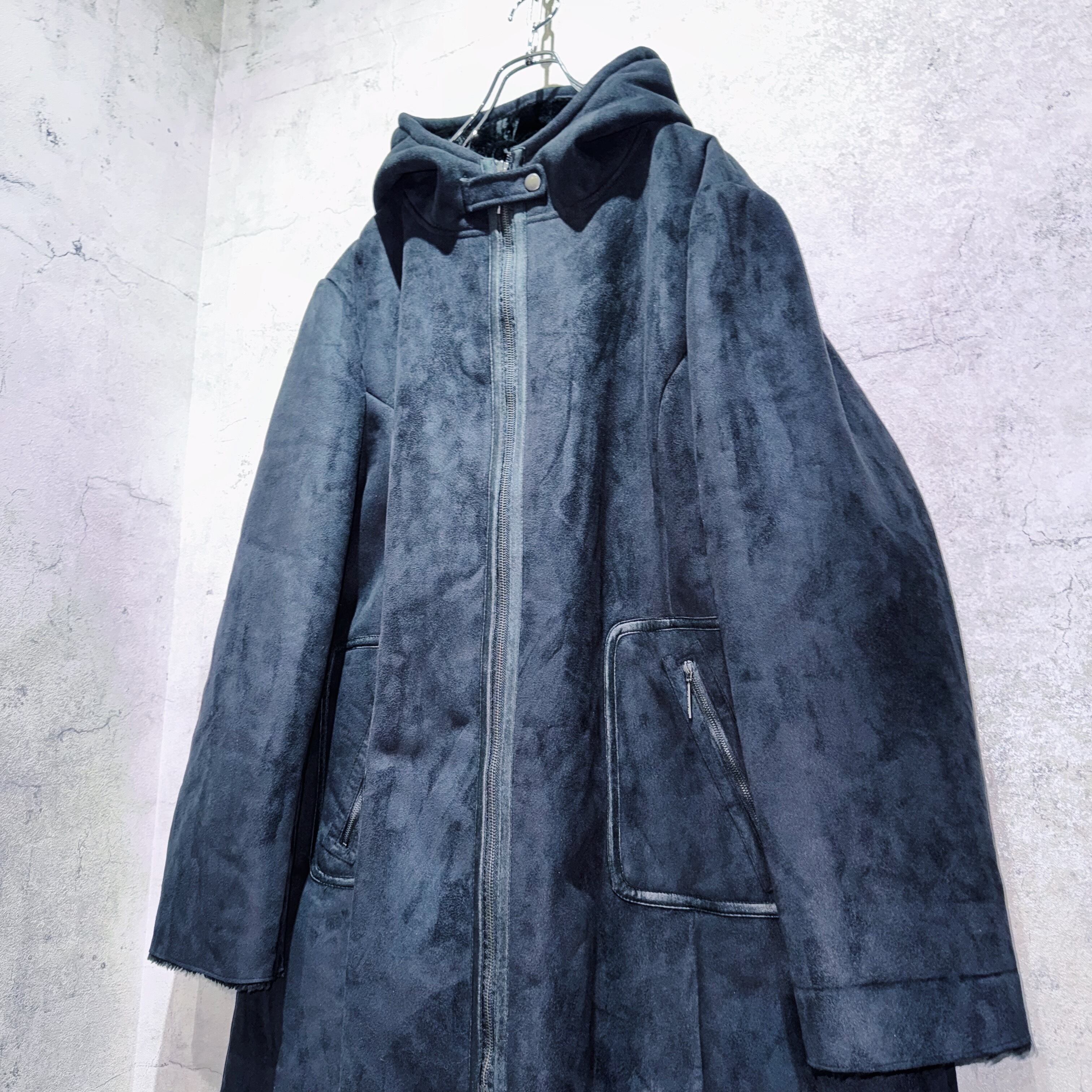 スペシャルフェイクムートンマテリアルダブルジップデザインフーディーコート