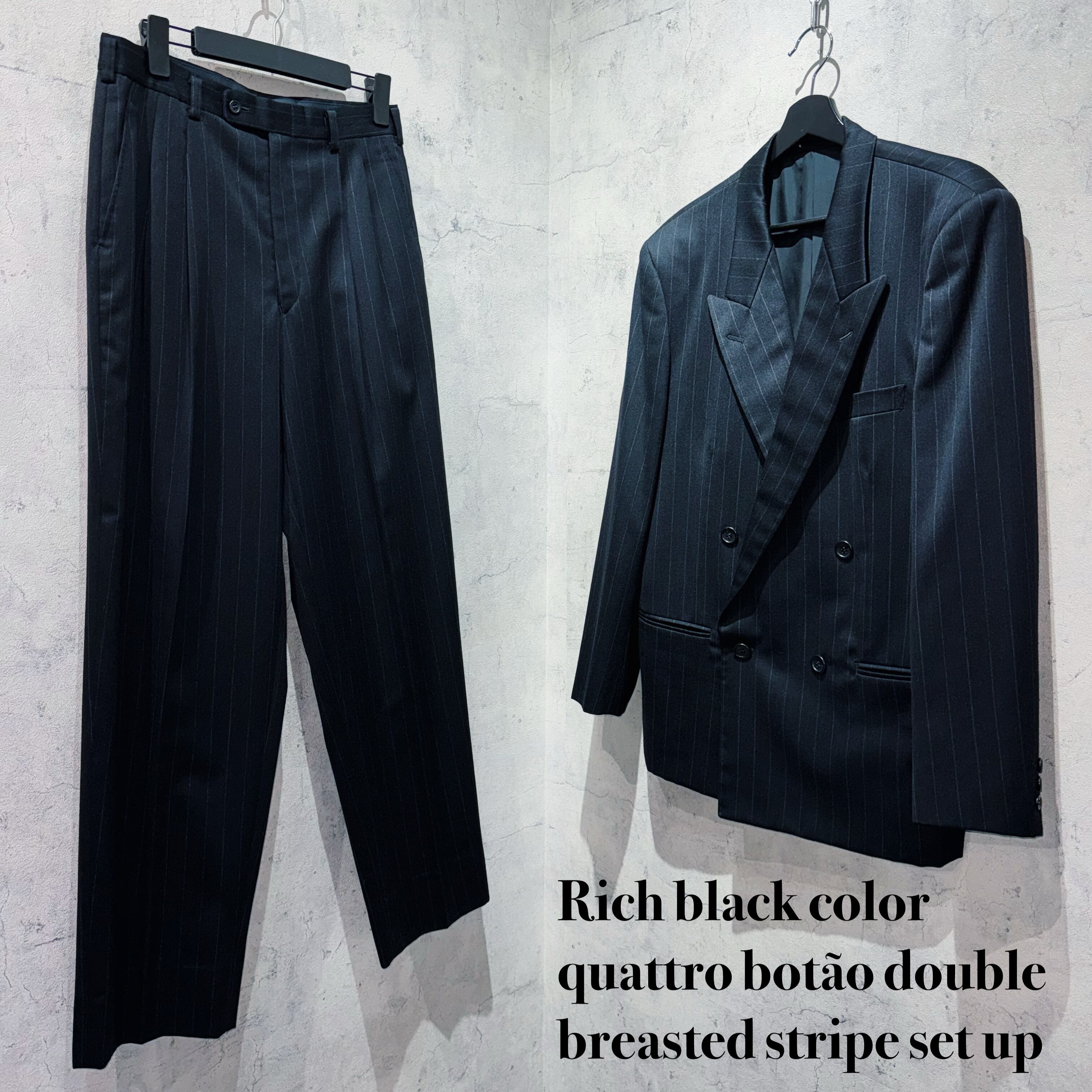 リッチブラックカラークアトロボタンダブルブレストストライプセットアップ