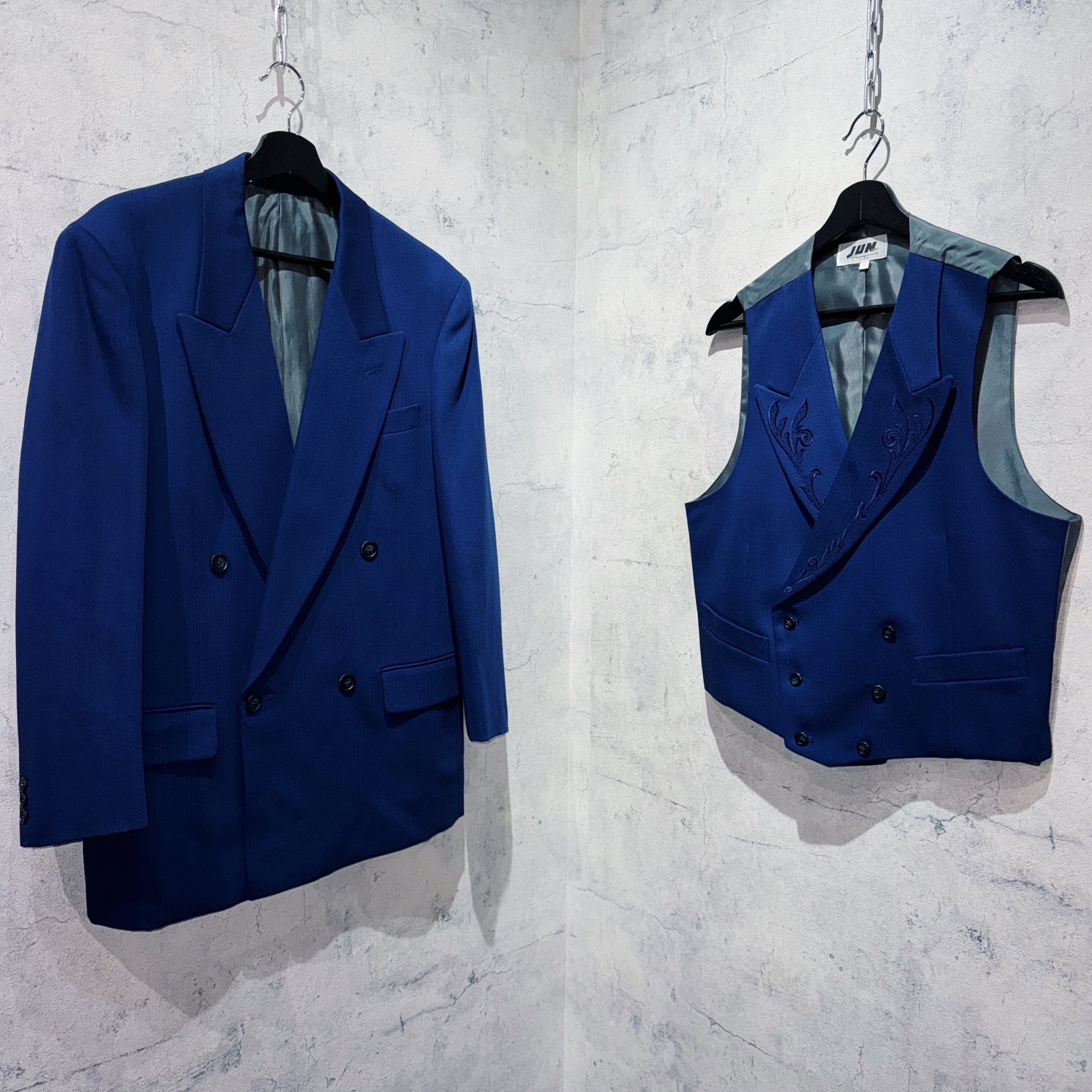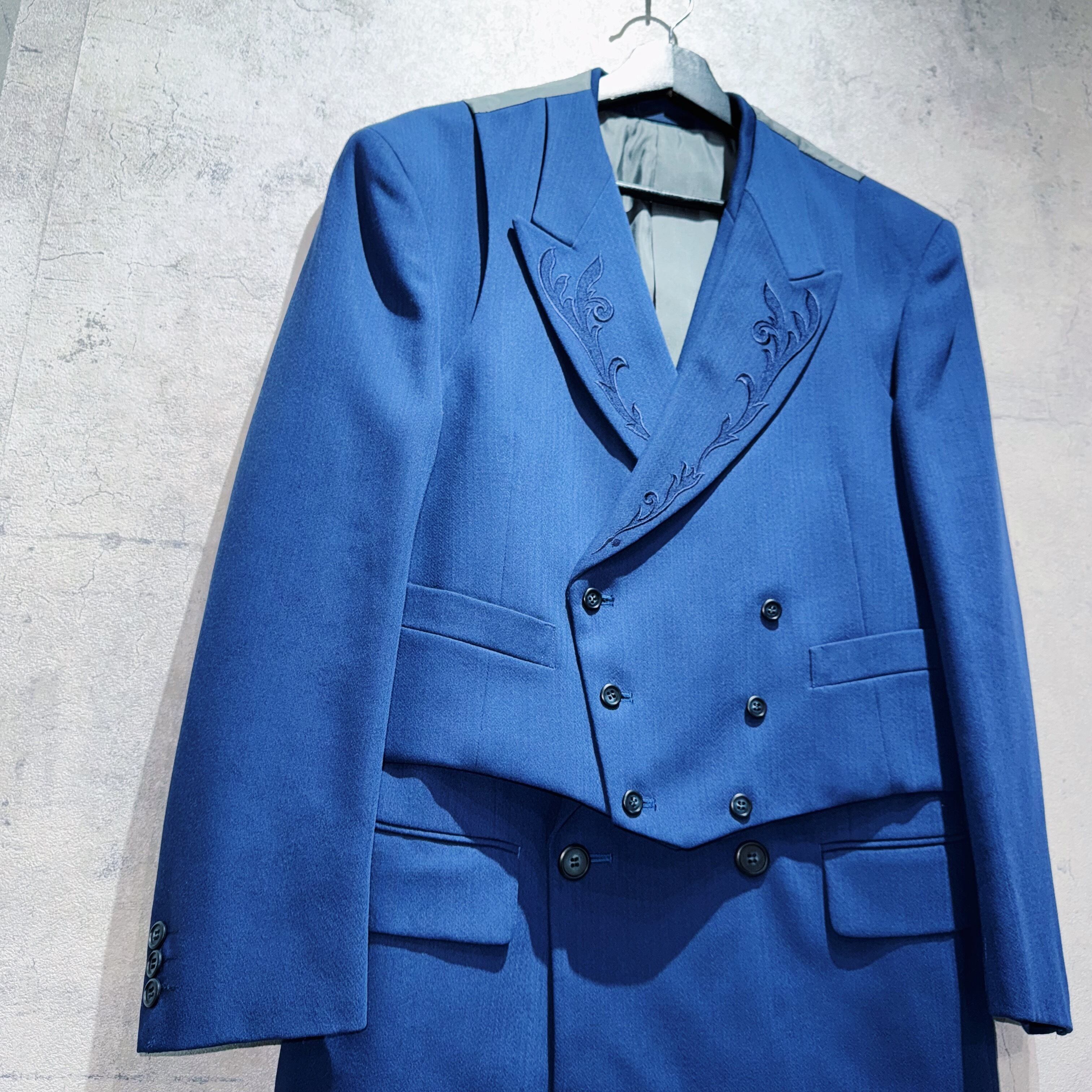 スペシャル90年代スリーピースロイヤルブルーカラーエンブロイダリーダブルブレストセットアップ