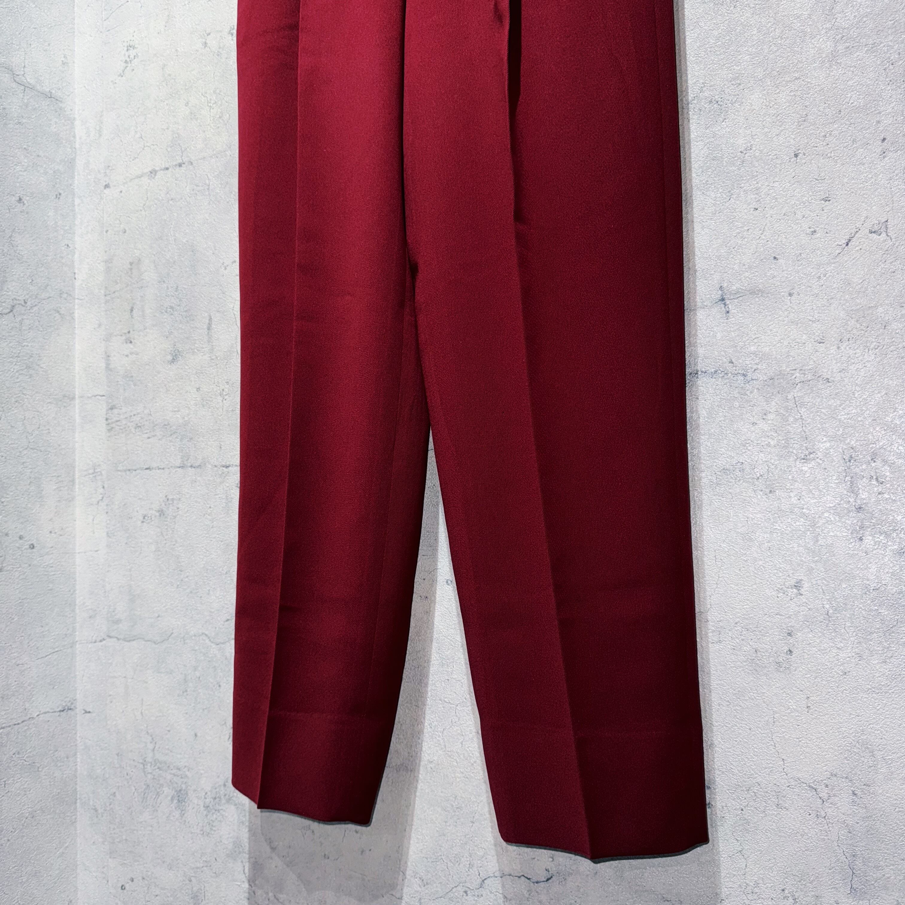 力強いクリムゾンレッドに身に纏い、程よく美しい光沢を放つ高品質のウールを採用した高級感のあるセットアップ。くどさがない赤系のセットアップは中々お目にかかれないかと…