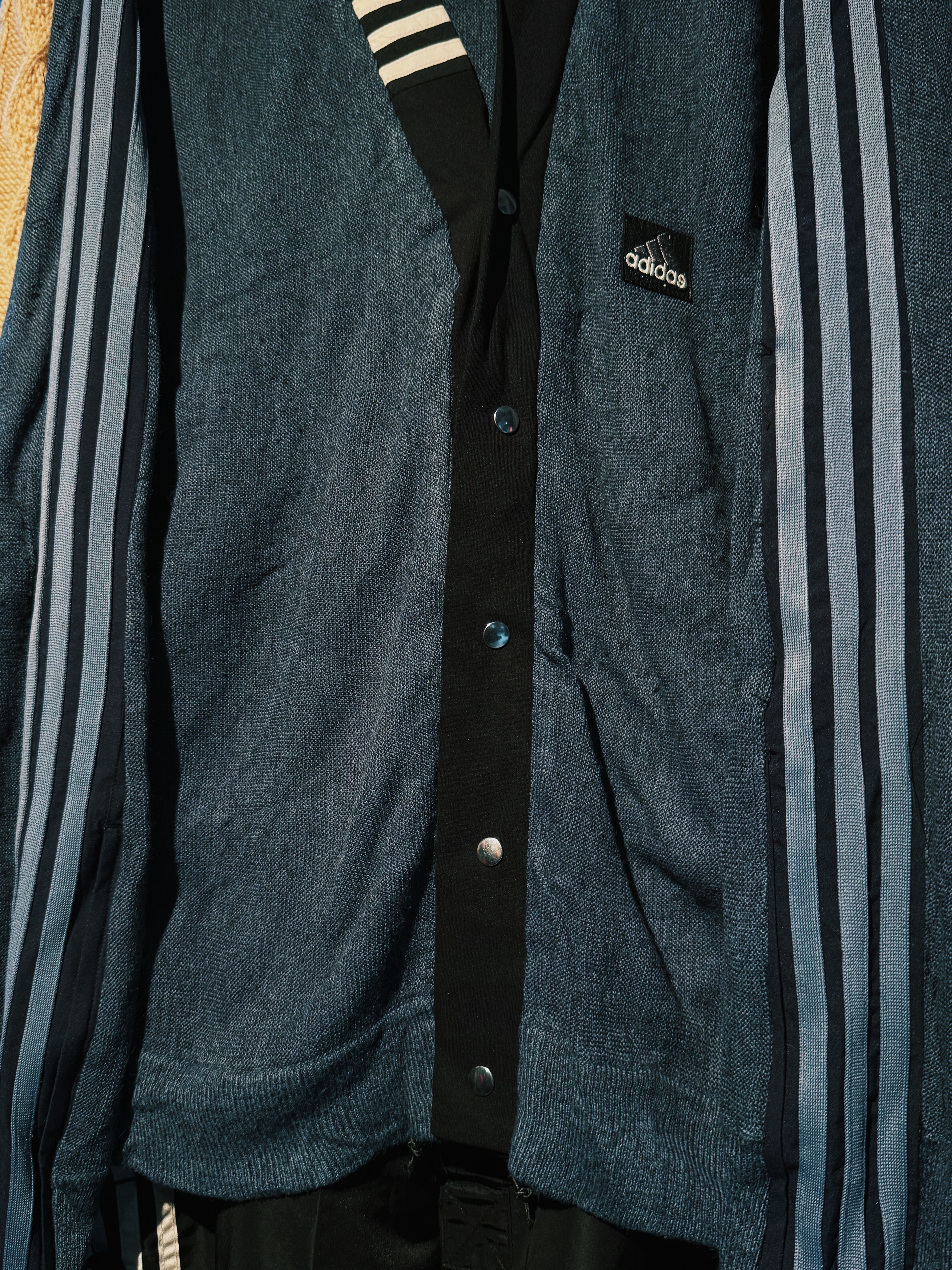 袖丈が長く程よい緩さを演出できるカーディガンにシティーポップでハイストリートな3stripesスウィッチングの上質なトラックテキスタイルを"融合"させてハイモード×ハイストリートなアイテムに。