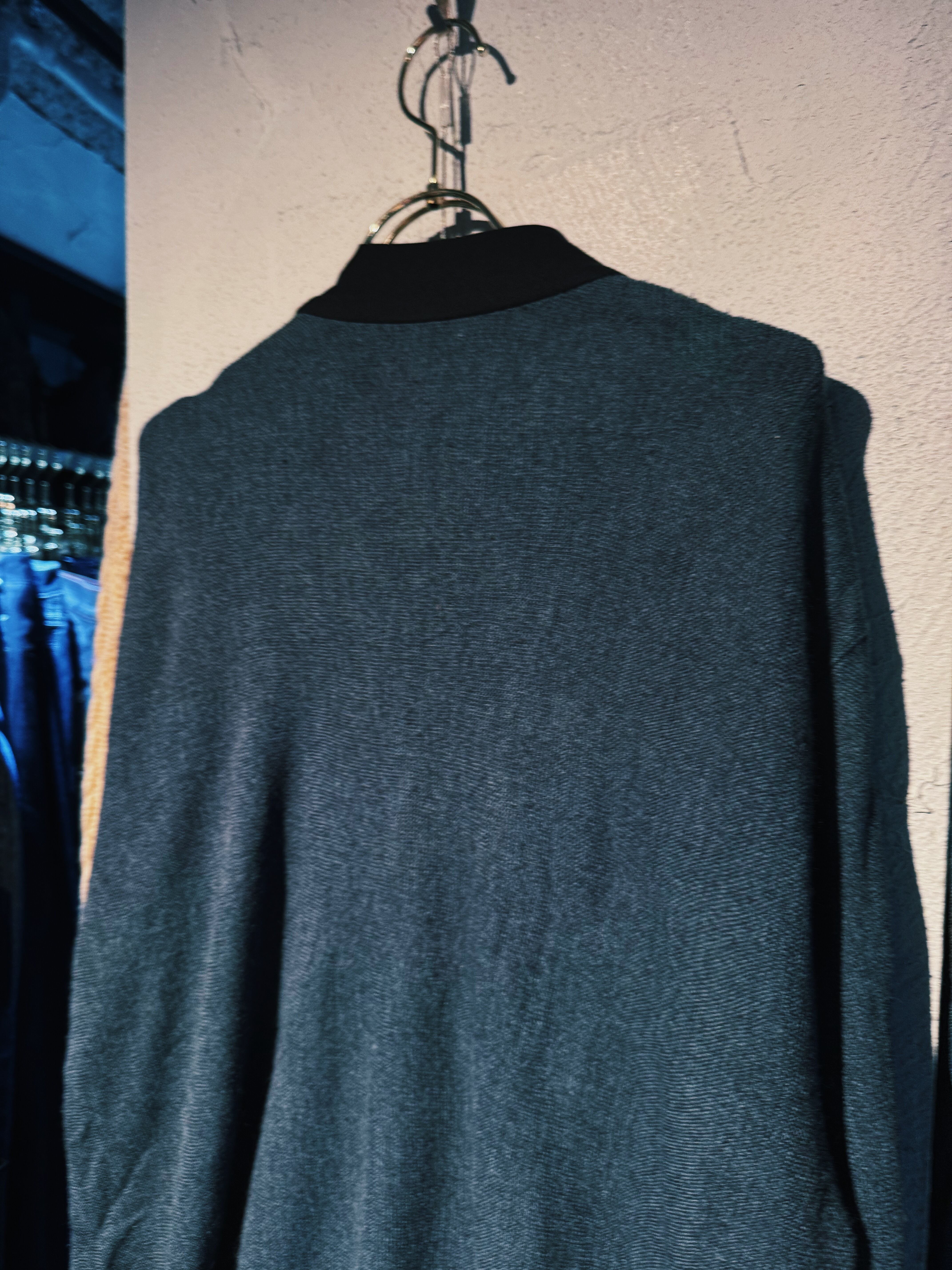 ヴィンテージのカーディガンがベースされており、程よい落ち感と肌触りから、雰囲気にモードストリートを組み合わせた1着。