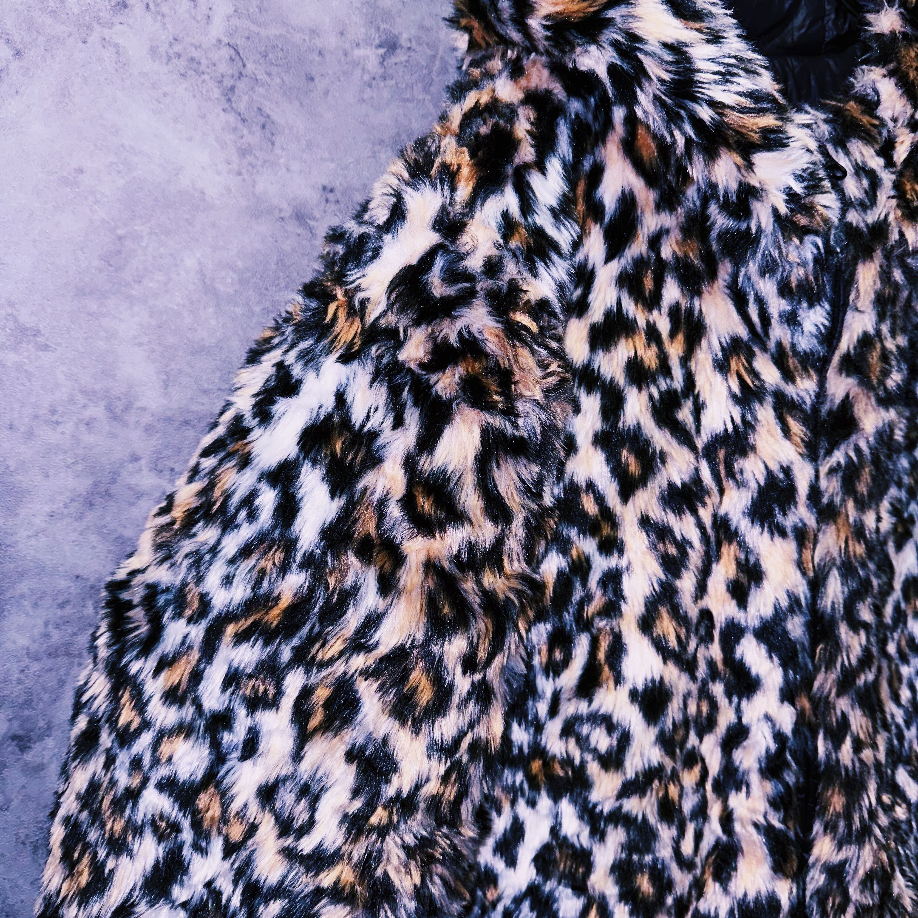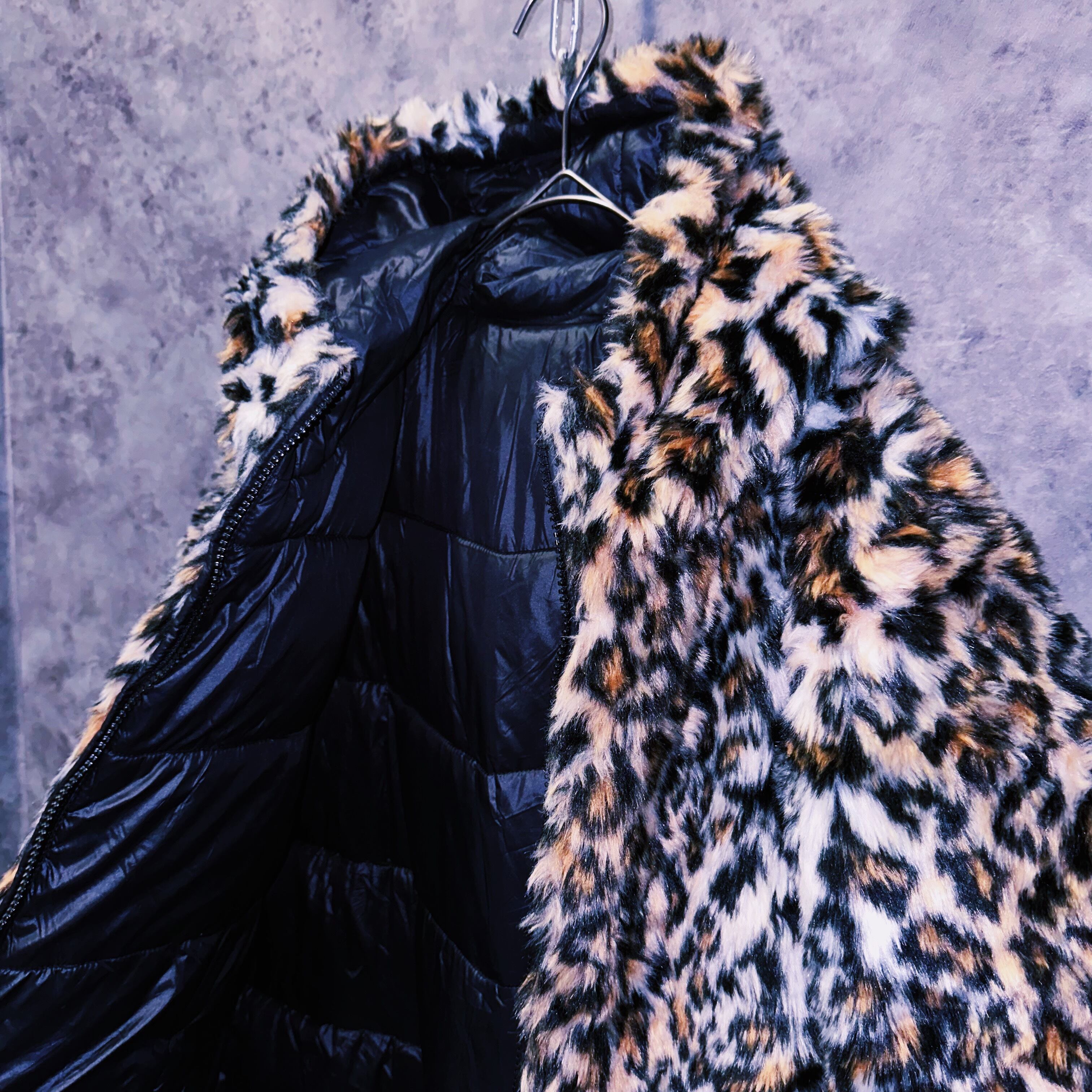 ヴィンテージレオパードパターンリバーシブルデザインフェイクファーダウンジャケット
