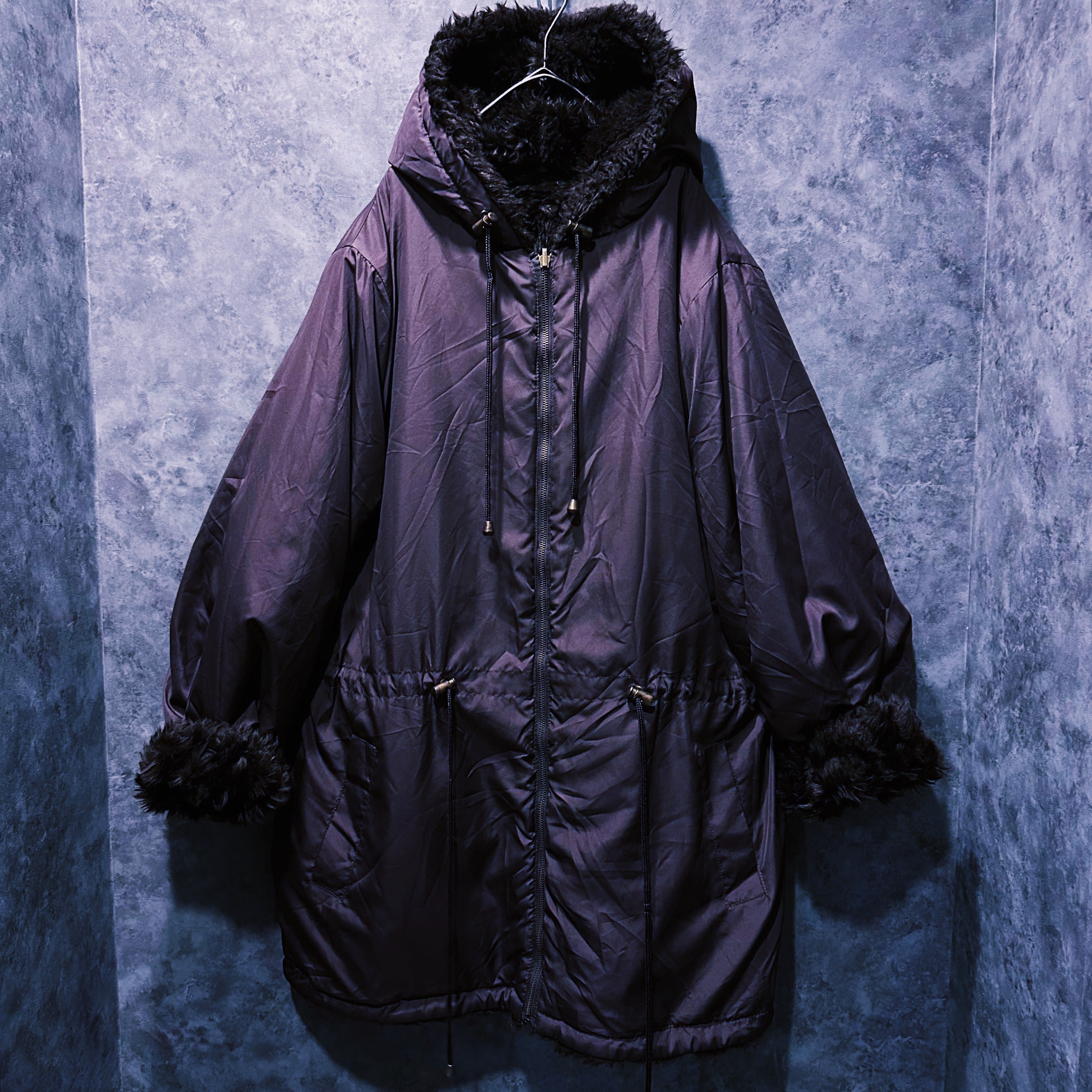 【doppio】vintage dark brown fake fur design reversible foodie jacket