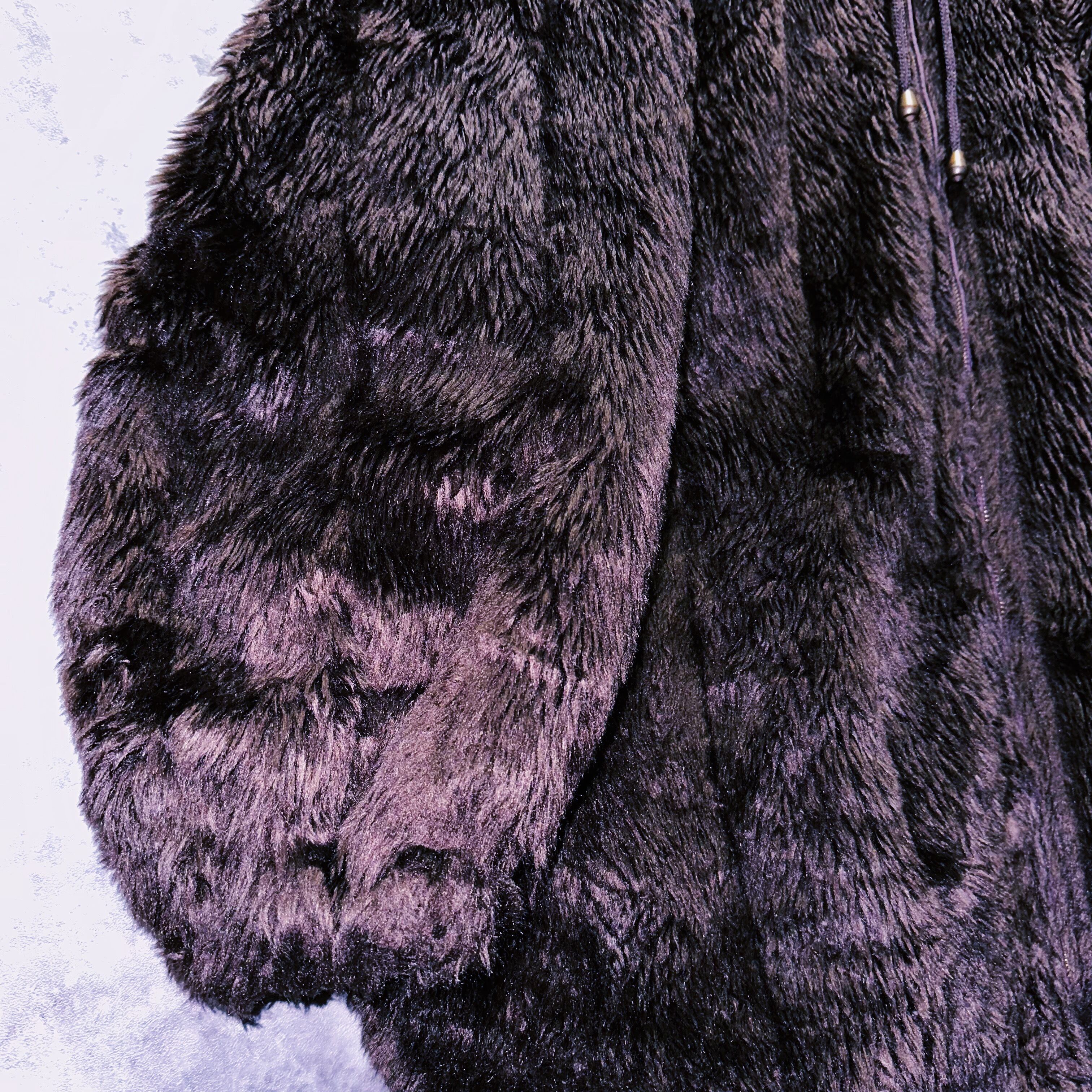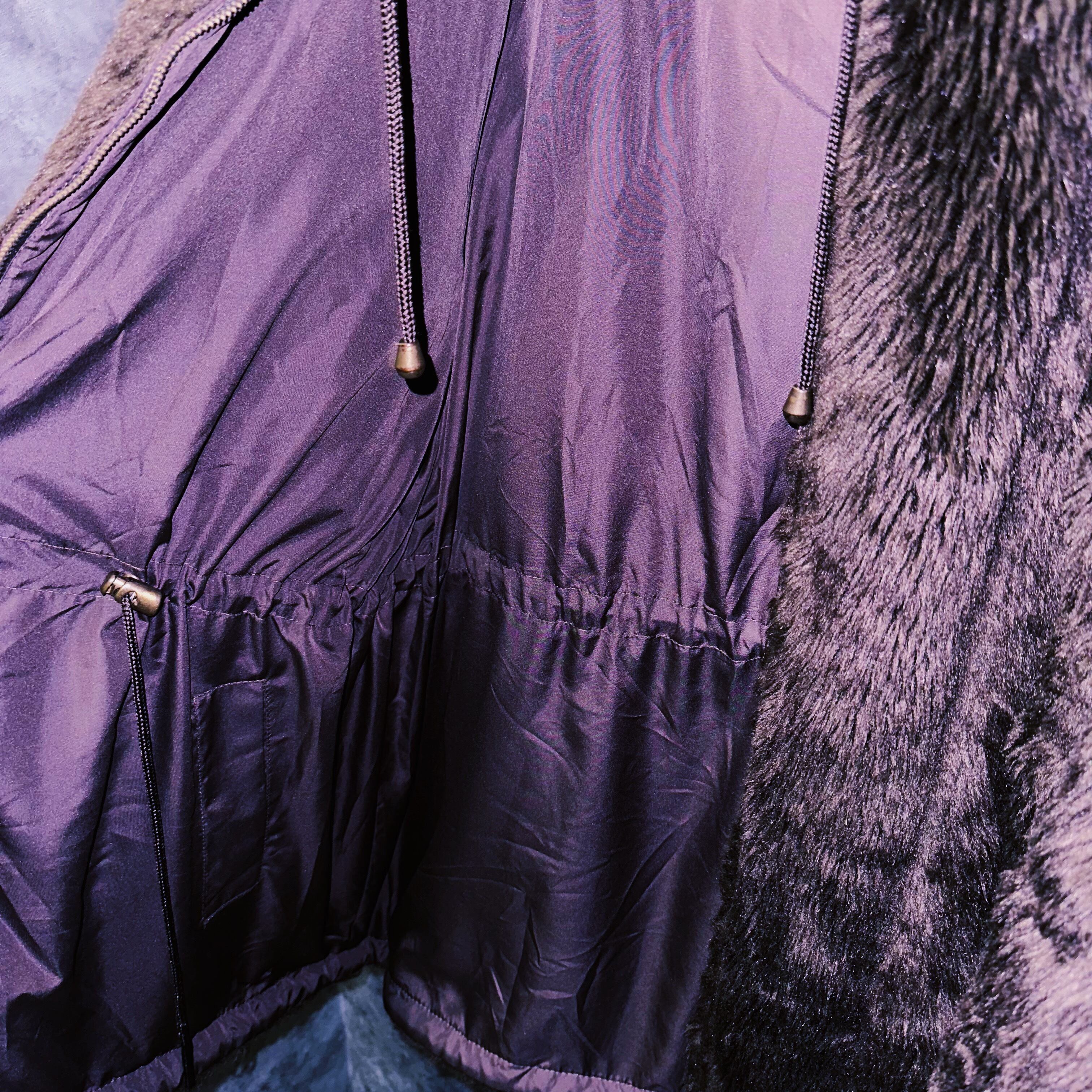 ヴィンテージダークブラウンフェイクファーデザインリバーシブルフーディージャケット