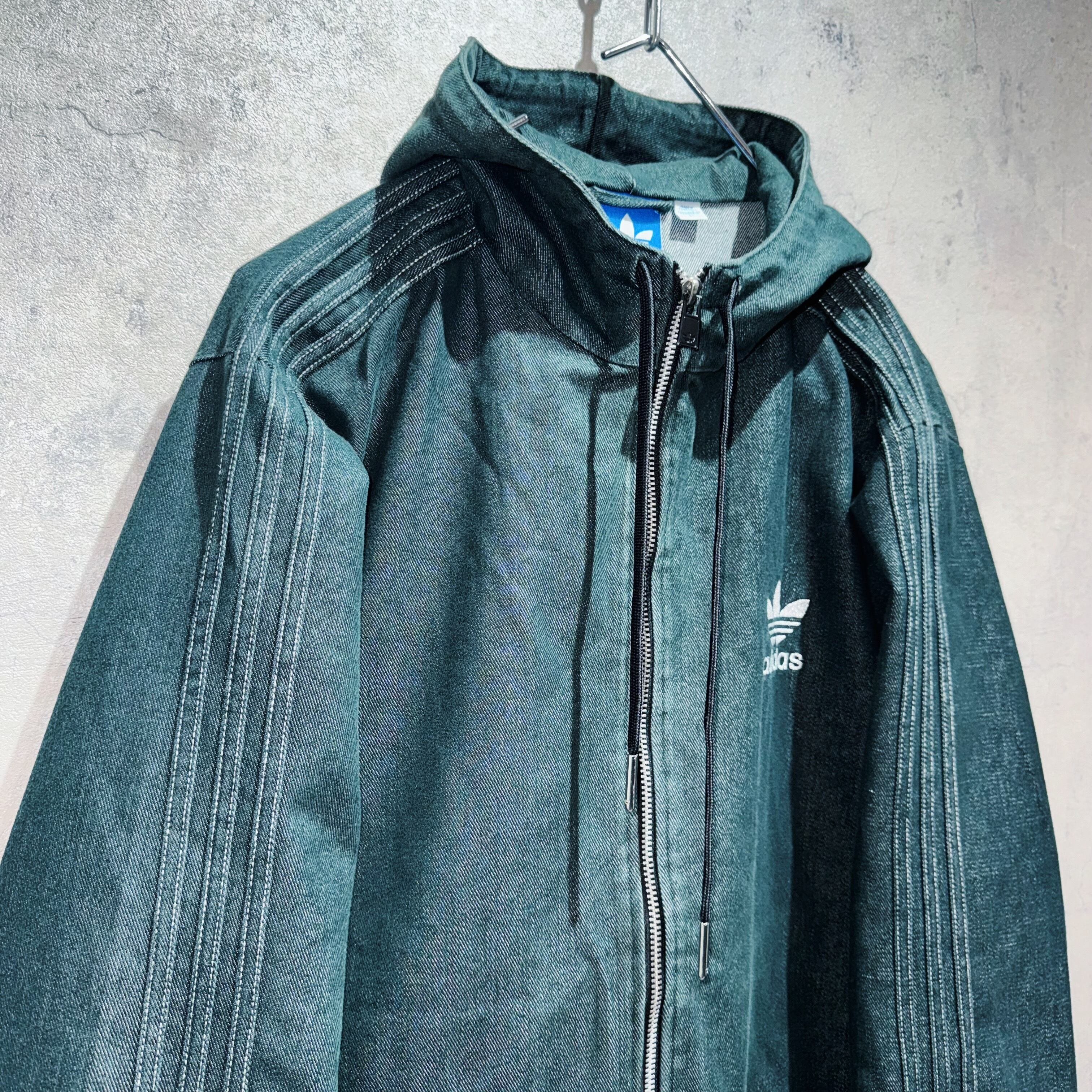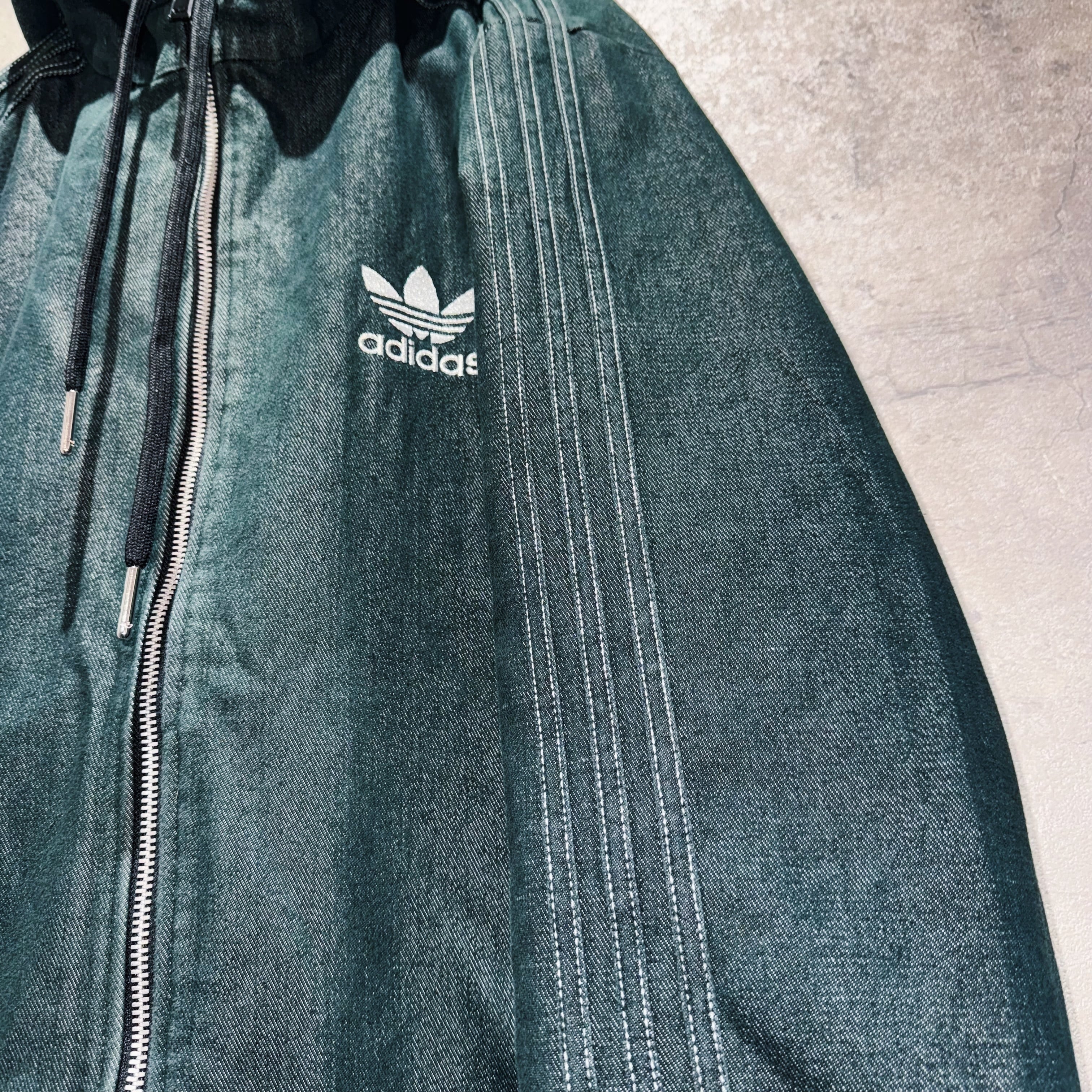 "アディダスオリジナルス"トレフォイルロゴフーディーデニムトラックジャケット