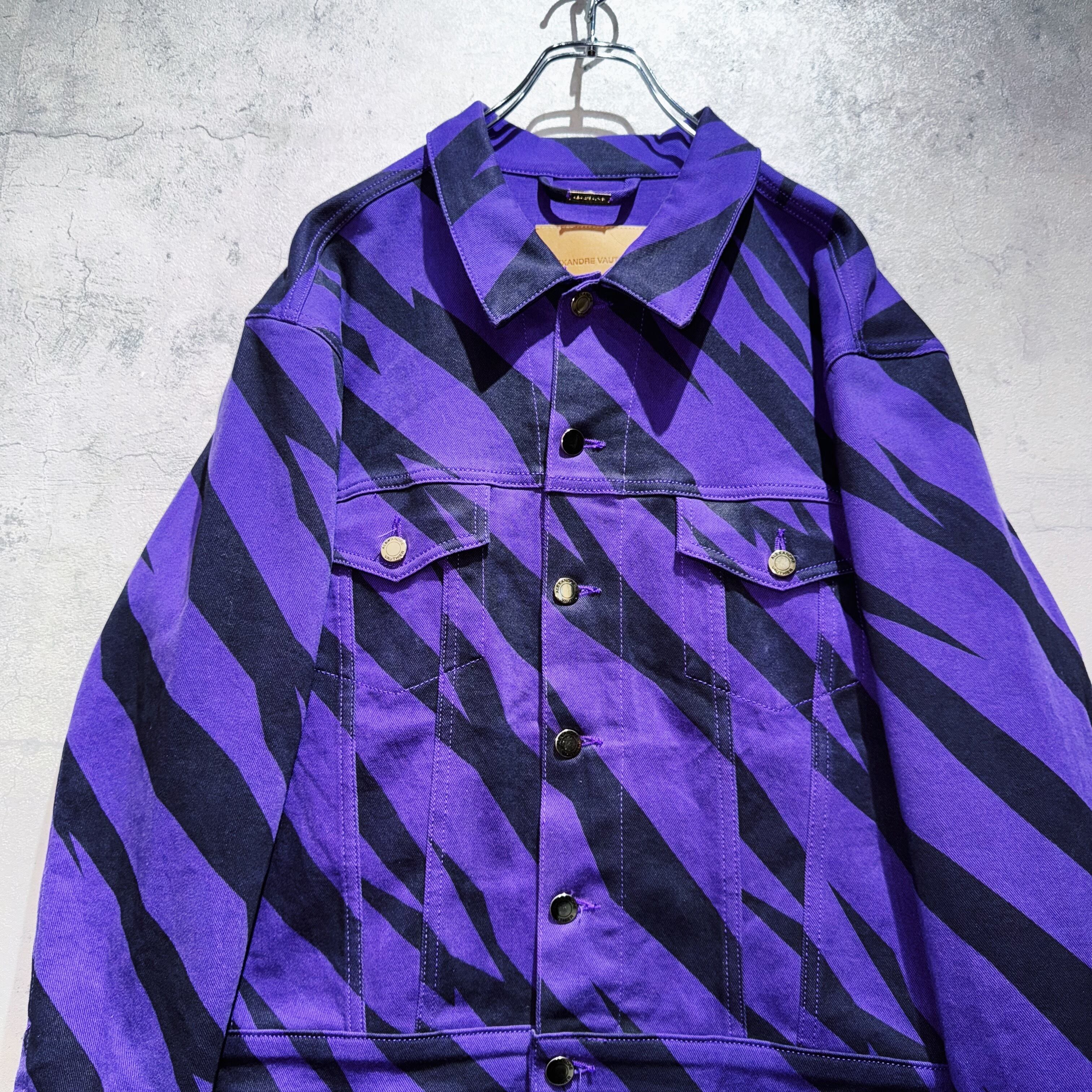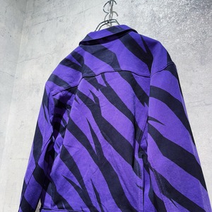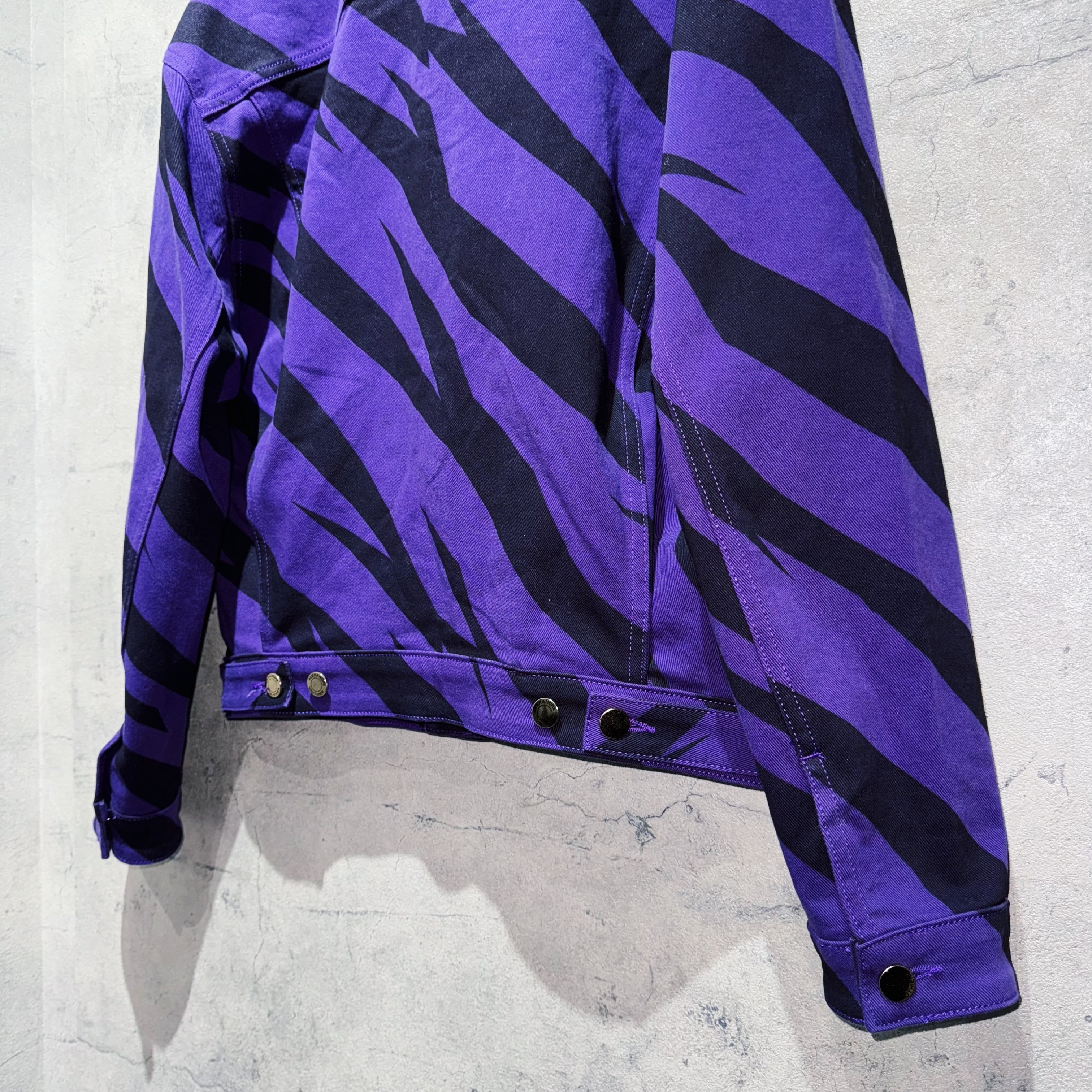 鮮やかなバイオレットカラーのボディ全面にブラックのゼブラ柄を施した高級感溢れるデザインジャケット。素材には快適なフィット感を保証してくれるイタリア製の中厚デニムを採用しています。