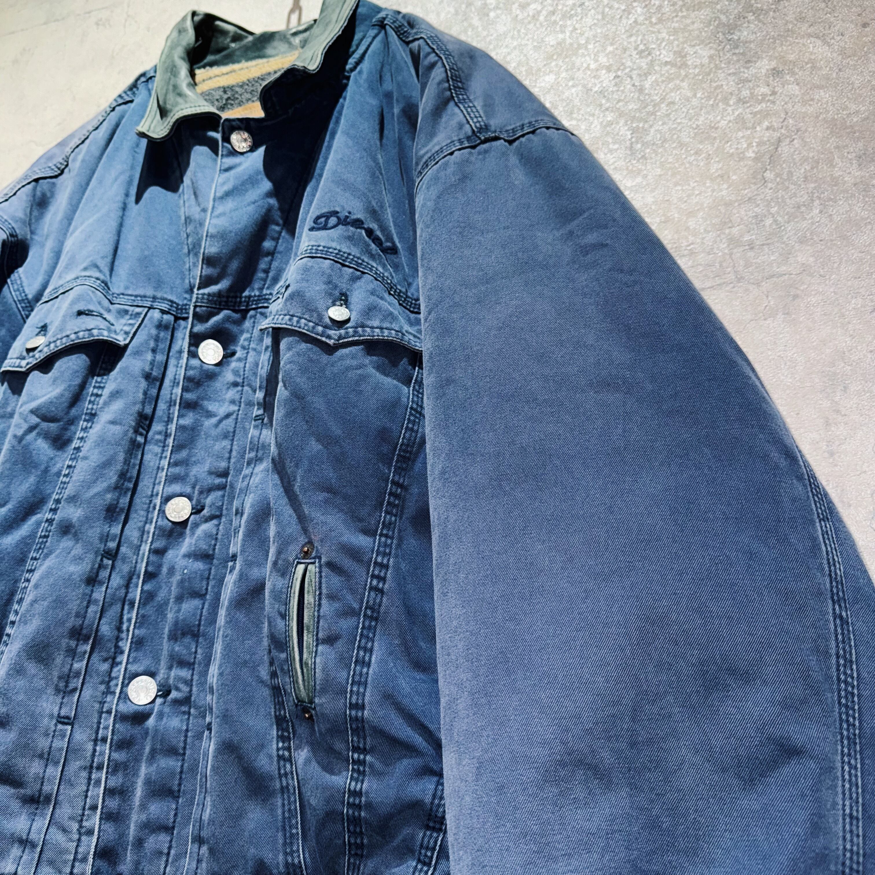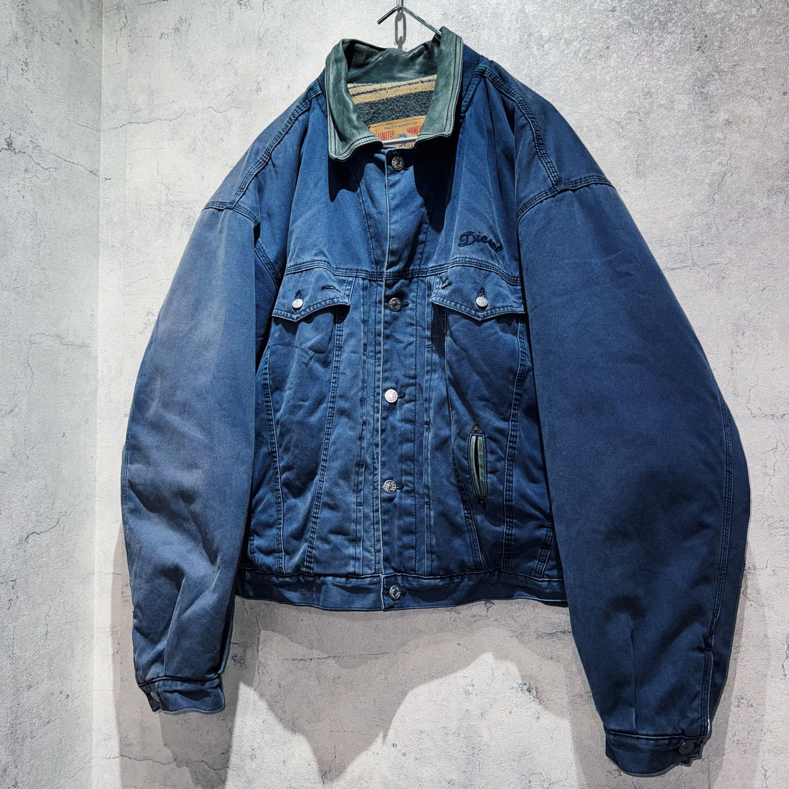 “DIESEL”の代名詞でもあるデニムジャケットの中でも中々見かけないをデザインの一着。色合いも相まってワークな雰囲気を醸し出しています。肉厚で防寒性も申し分なく、裏地にはボーダー柄があしらわれています。