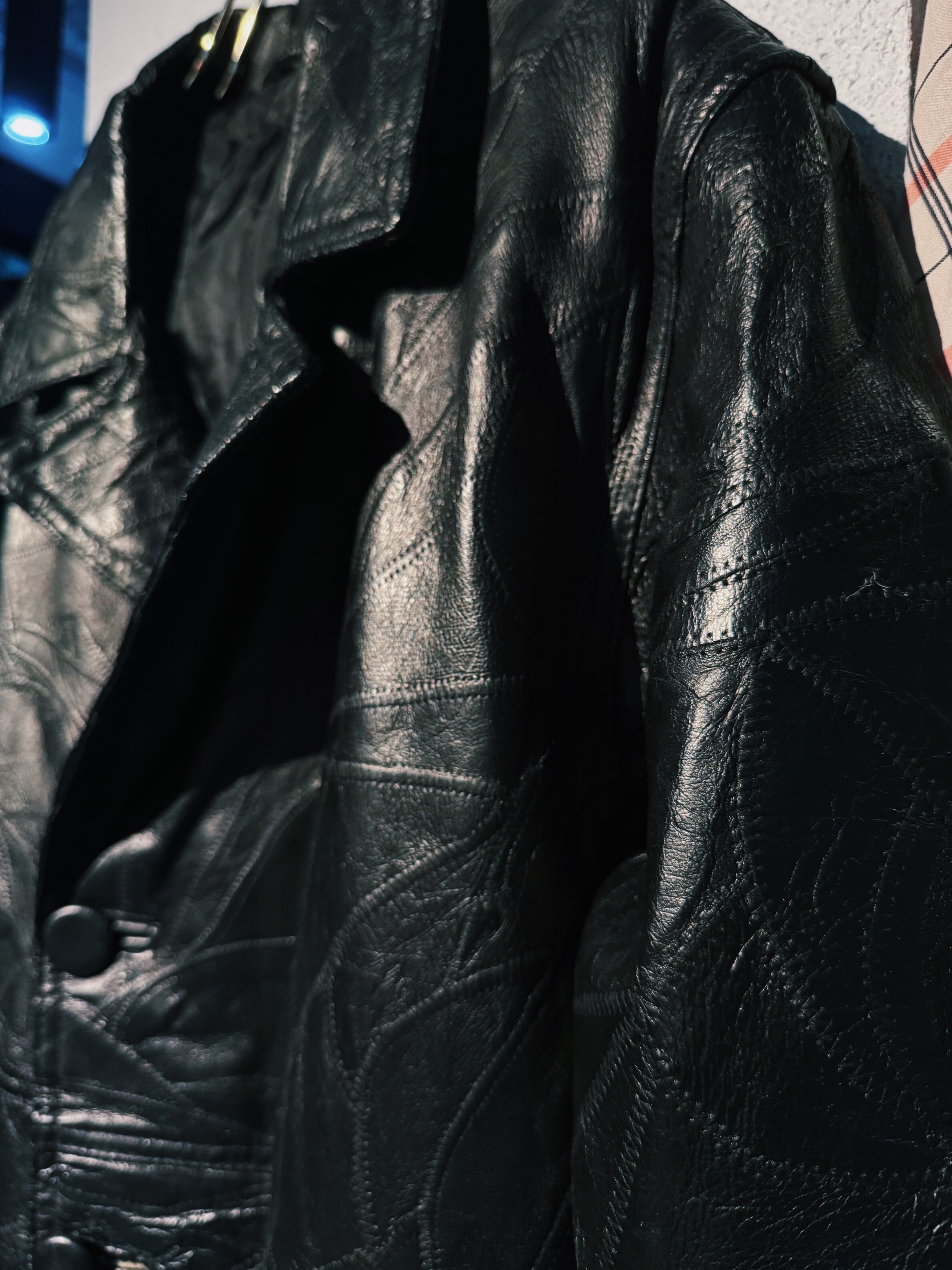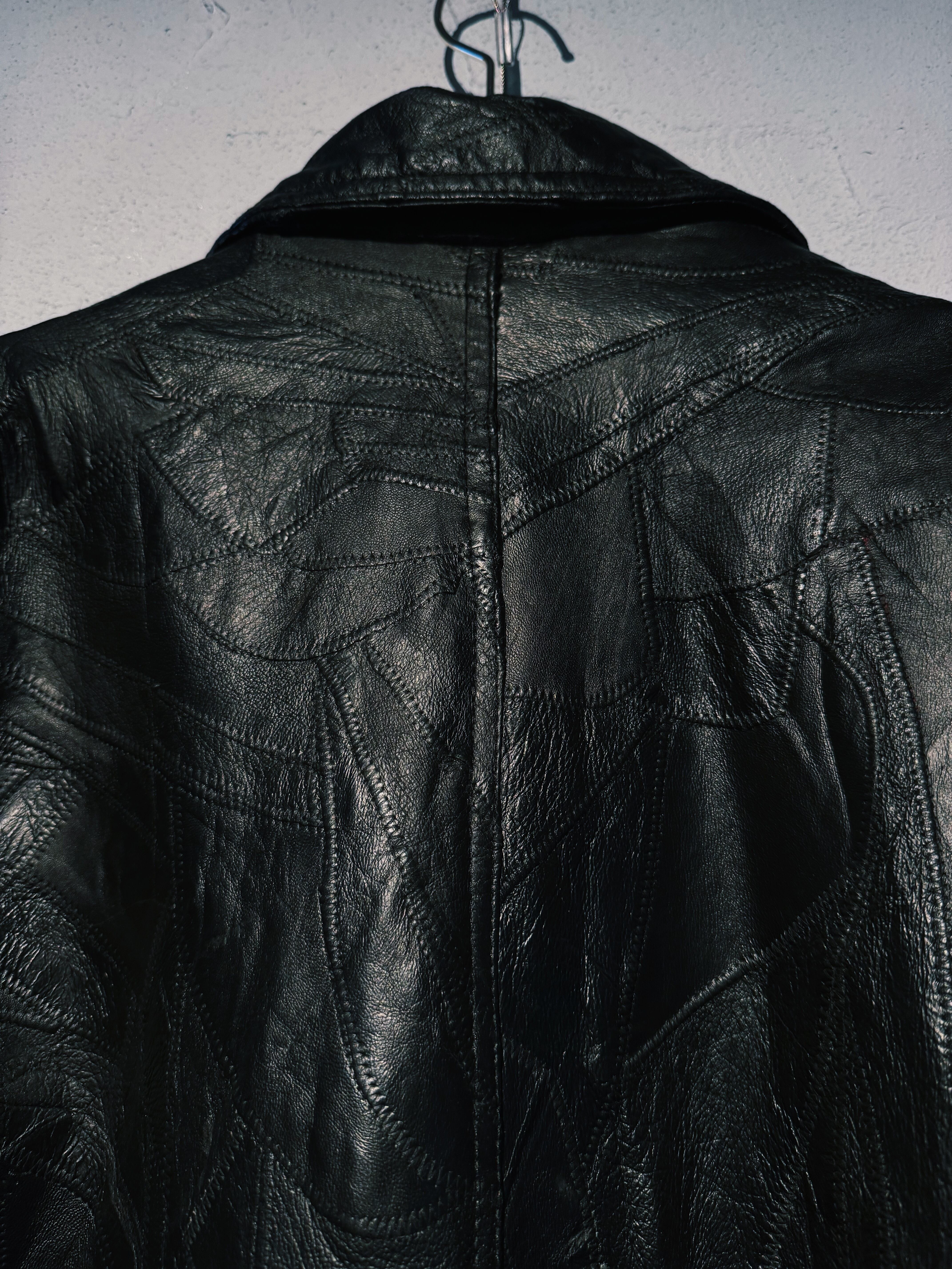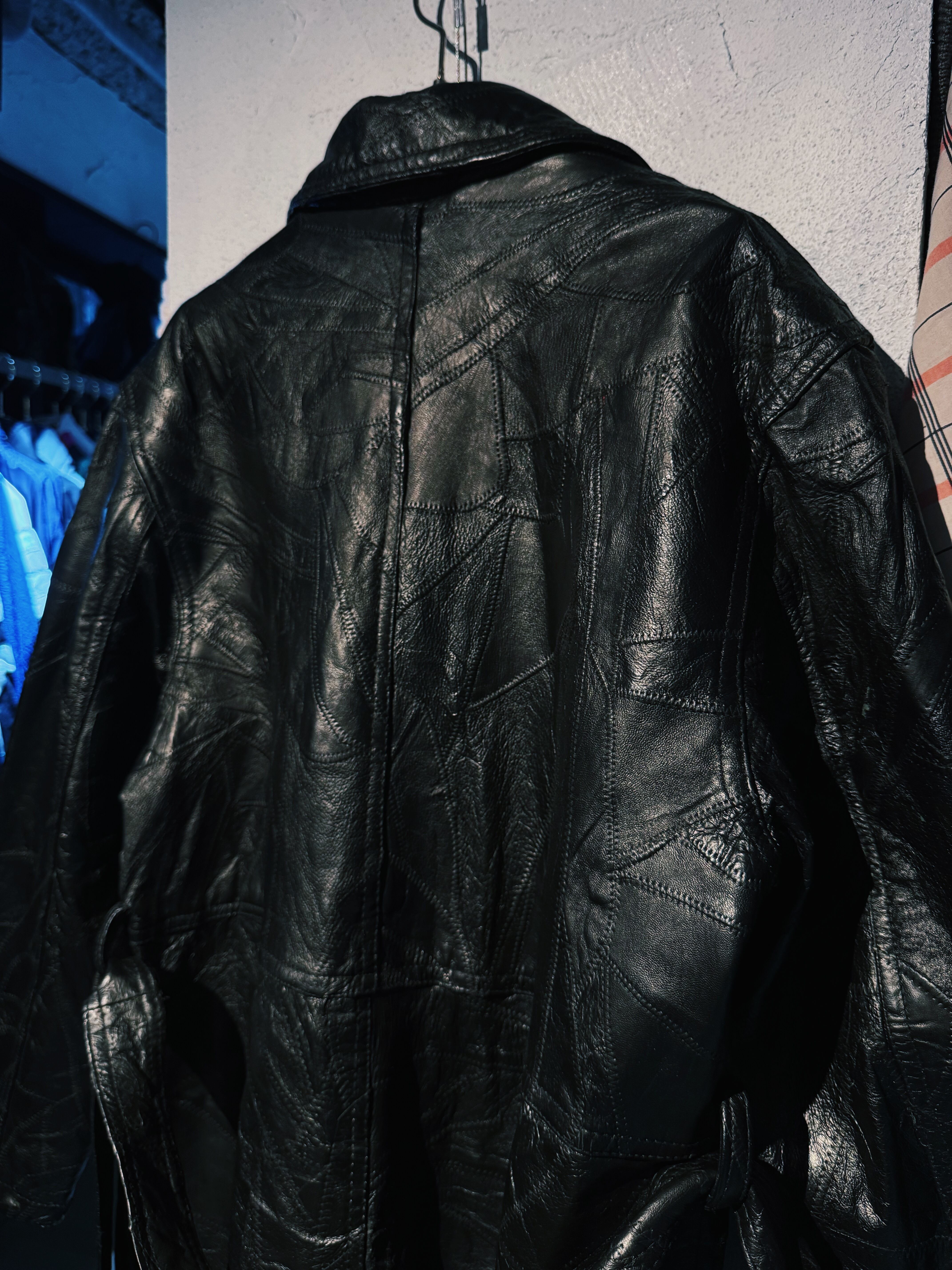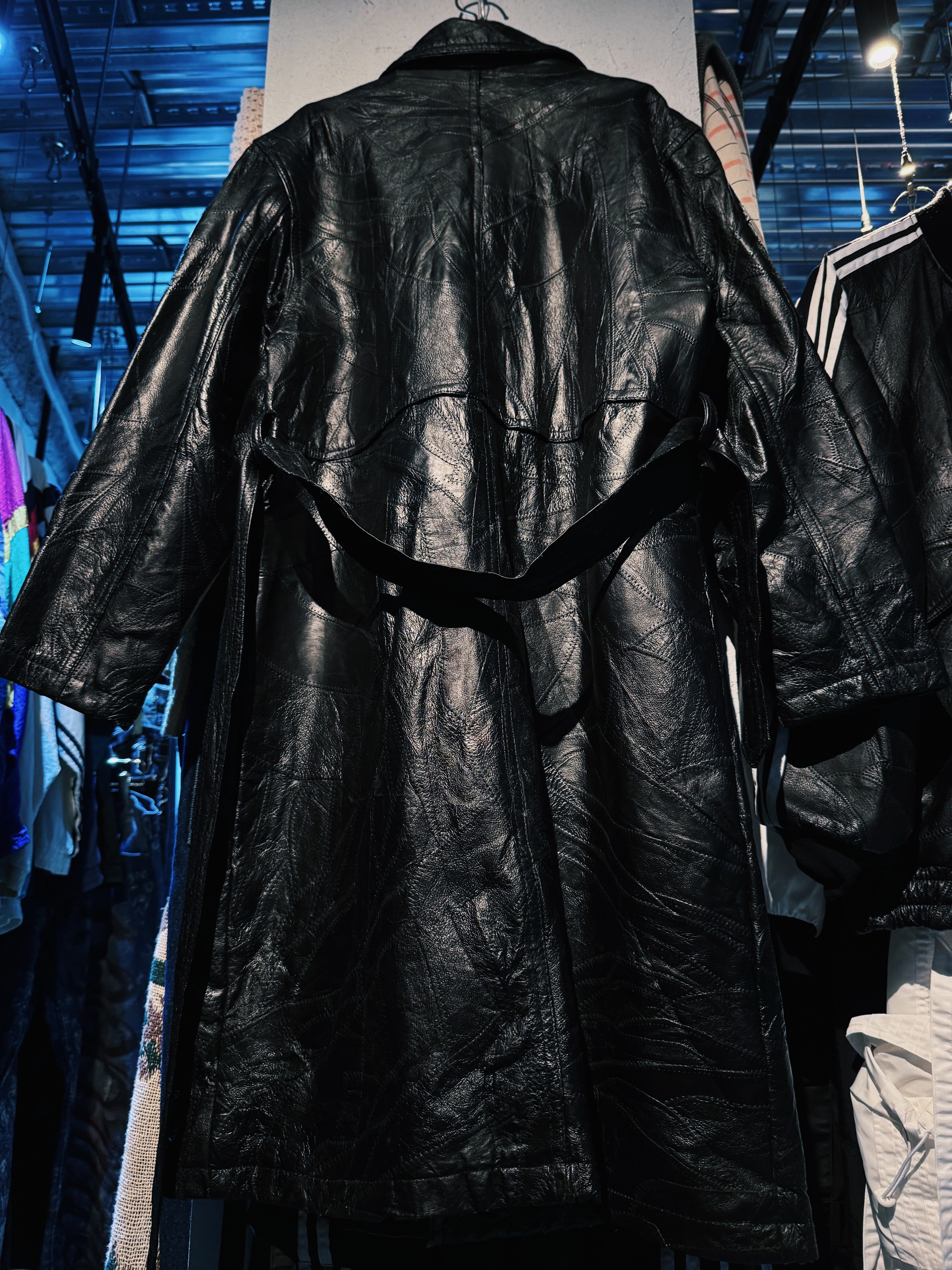 ヴィンテージブラックカラージェニュインレザーツギハギデザイントレンチコート