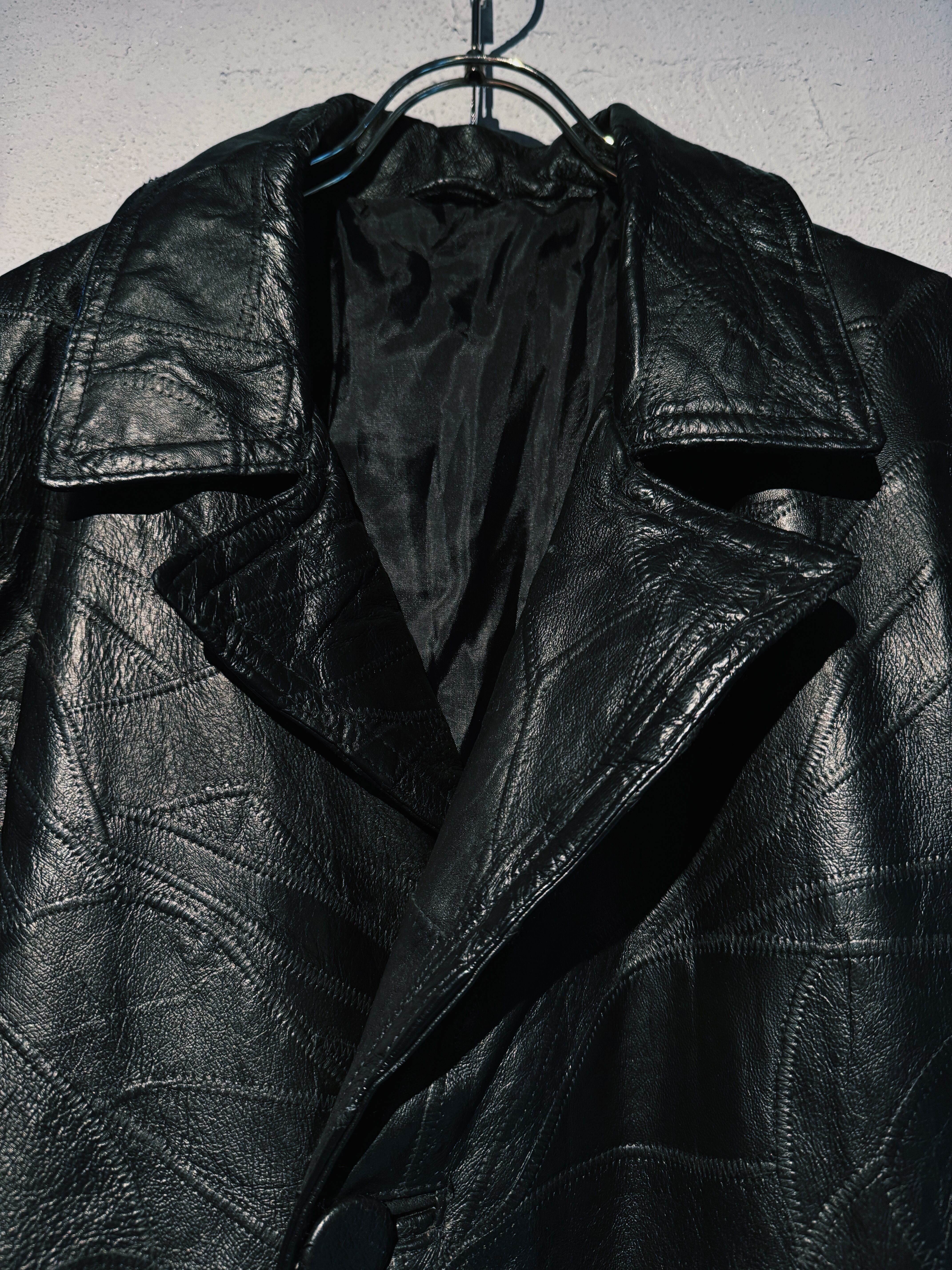 【D4C】vintage BLACK color genuine leather tugihagi design trench coat