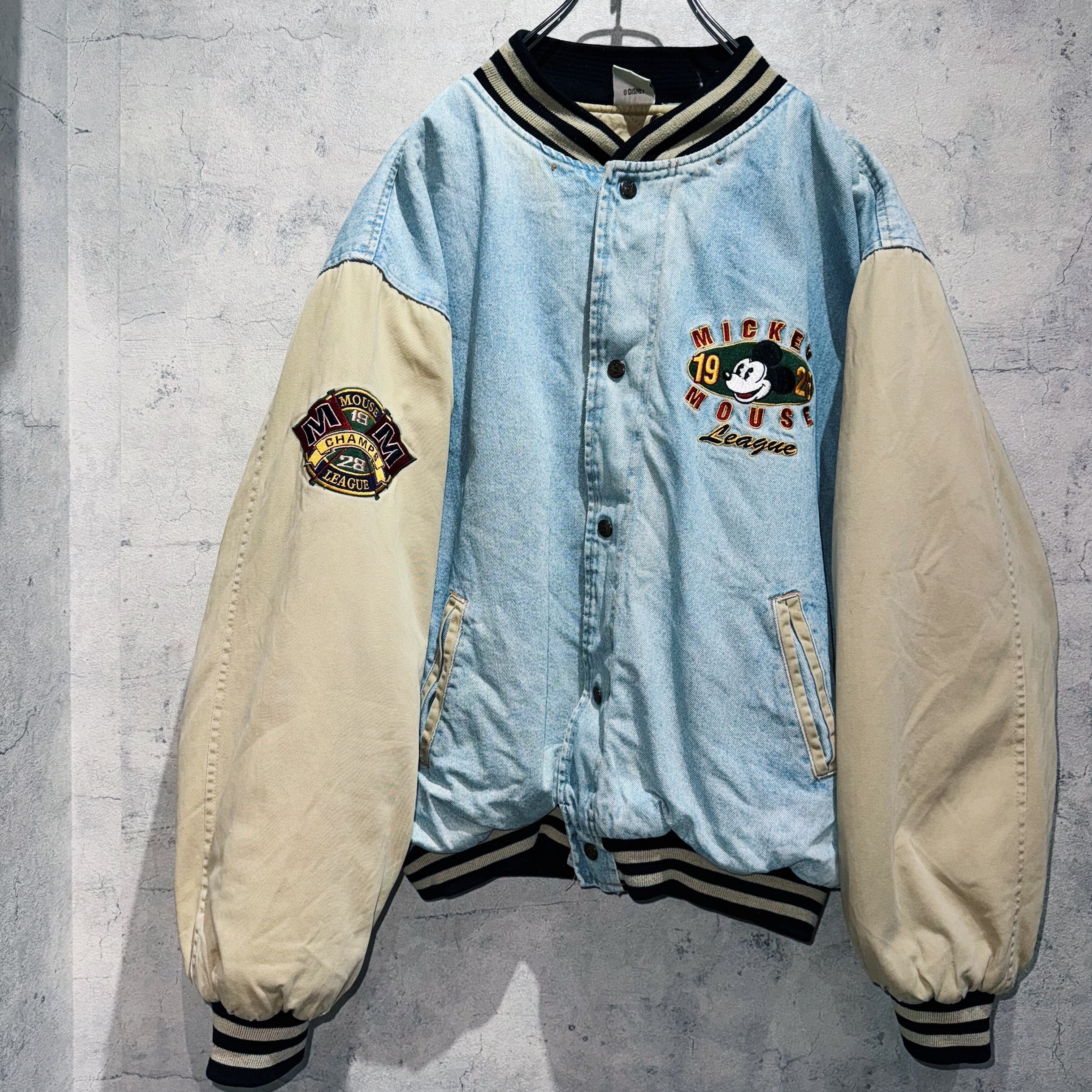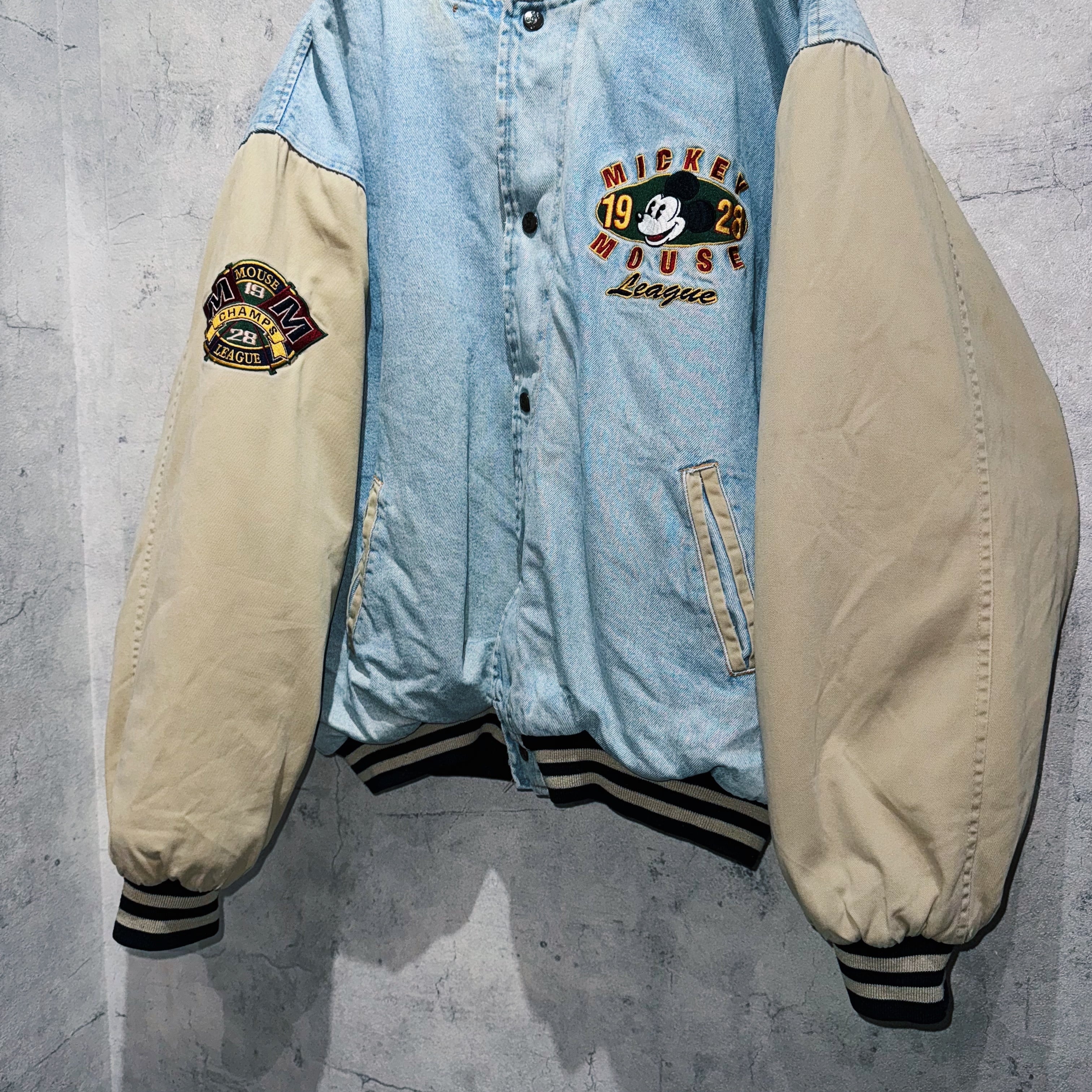 90年代”ディズニー”ミッキーマウスリーグデニムヴァーシティジャケット