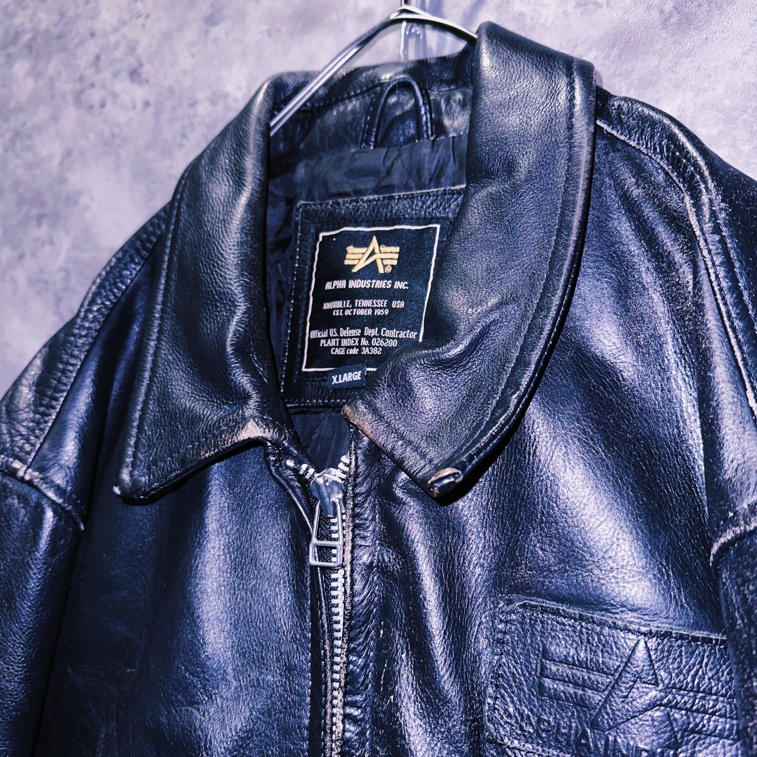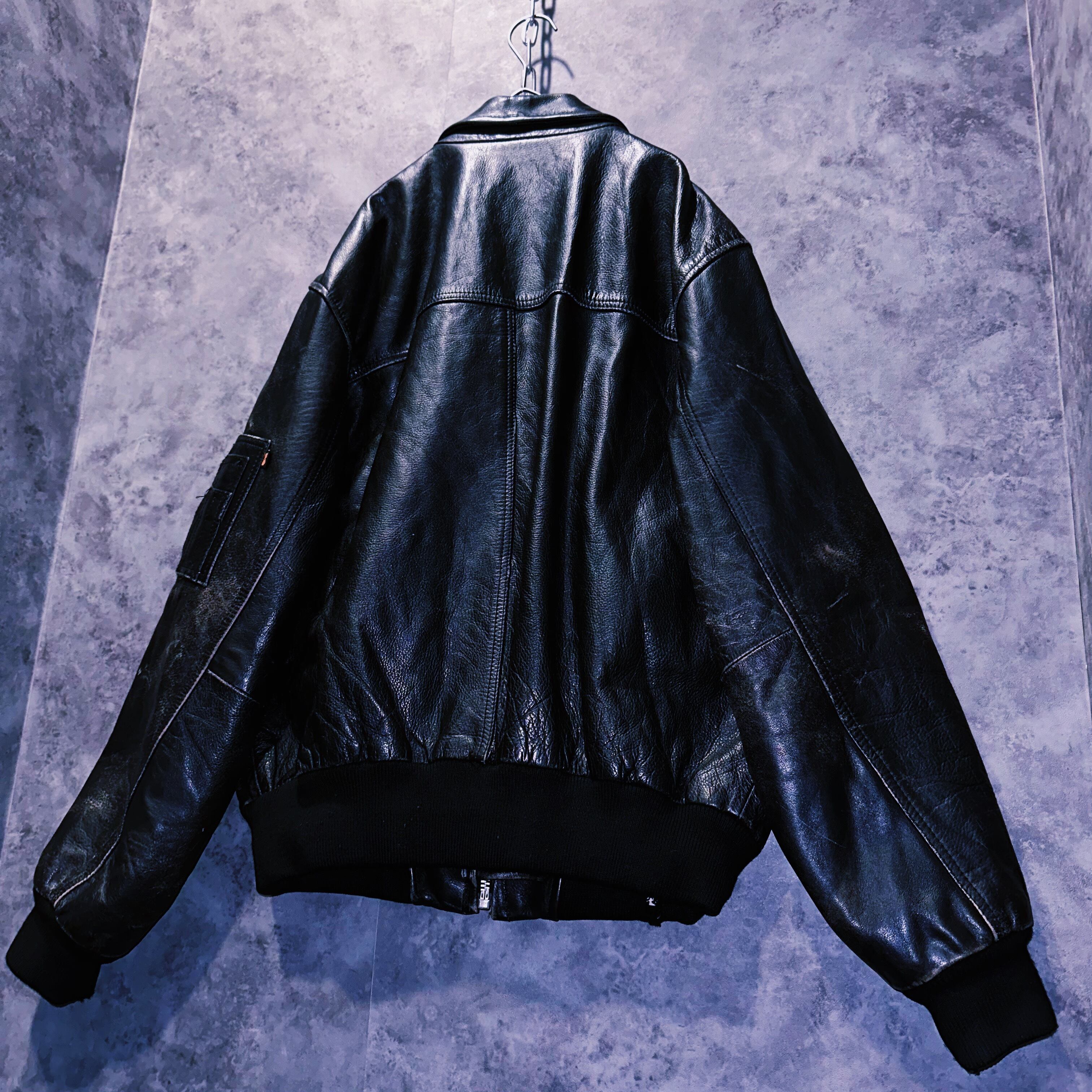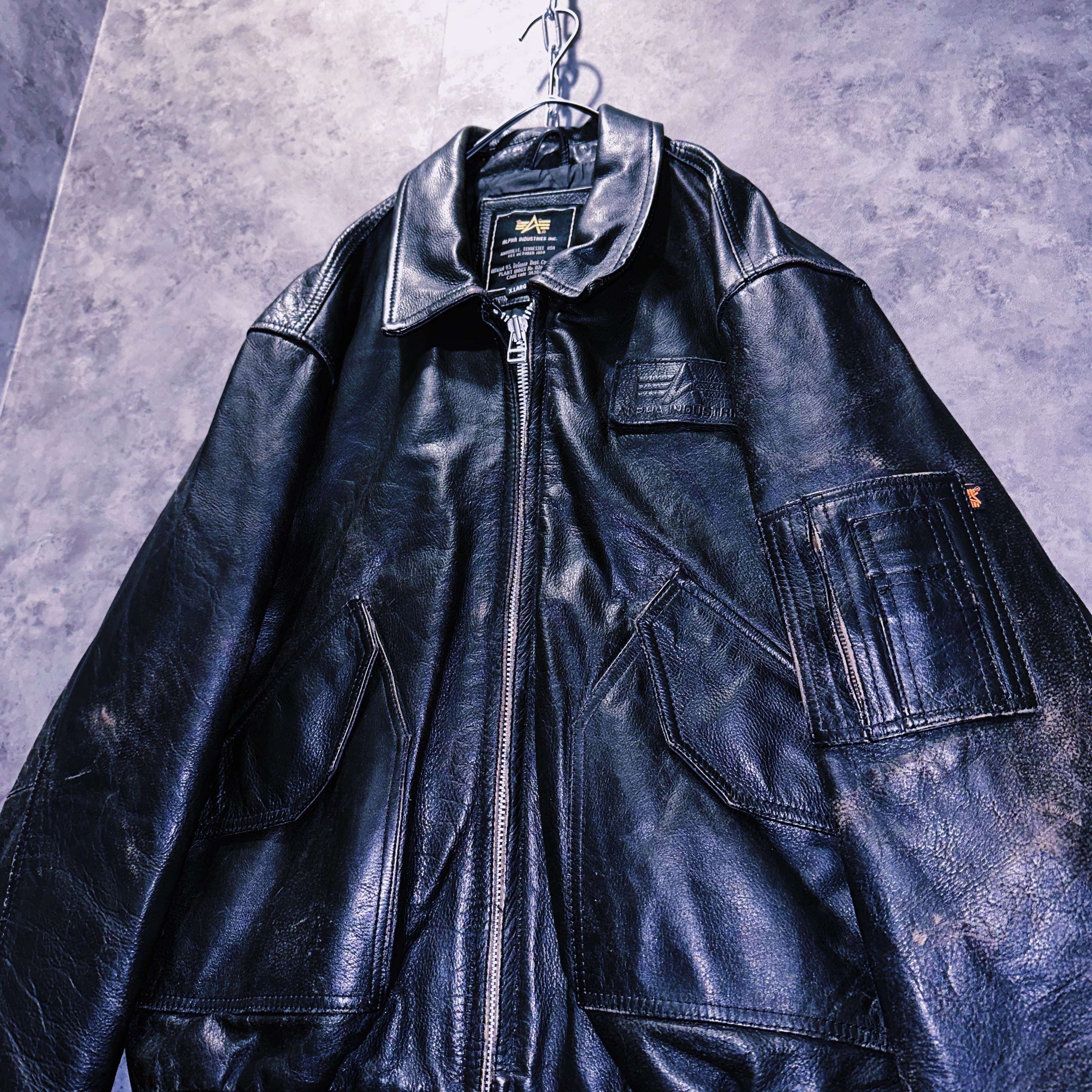 "ALPHA INDUSTRIES"cowhide bomber flight leather jacket